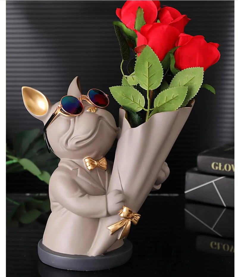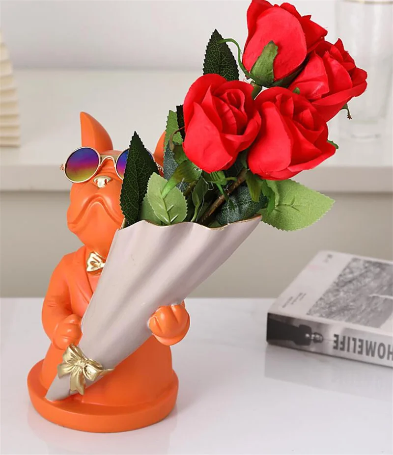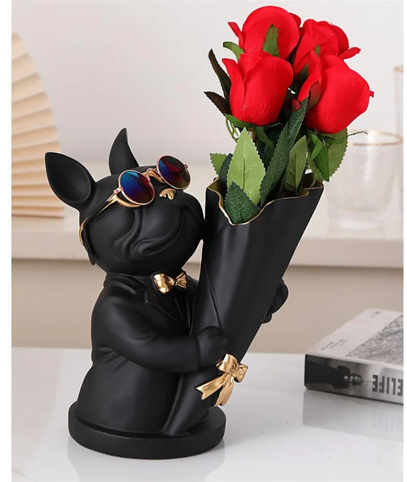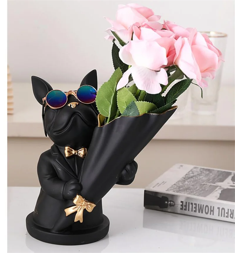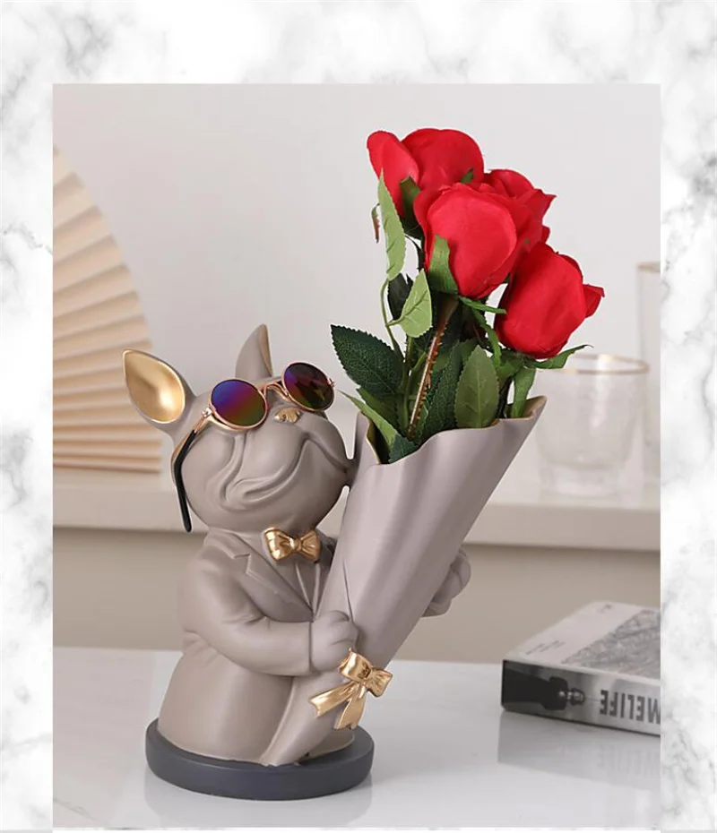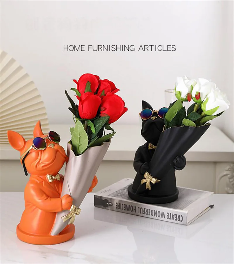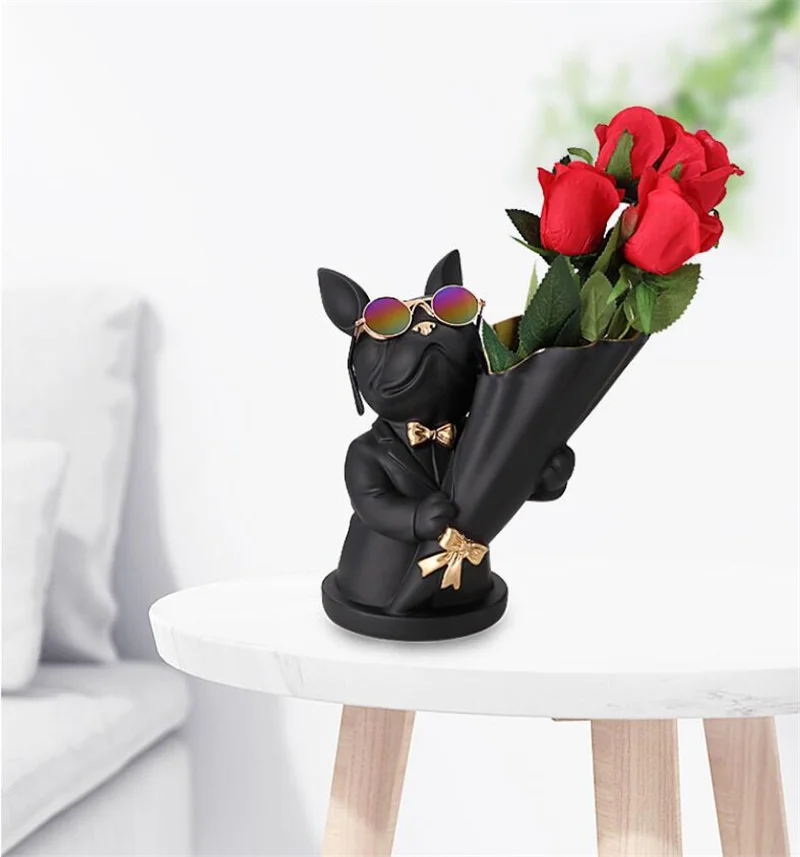 New Creative Dog Flower Arrangement Nordic French Bulldog Flower Vase Decorative Statue Table Living Room Home Decor Gift Crafts