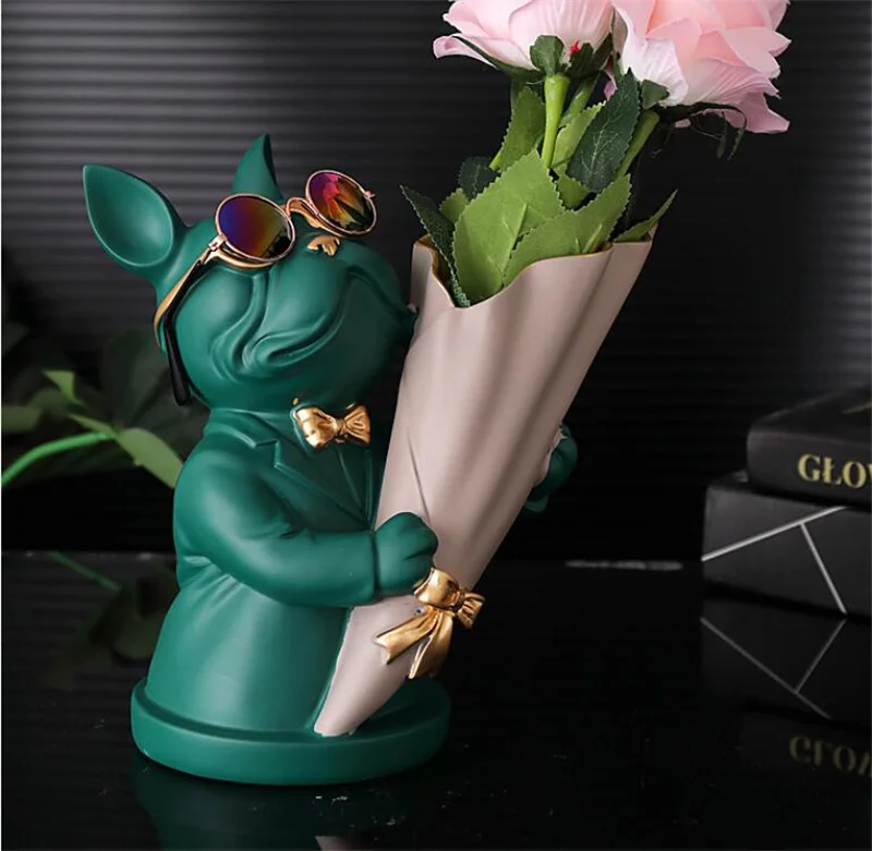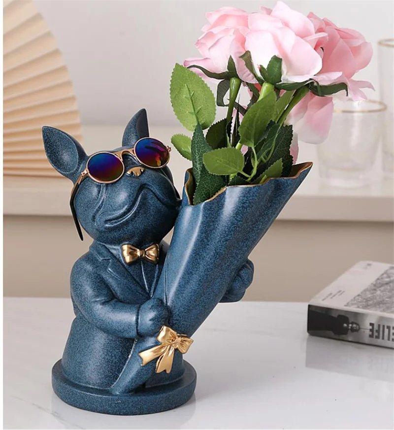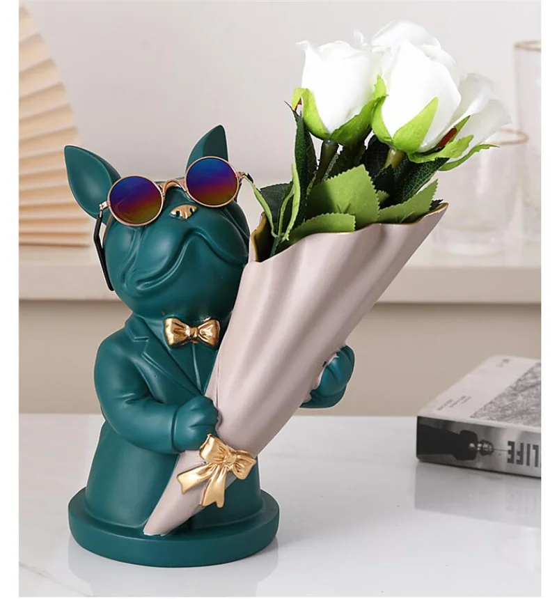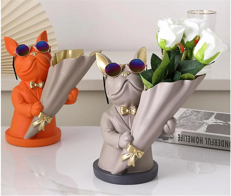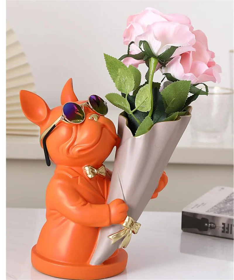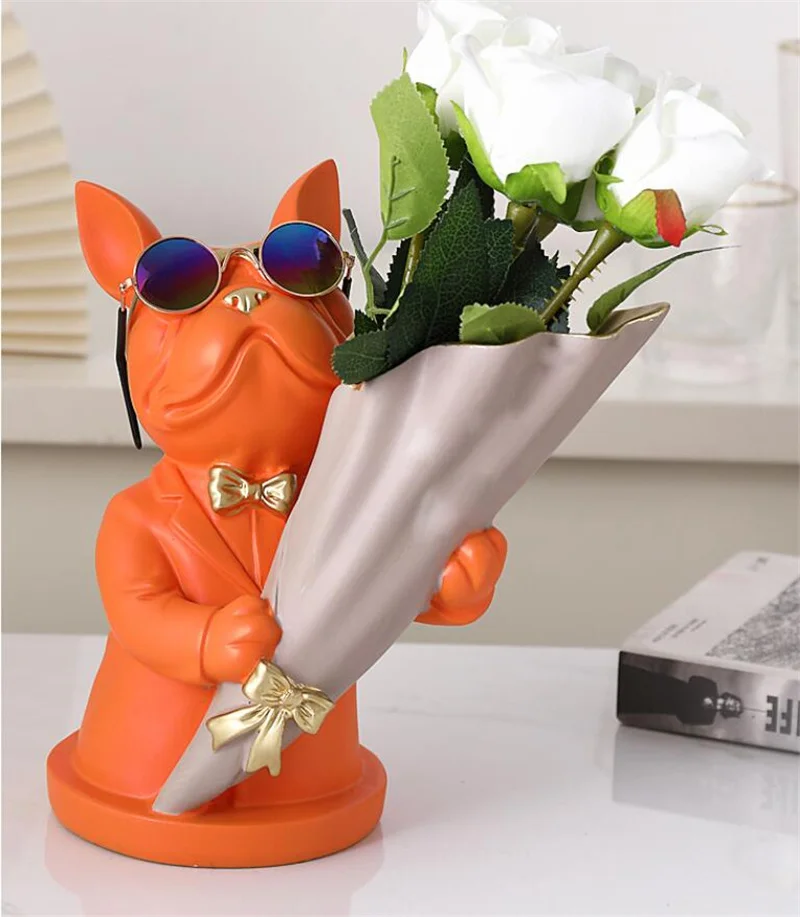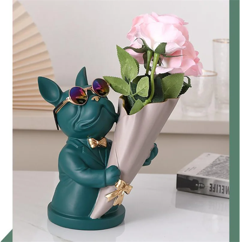 New Creative Dog Flower Arrangement Nordic French Bulldog Flower Vase Decorative Statue Table Living Room Home Decor Gift Crafts