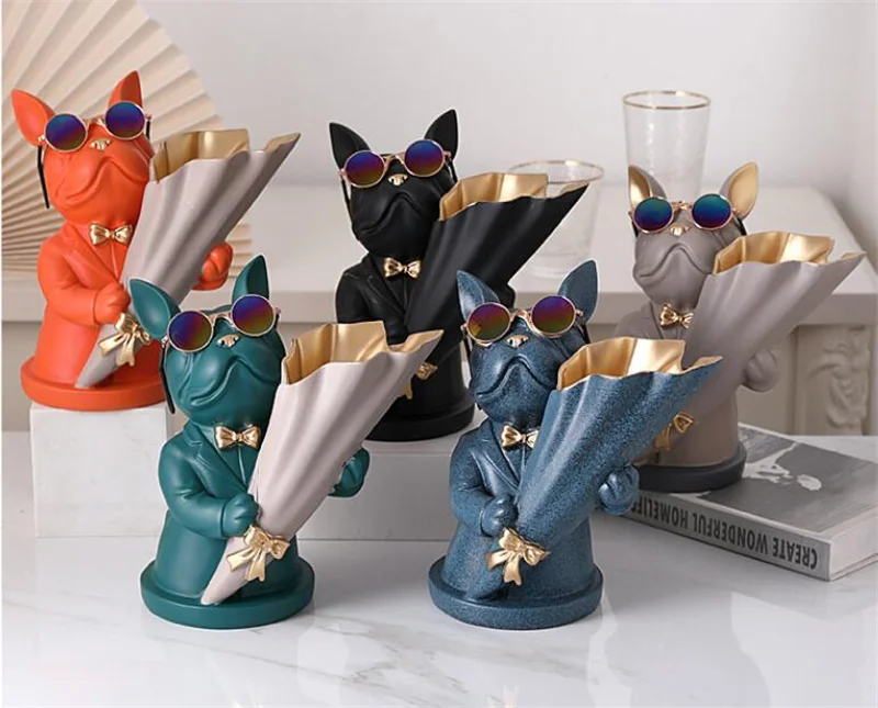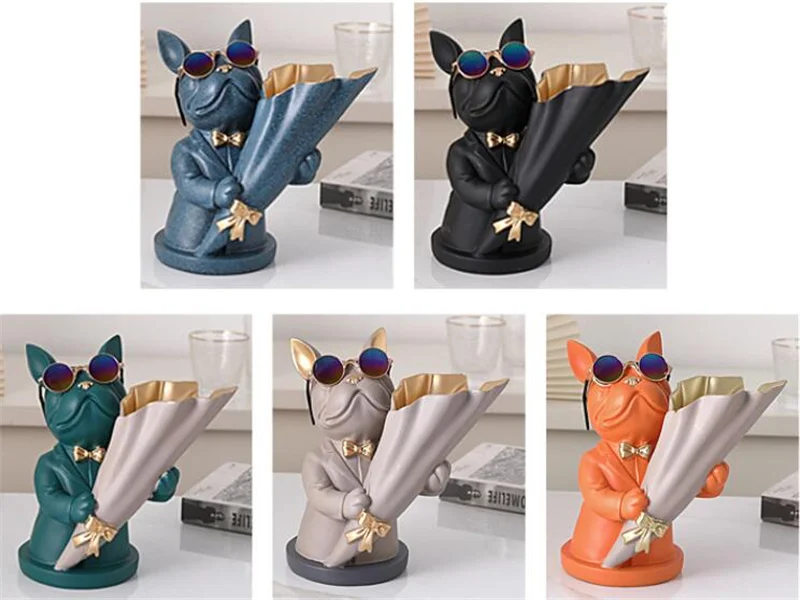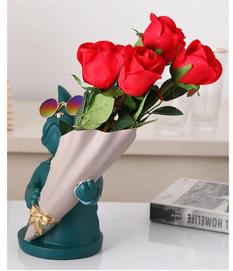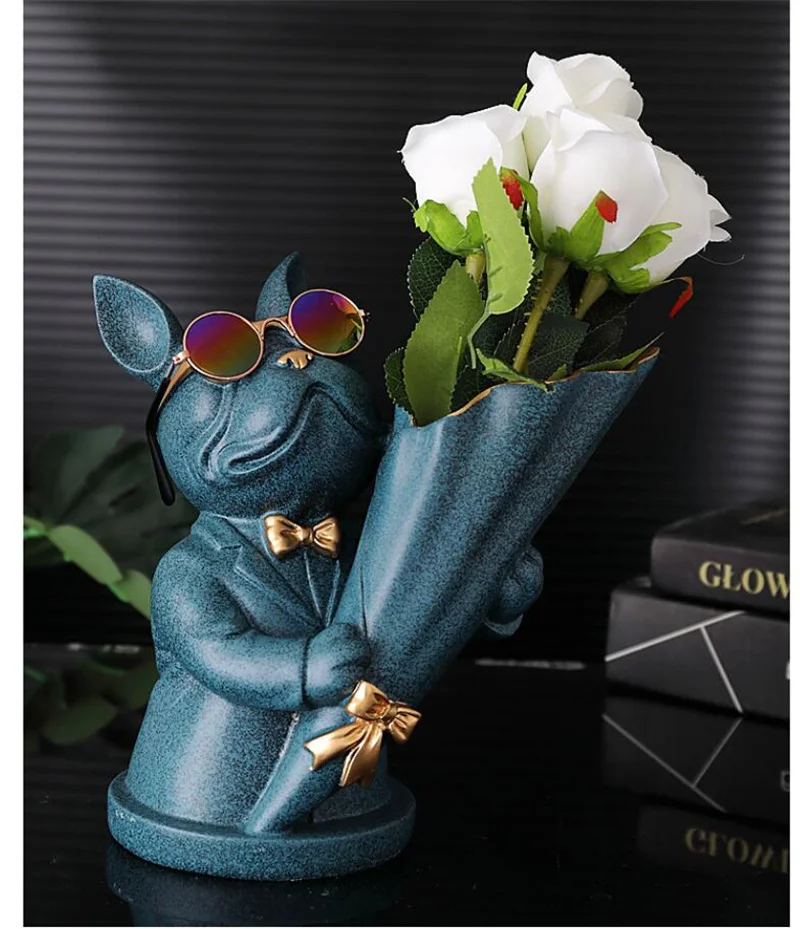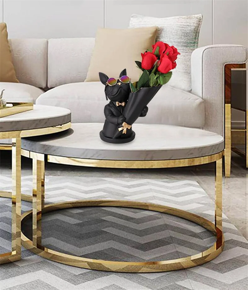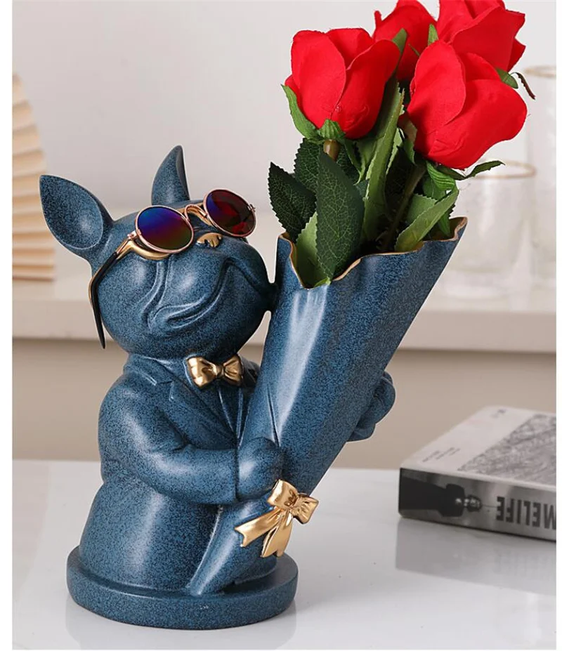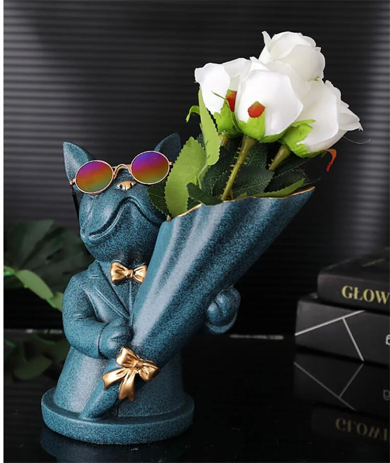 New Creative Dog Flower Arrangement Nordic French Bulldog Flower Vase Decorative Statue Table Living Room Home Decor Gift Crafts