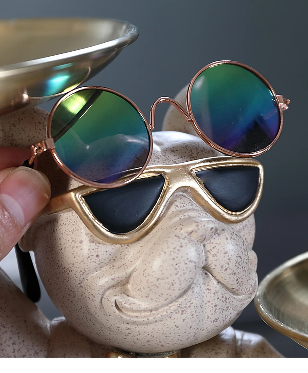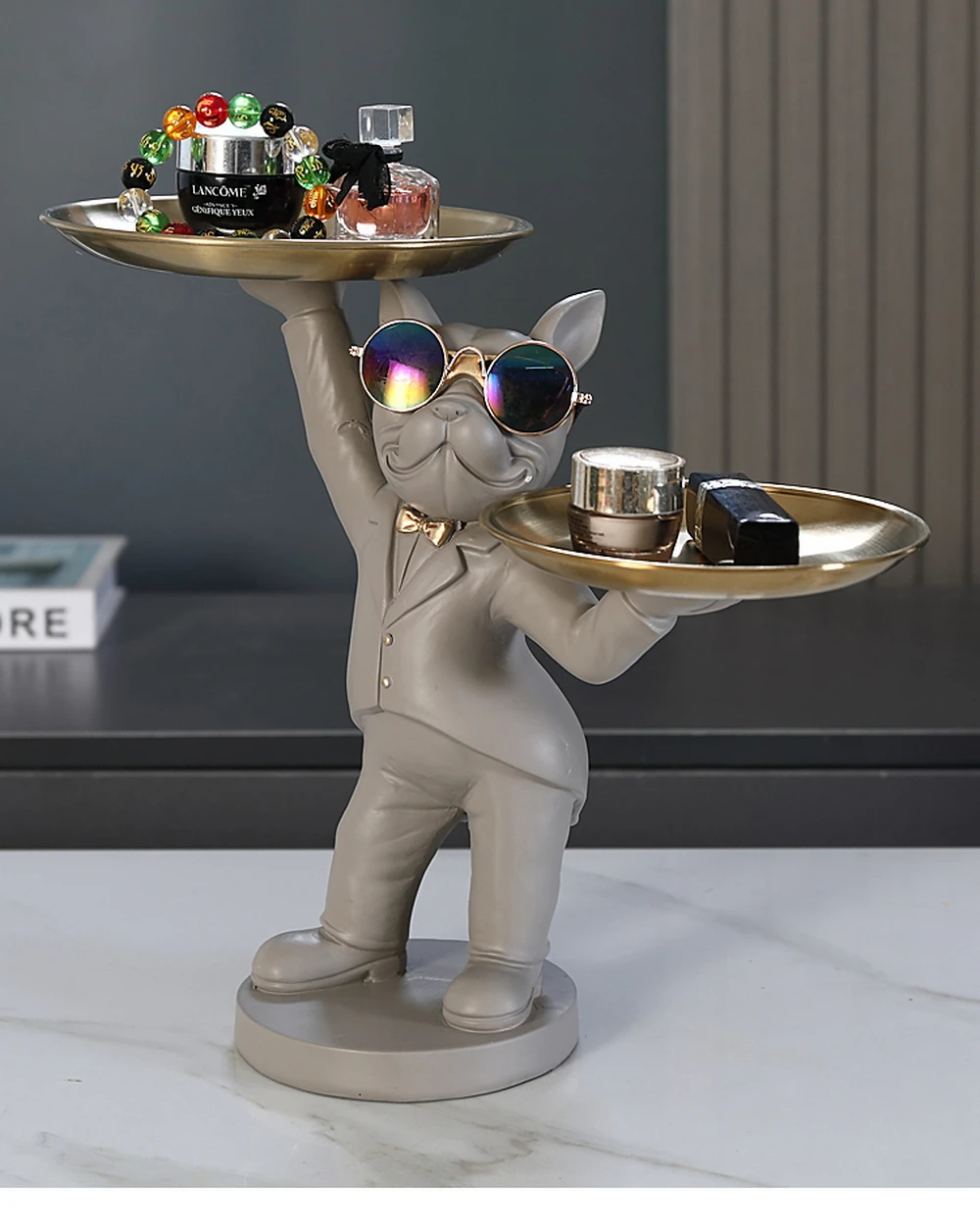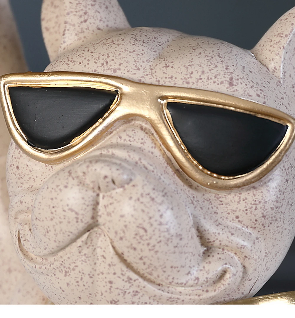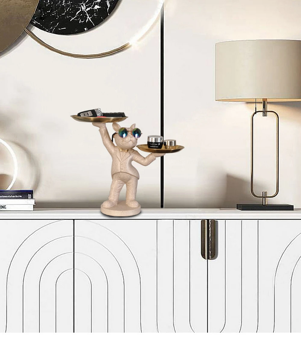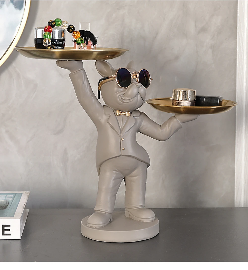 New Enchanting French Bulldog Statue with 2 Trays Decorative Sculpture Resin Dog Ornaments Animal Figurines Home Decor Gifts