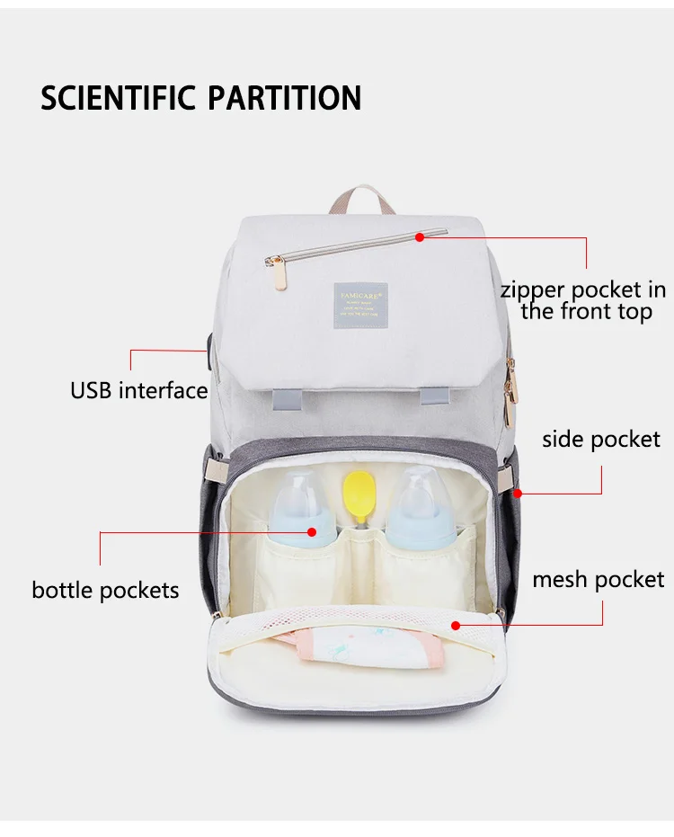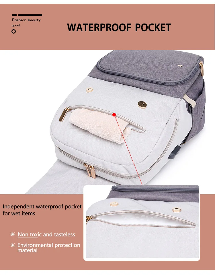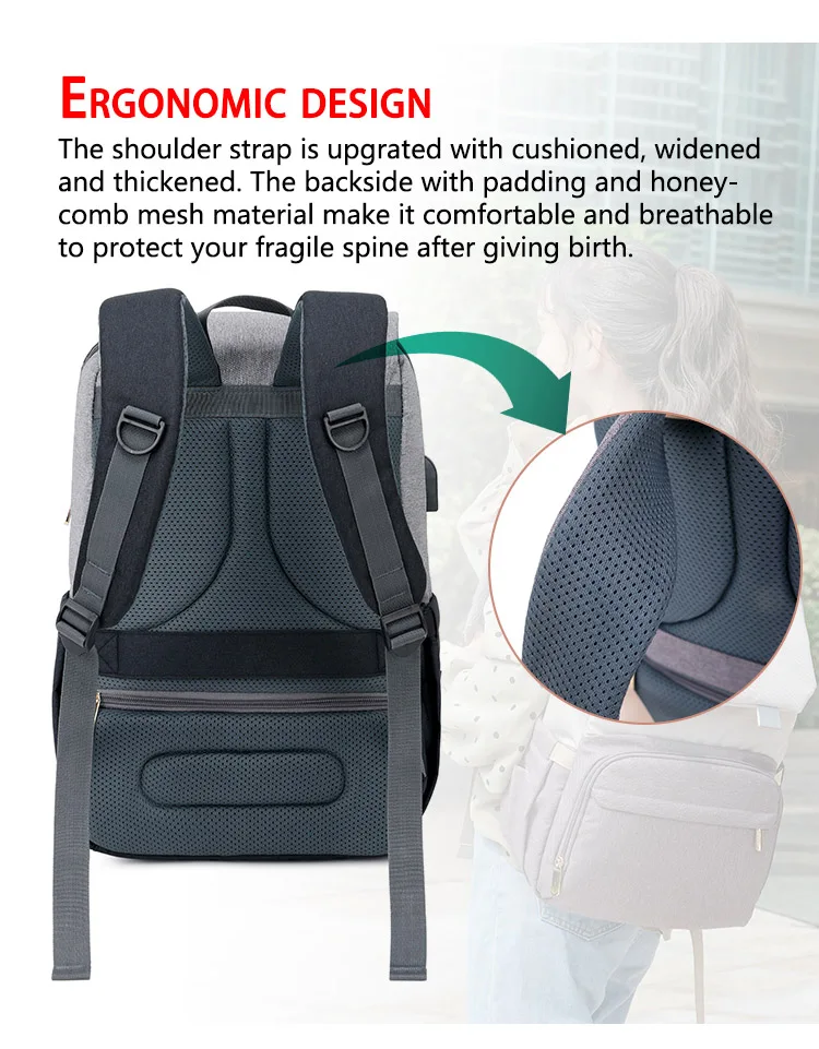 Using high-quality waterproof polyester fabric; Smooth zippers, Shoulder straps are upgrated with cushion, widened and thickened. The backside with padding and honeycomb mesh material make it comfortable and breathable to protect your fragile spine after giving birth. It makes mum's travel more comfortable and more relaxed