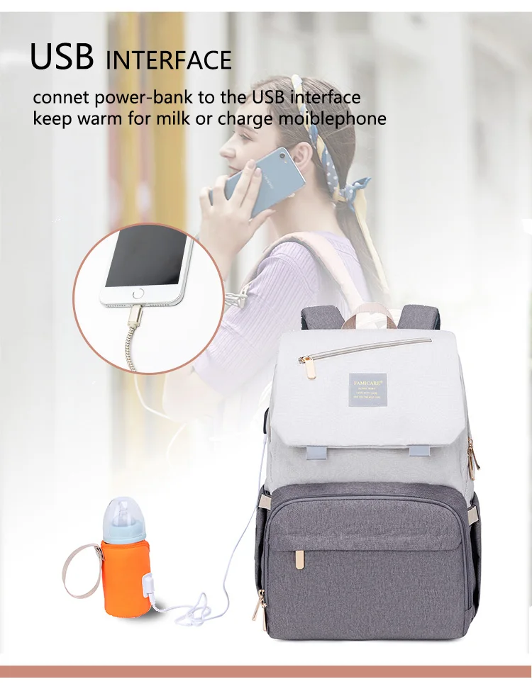 The USB charging port design is more convenient for you to charge your phone (built-in power cord, you need to connect the data cable to the power bank to charge the phone);In addition to phone charging, it can also connect the warmer to keep warm for milk (please use a power bank to charge to avoid damaging the warmer )