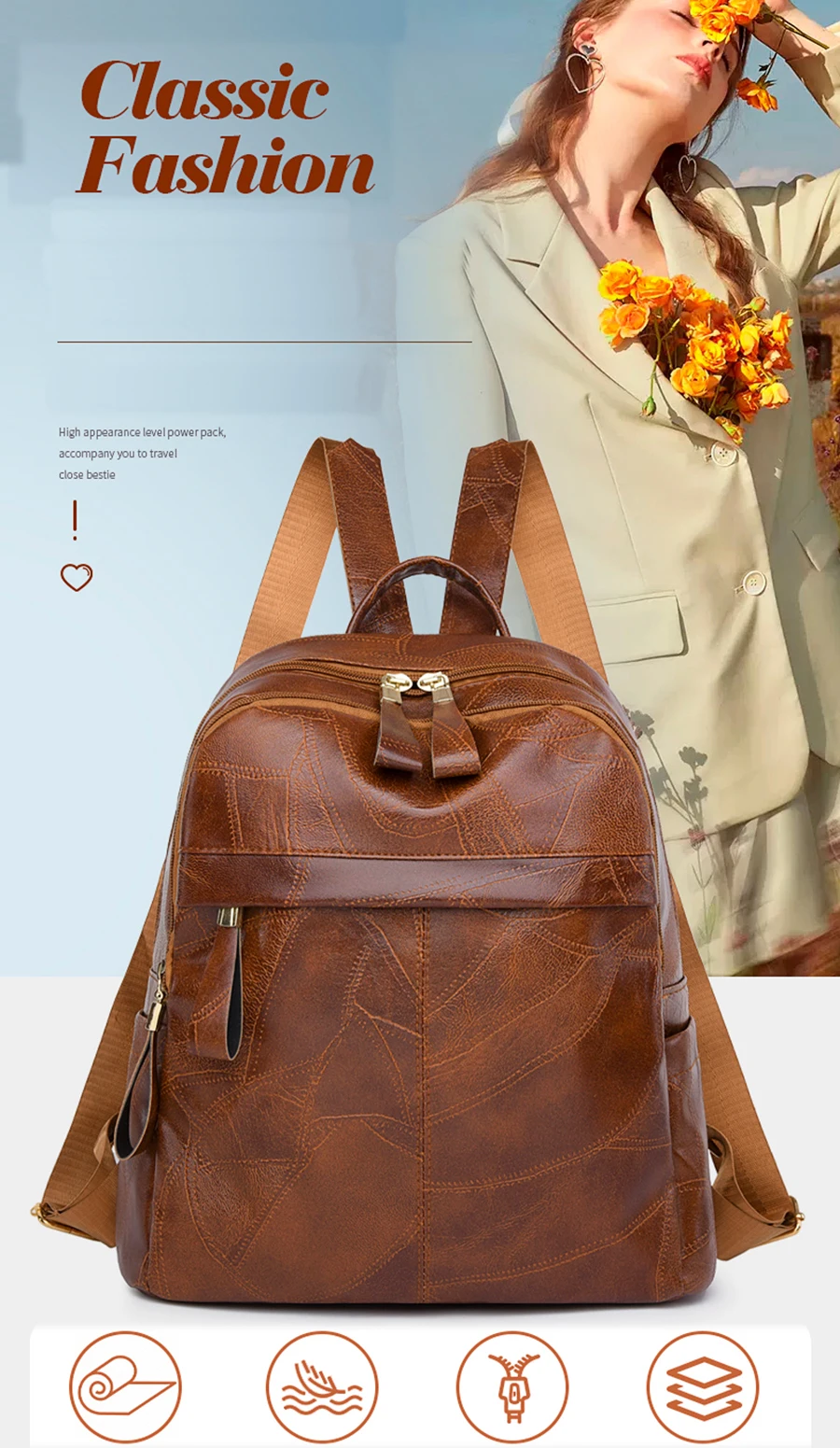 New Luxury Designer Brand Women's Backpack 2024 Large Capacity Travel Backpacks Soft Leather Women's Retro Knapsack Mochilas Sac