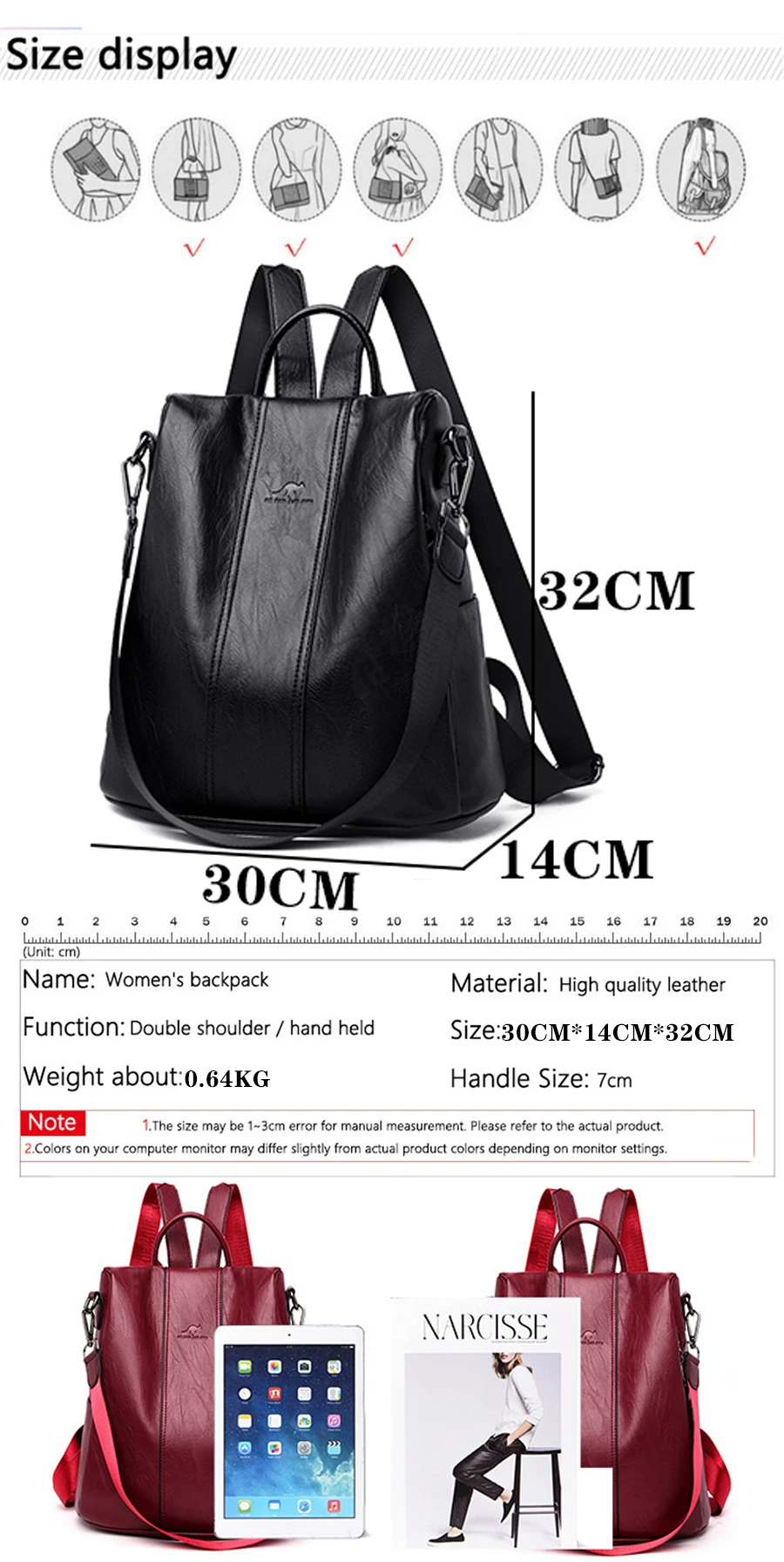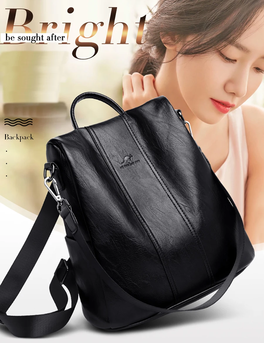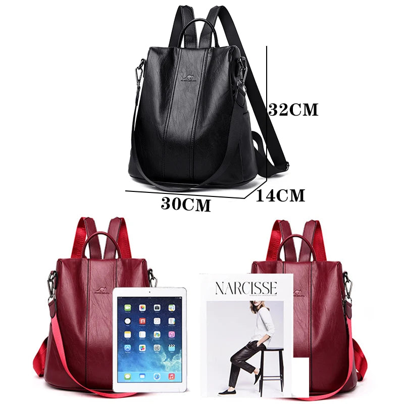 New PU Leather Backpack Fashion Women Backpack Luxury Designer Ladies Anti Theft Bookbag Large Capacity Travel SchoolBag Mochila