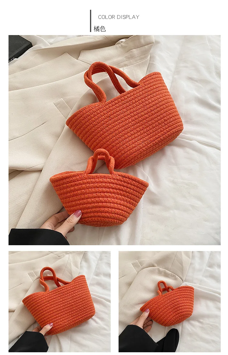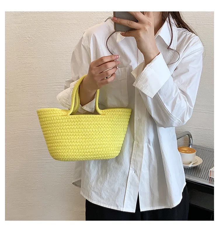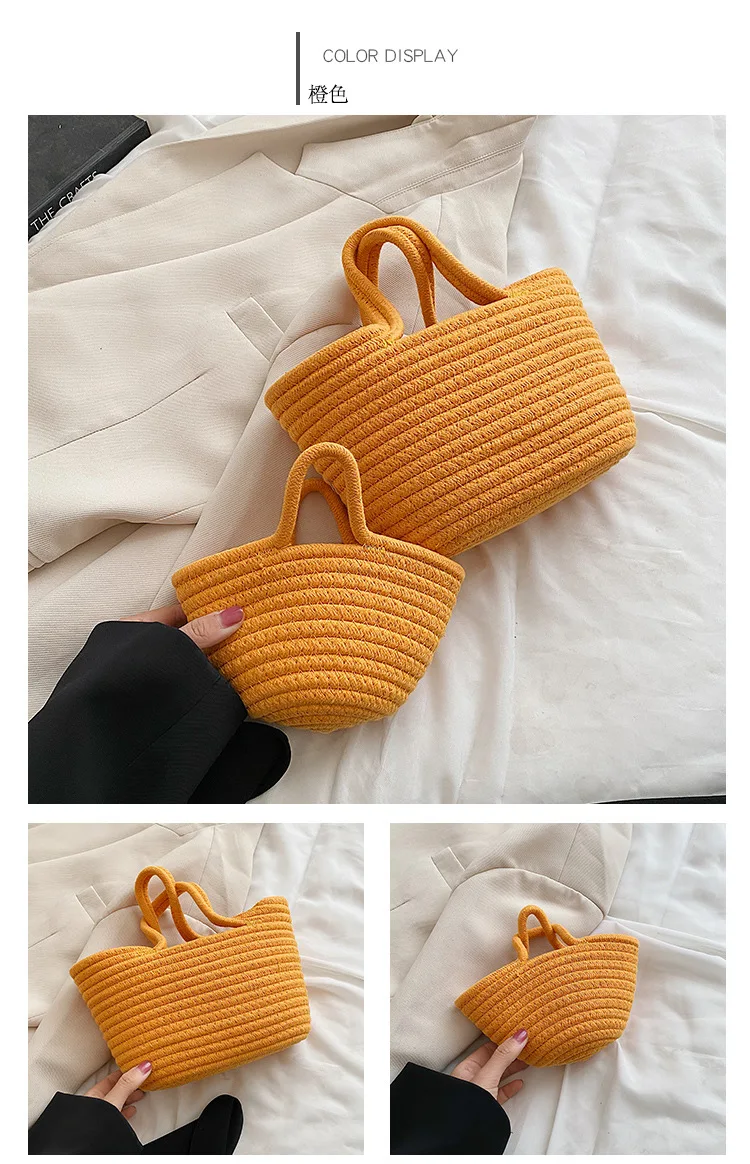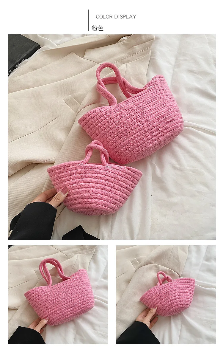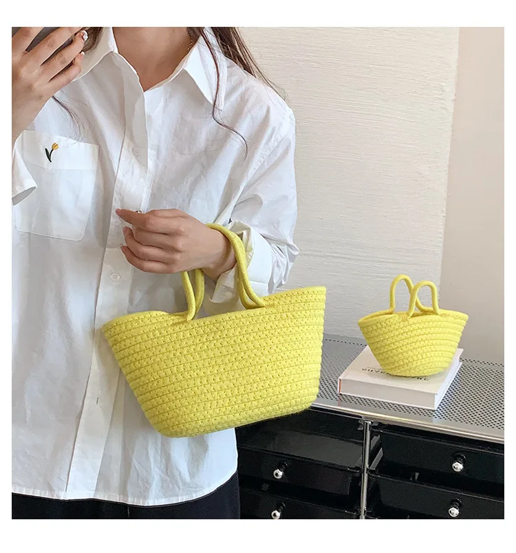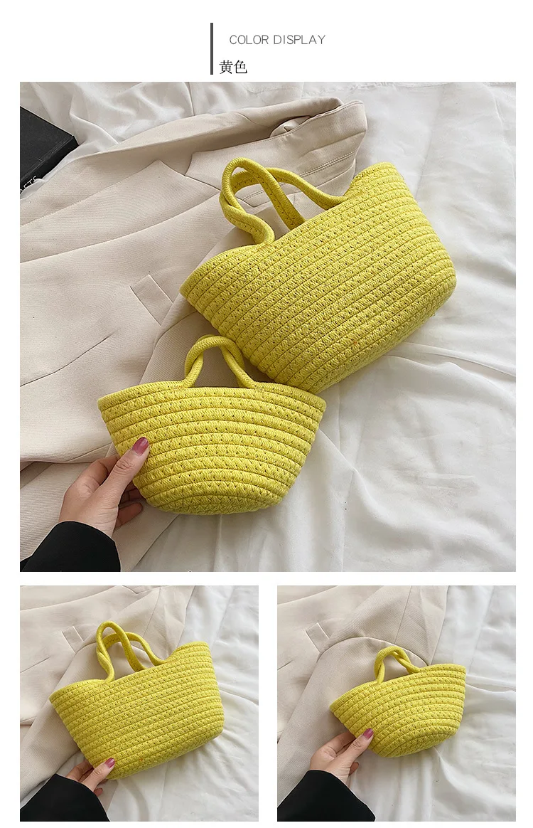 New Summer Straw Shoulder Bags For Women Handmade cotton rope Beach Bags Raffia Rattan Woven Handbags Vacation Shopping Bags