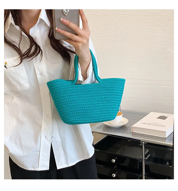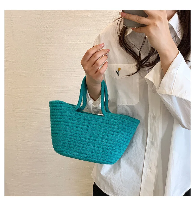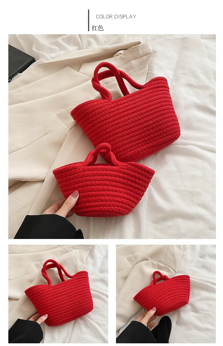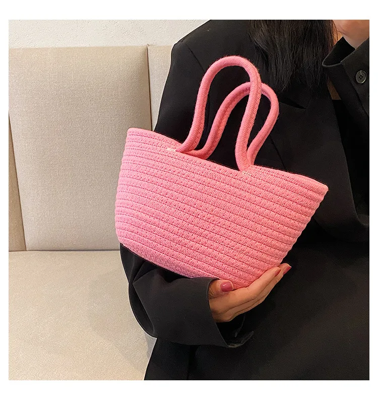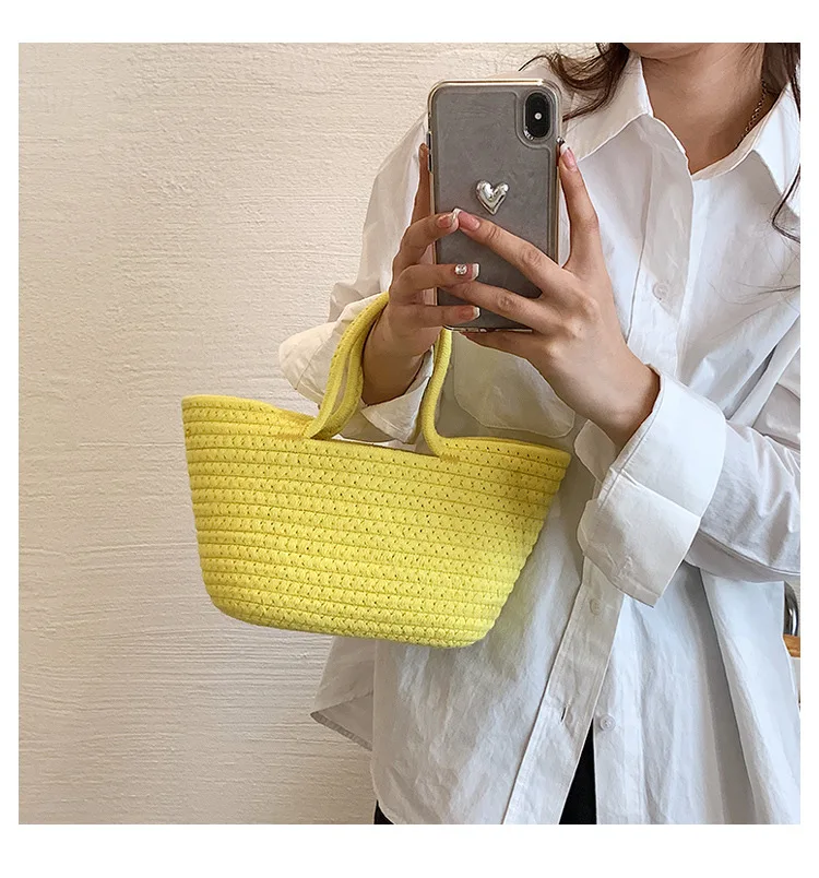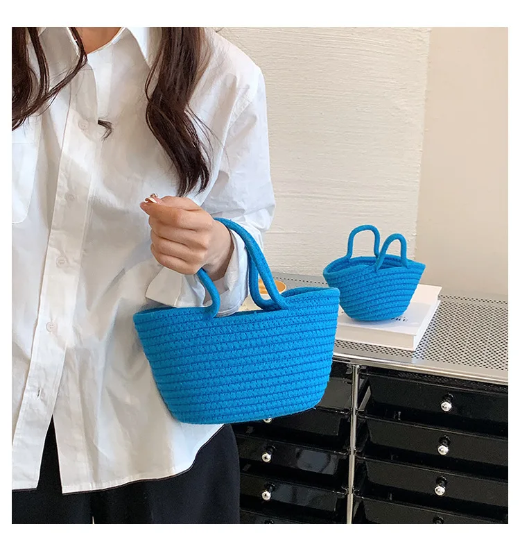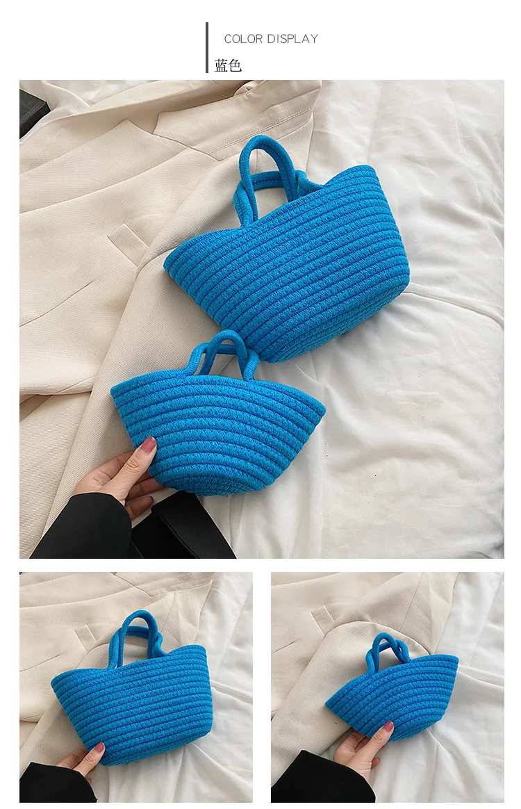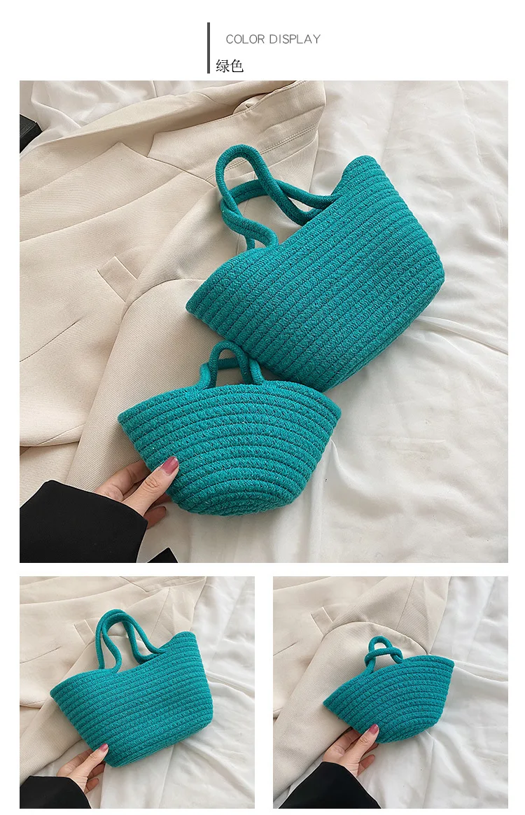 New Summer Straw Shoulder Bags For Women Handmade cotton rope Beach Bags Raffia Rattan Woven Handbags Vacation Shopping Bags
