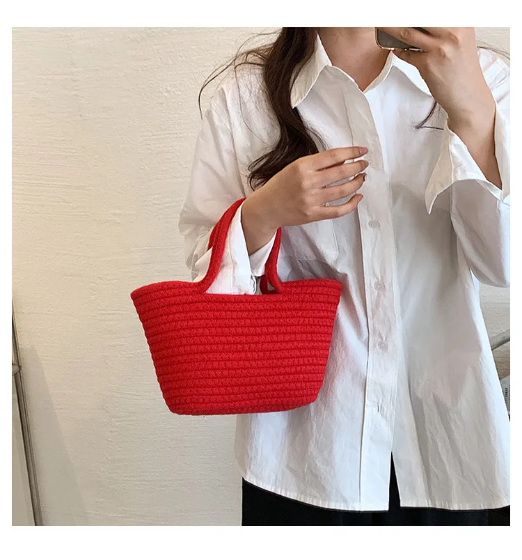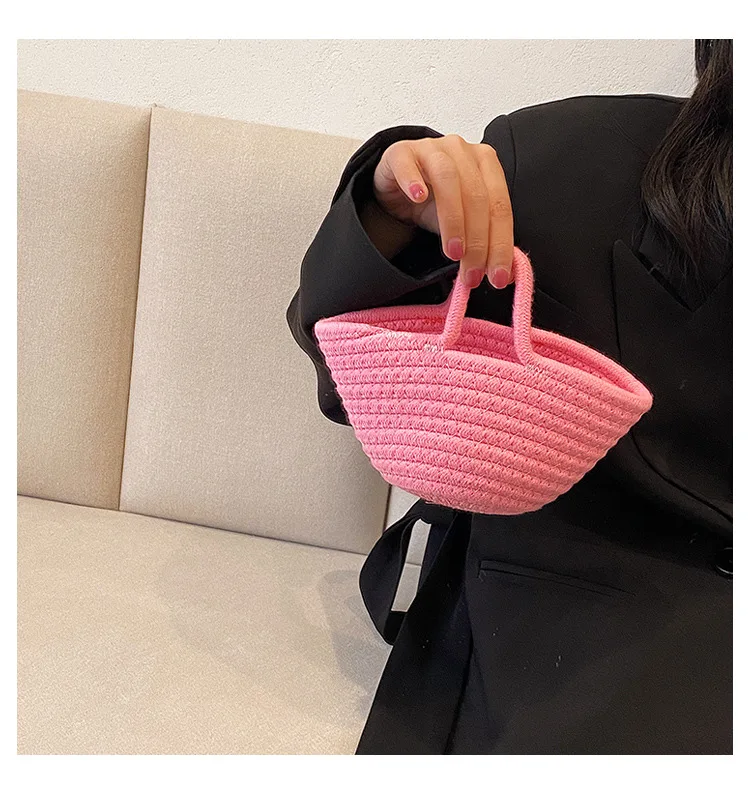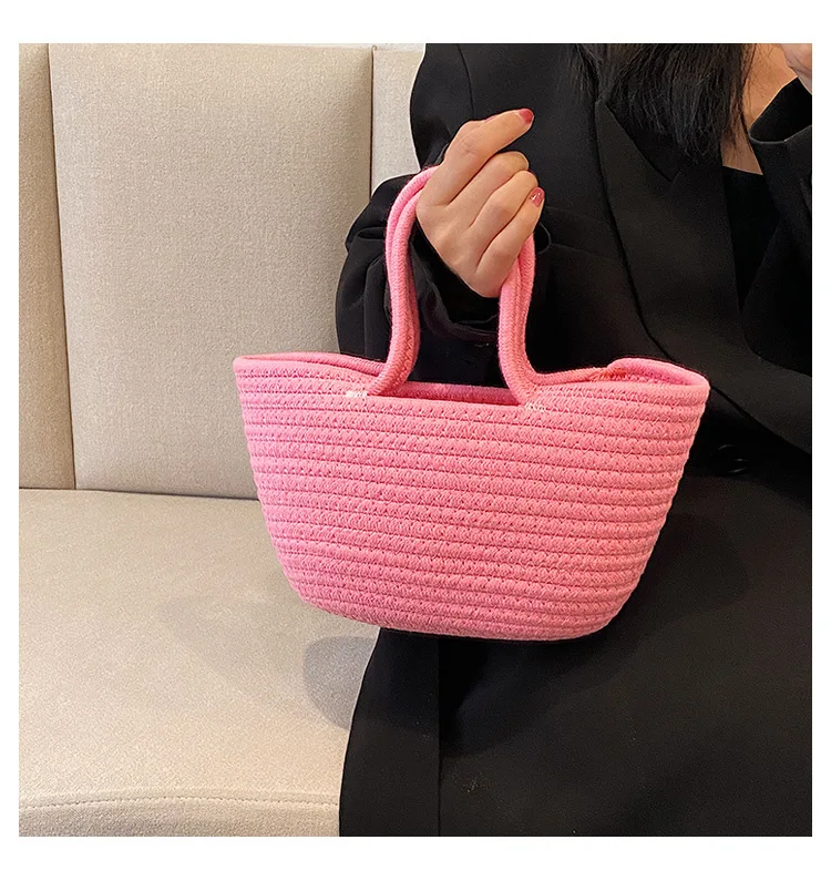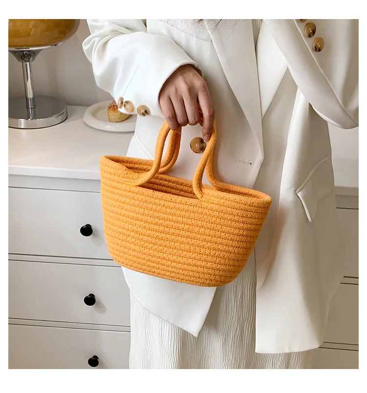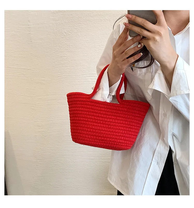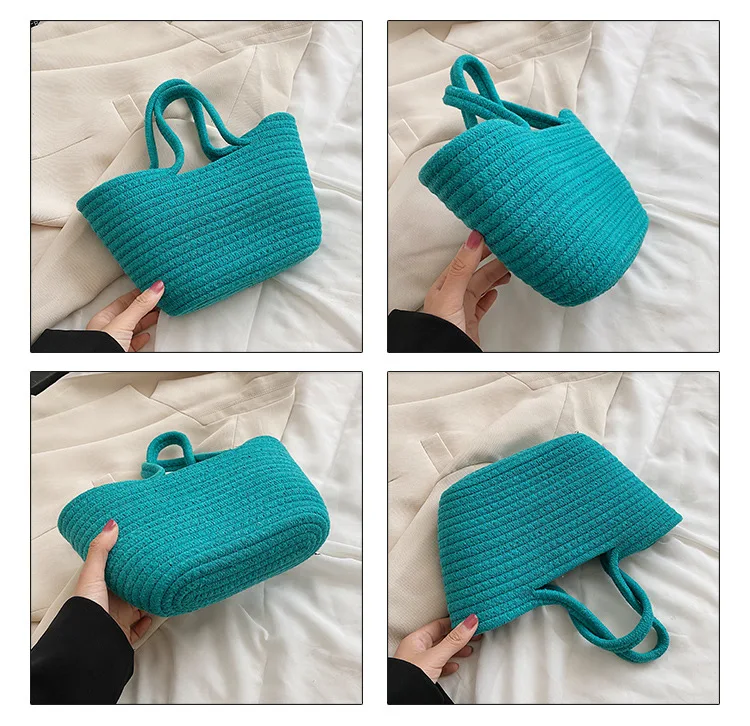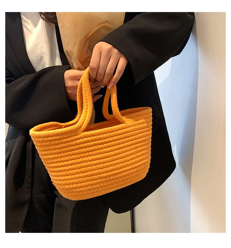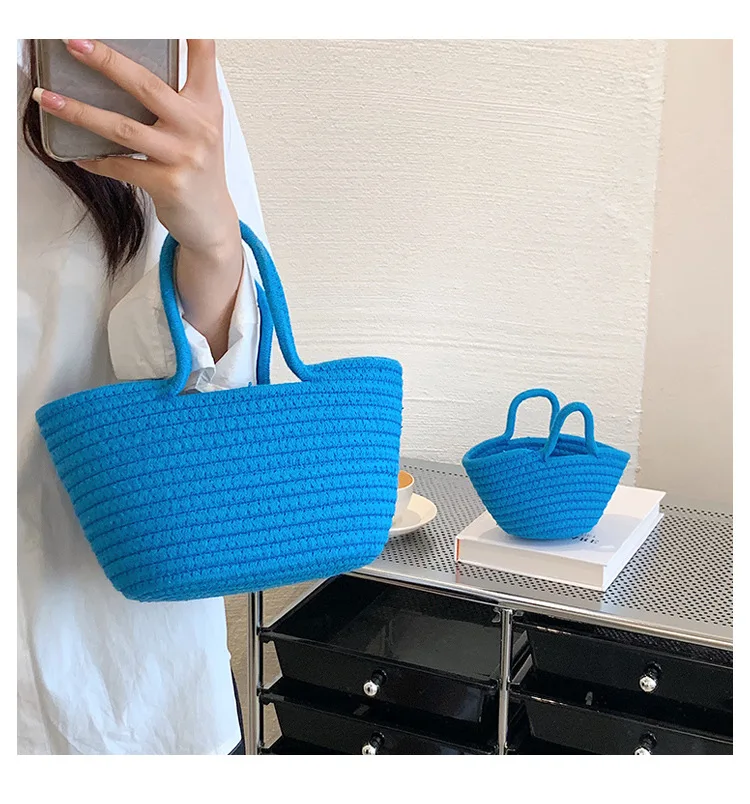 New Summer Straw Shoulder Bags For Women Handmade cotton rope Beach Bags Raffia Rattan Woven Handbags Vacation Shopping Bags