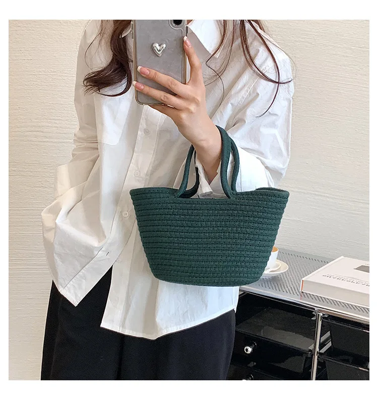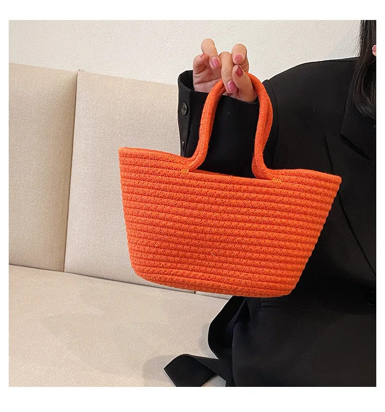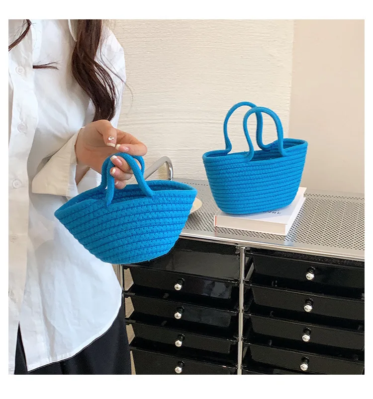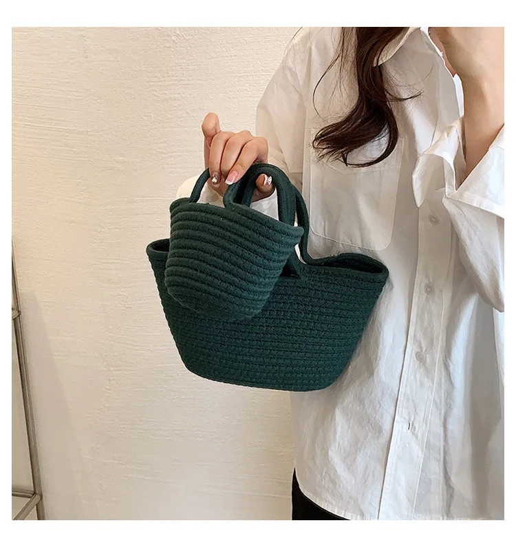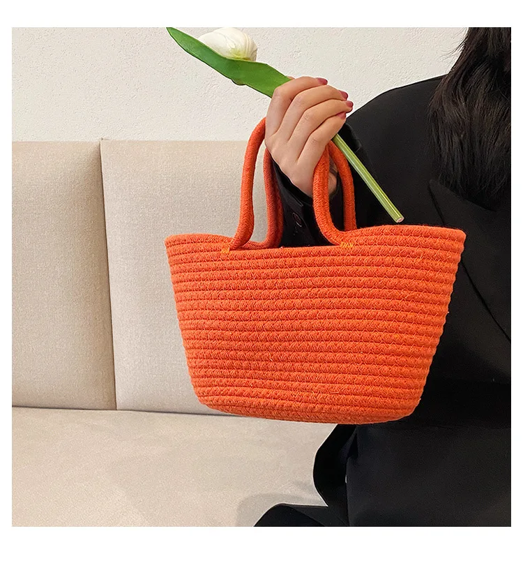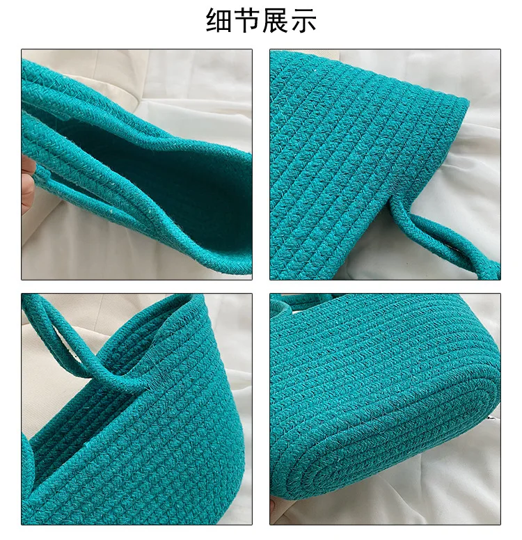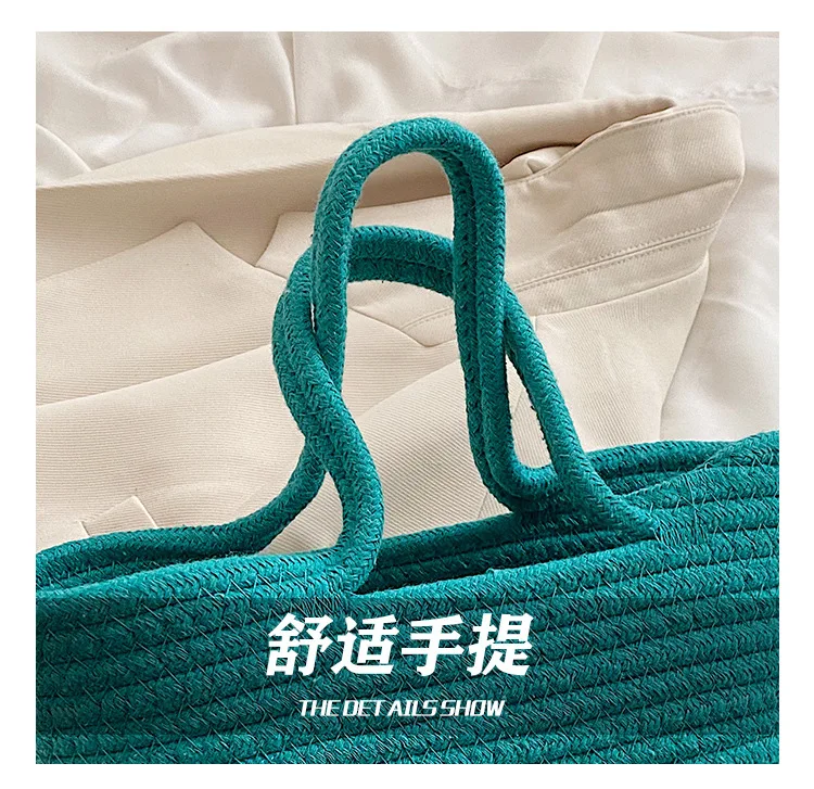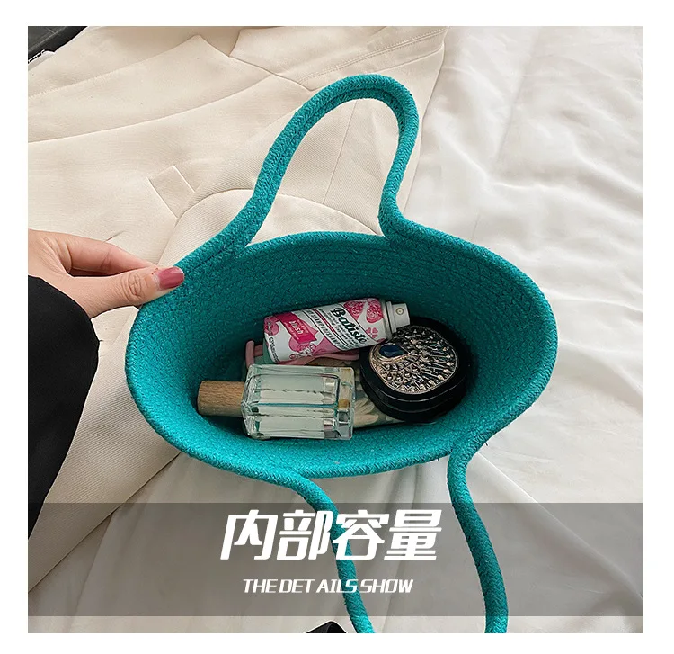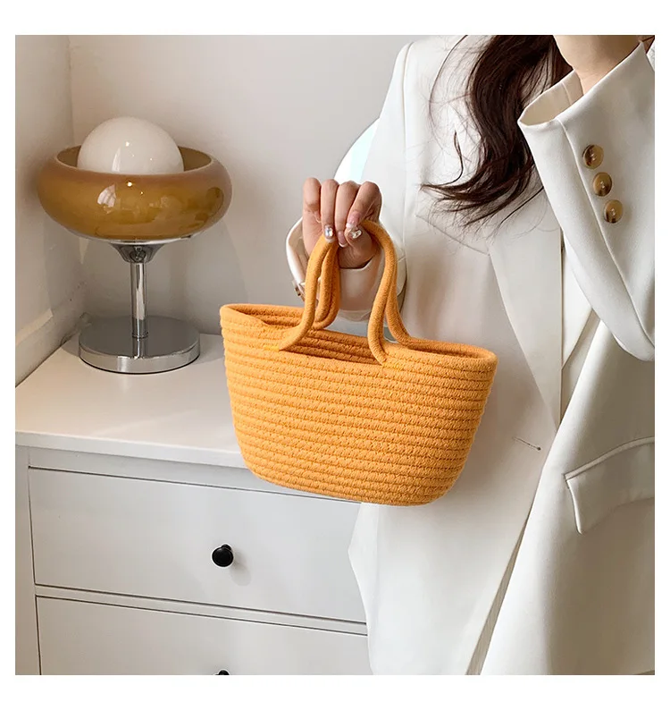 New Summer Straw Shoulder Bags For Women Handmade cotton rope Beach Bags Raffia Rattan Woven Handbags Vacation Shopping Bags