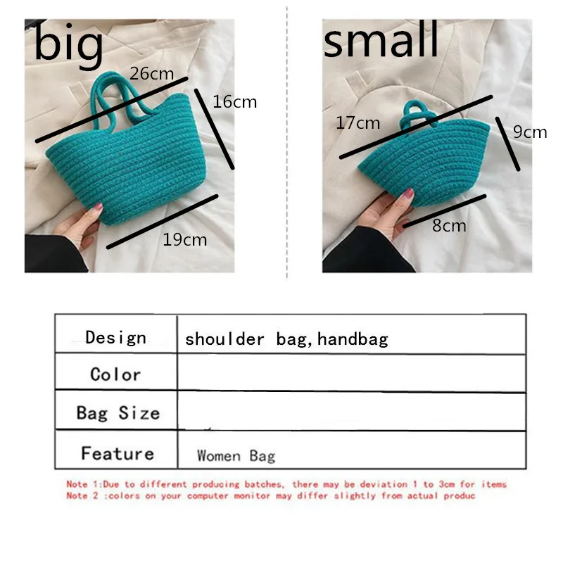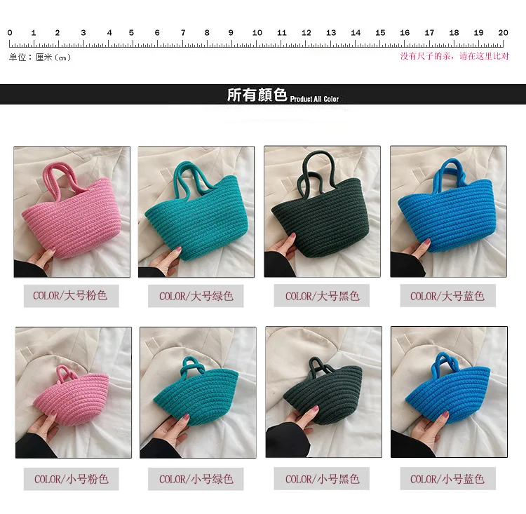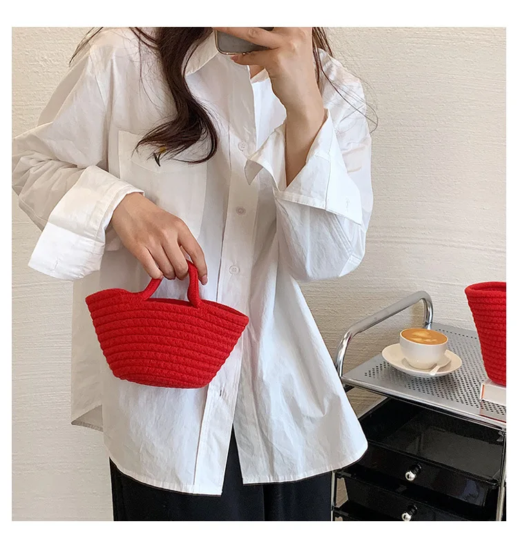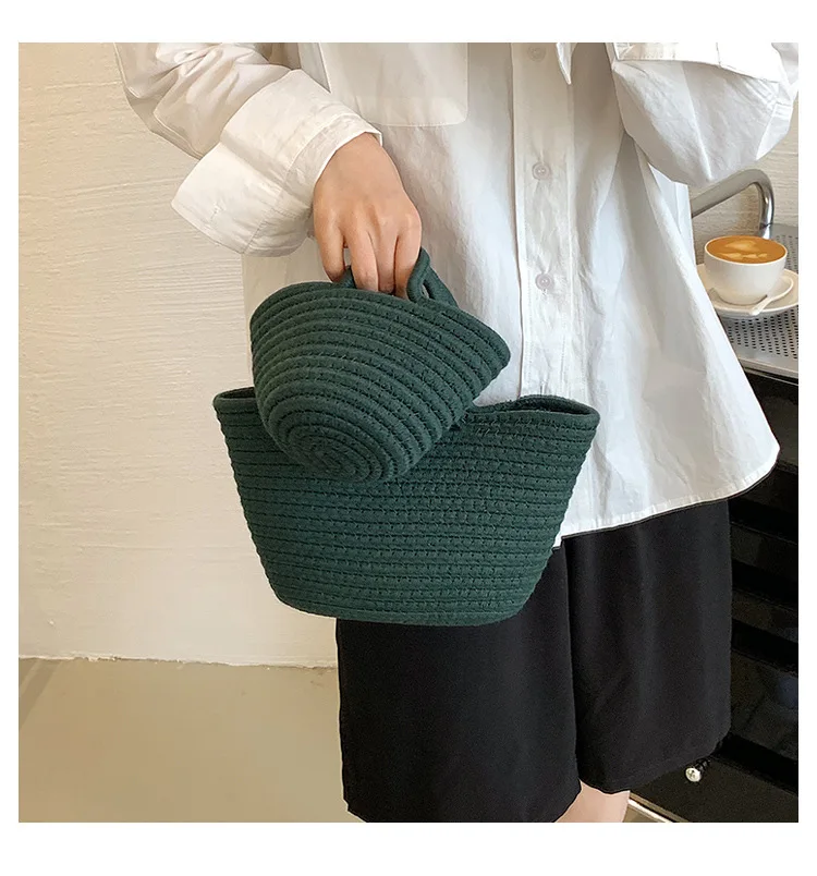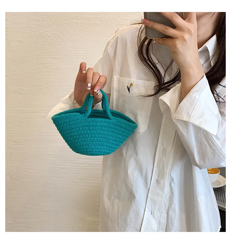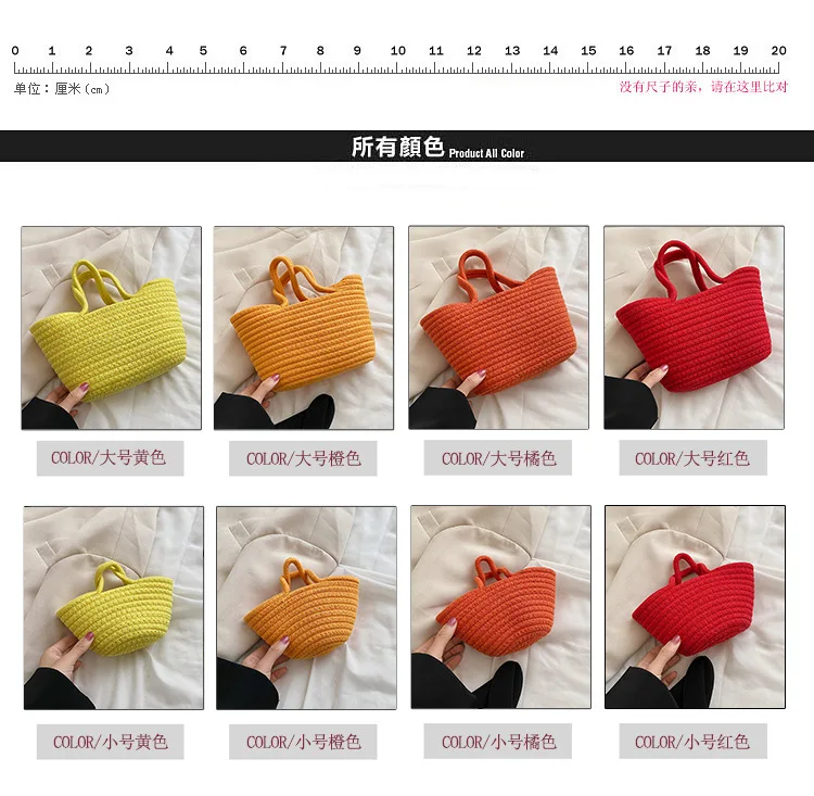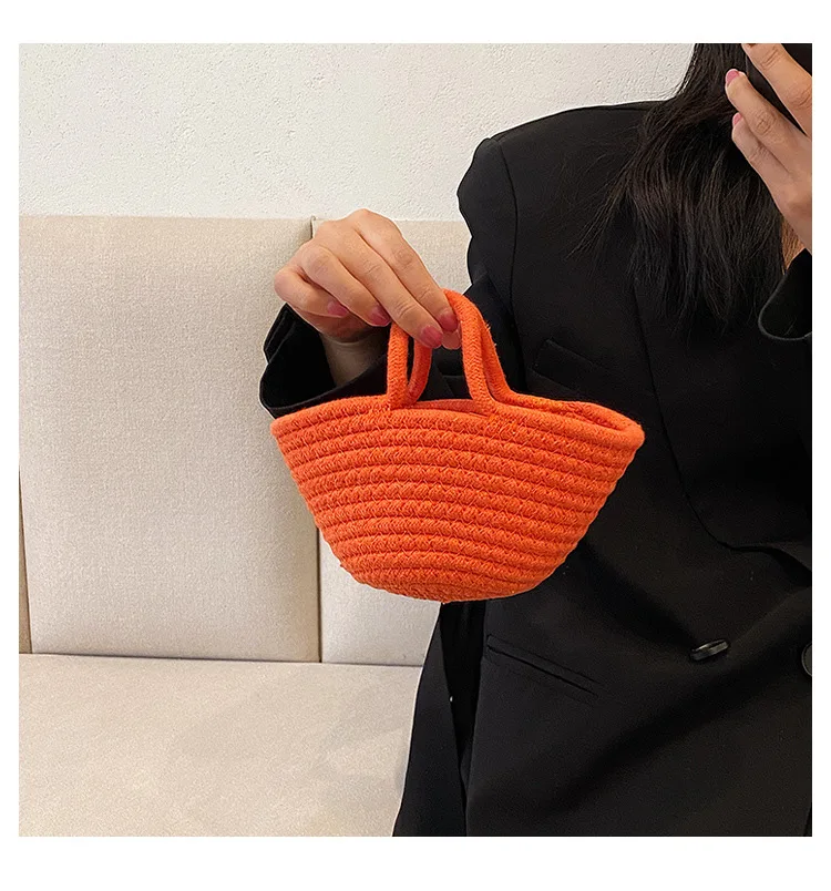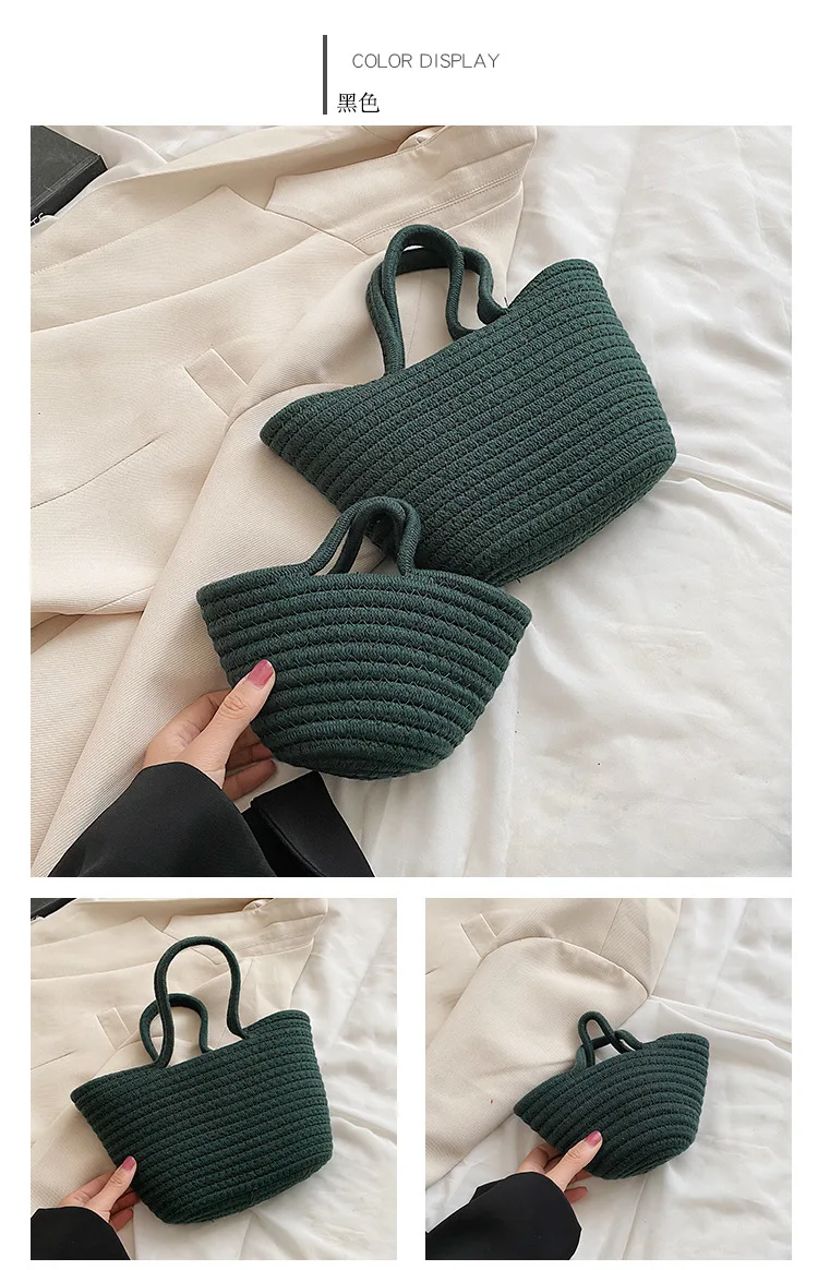 New Summer Straw Shoulder Bags For Women Handmade cotton rope Beach Bags Raffia Rattan Woven Handbags Vacation Shopping Bags