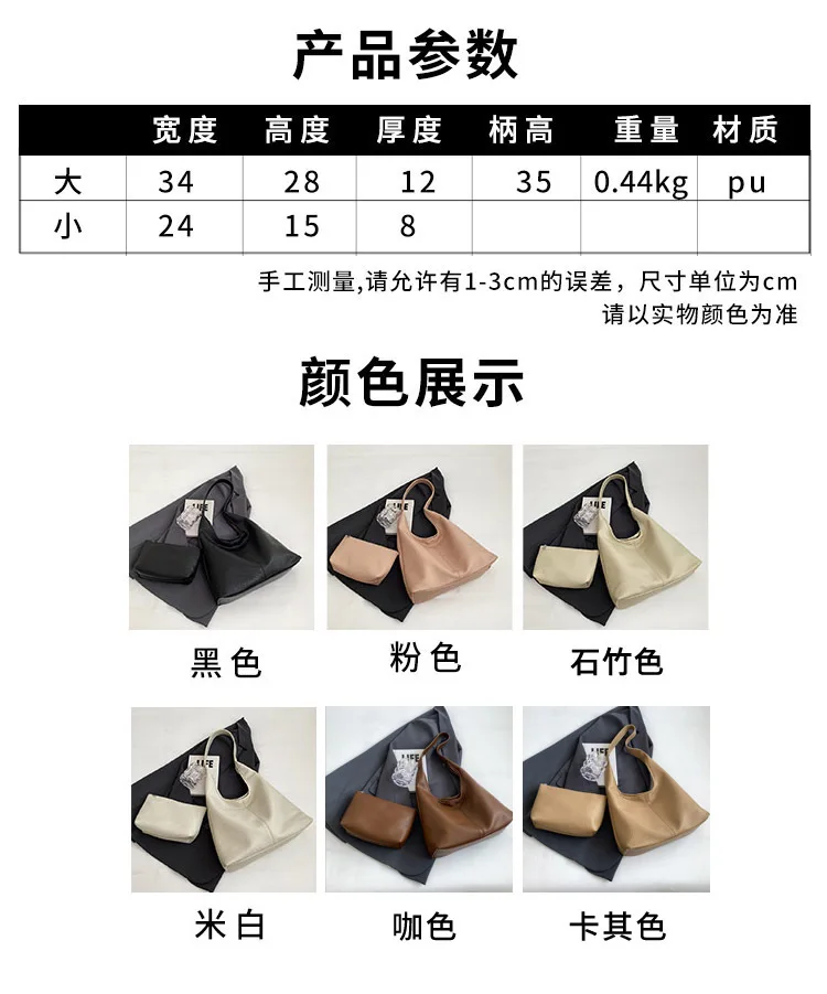New Tote Bag with Purse for Women Women's Shoulder Bags 2pc Set Luxury Pu Leather Large Capacity Tote Bag Ladies Casual Handbag