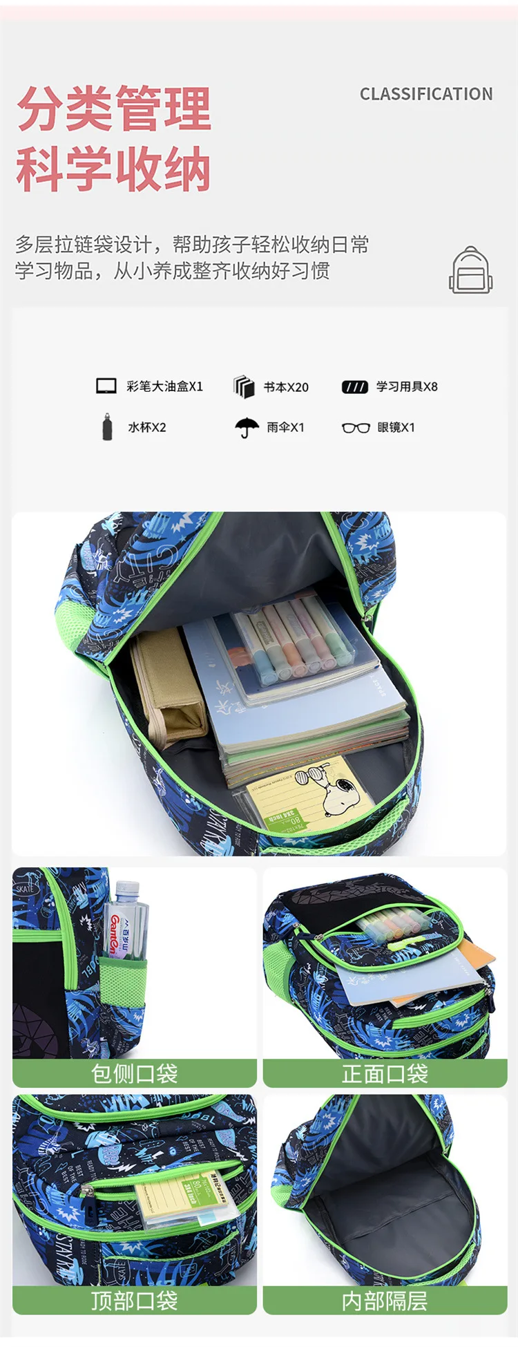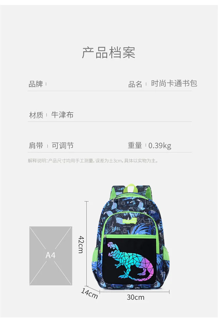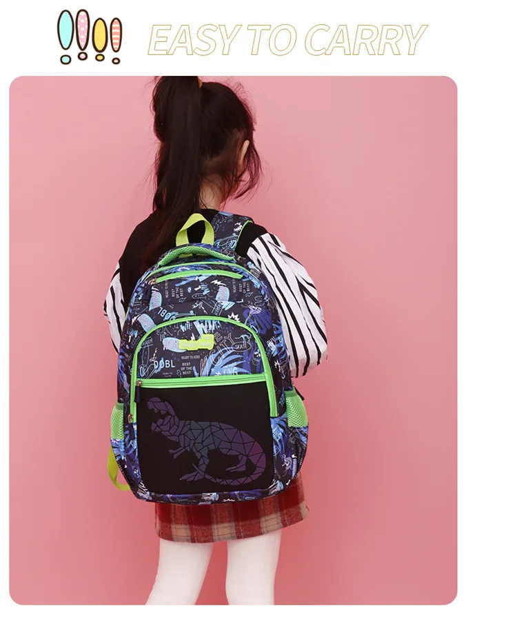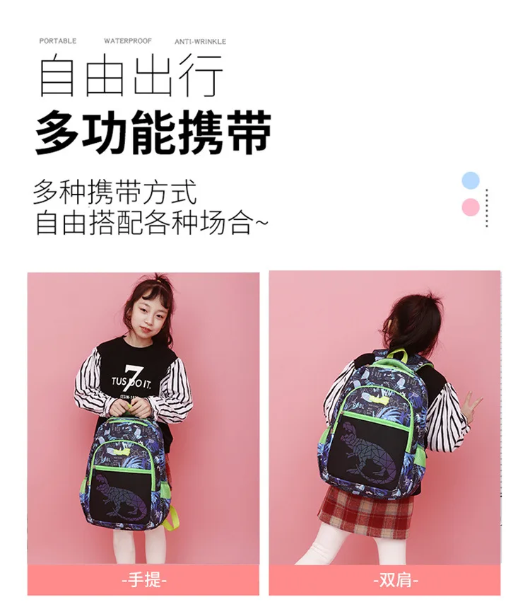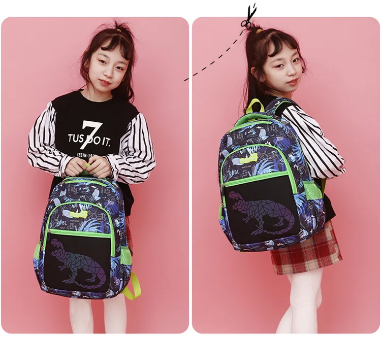 Roar into action with our Dinosaur edition children's backpack! This backpack brings a twist of excitement as its dinosaur pattern changes color under different lighting conditions, adding an element of surprise and fun. Crafted from tough and waterproof Oxford fabric, it's built to withstand the adventures of your little explorer. Featuring ample storage space and multiple compartments with sturdy zippers, it offers hassle-free organization for all essentials. Let your young adventurer embark on thrilling journeys with our Dinosaur edition backpack!