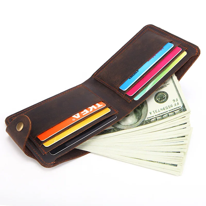 New Wallet for Men Top Layer Cowhide Wallet Oil Wax Genuine Leather Coin Purse