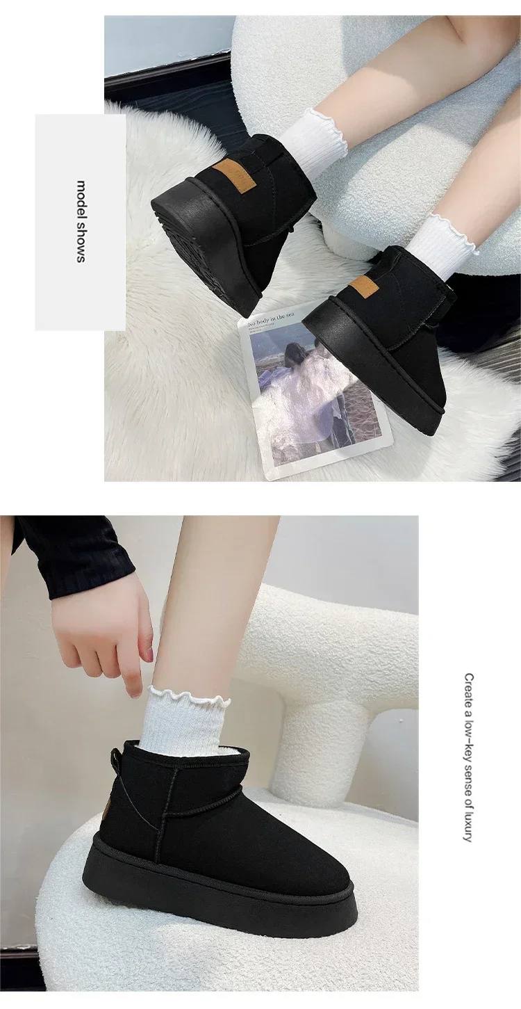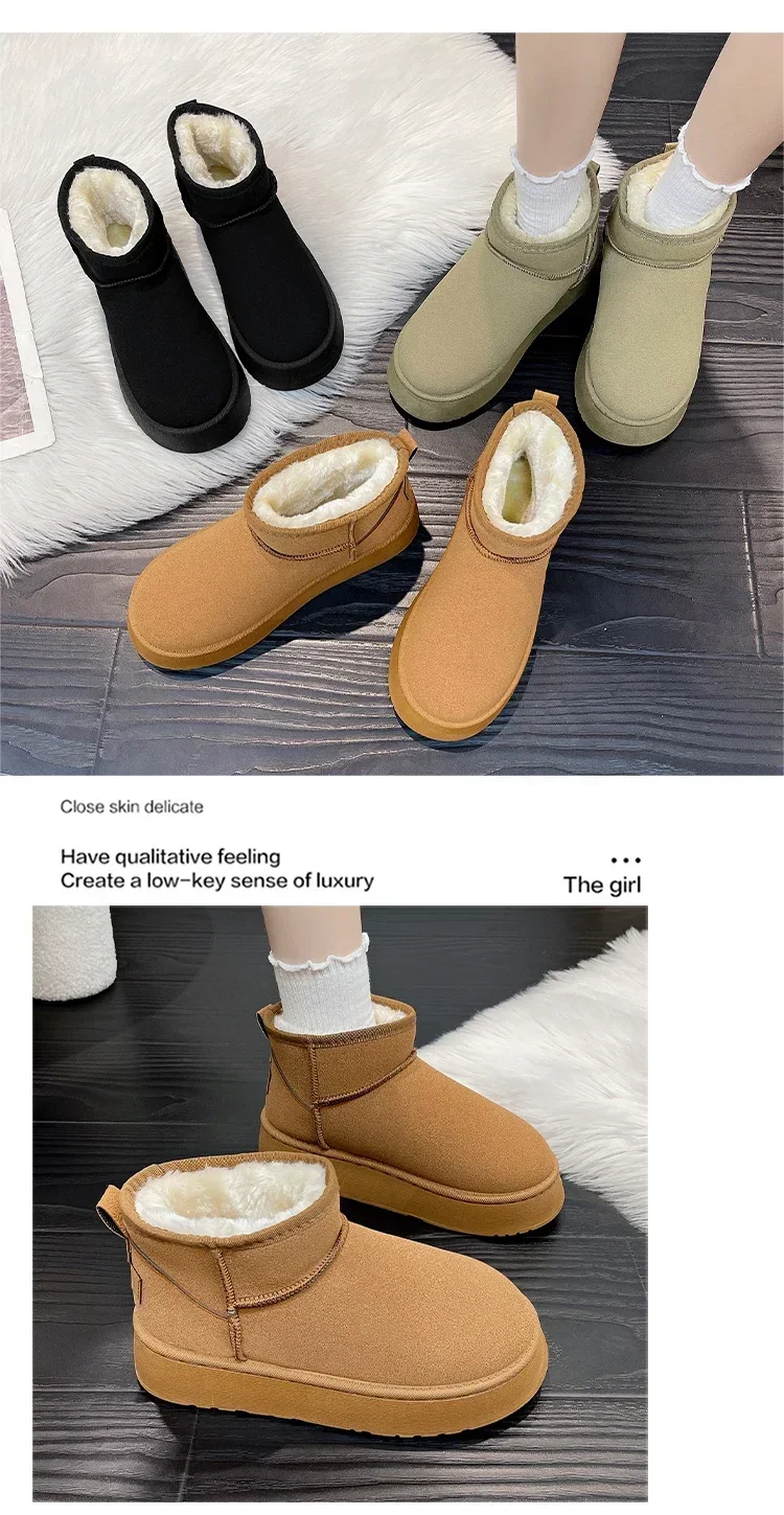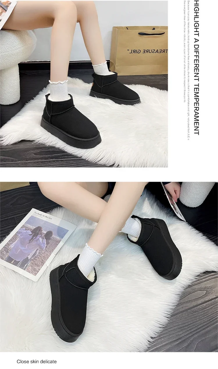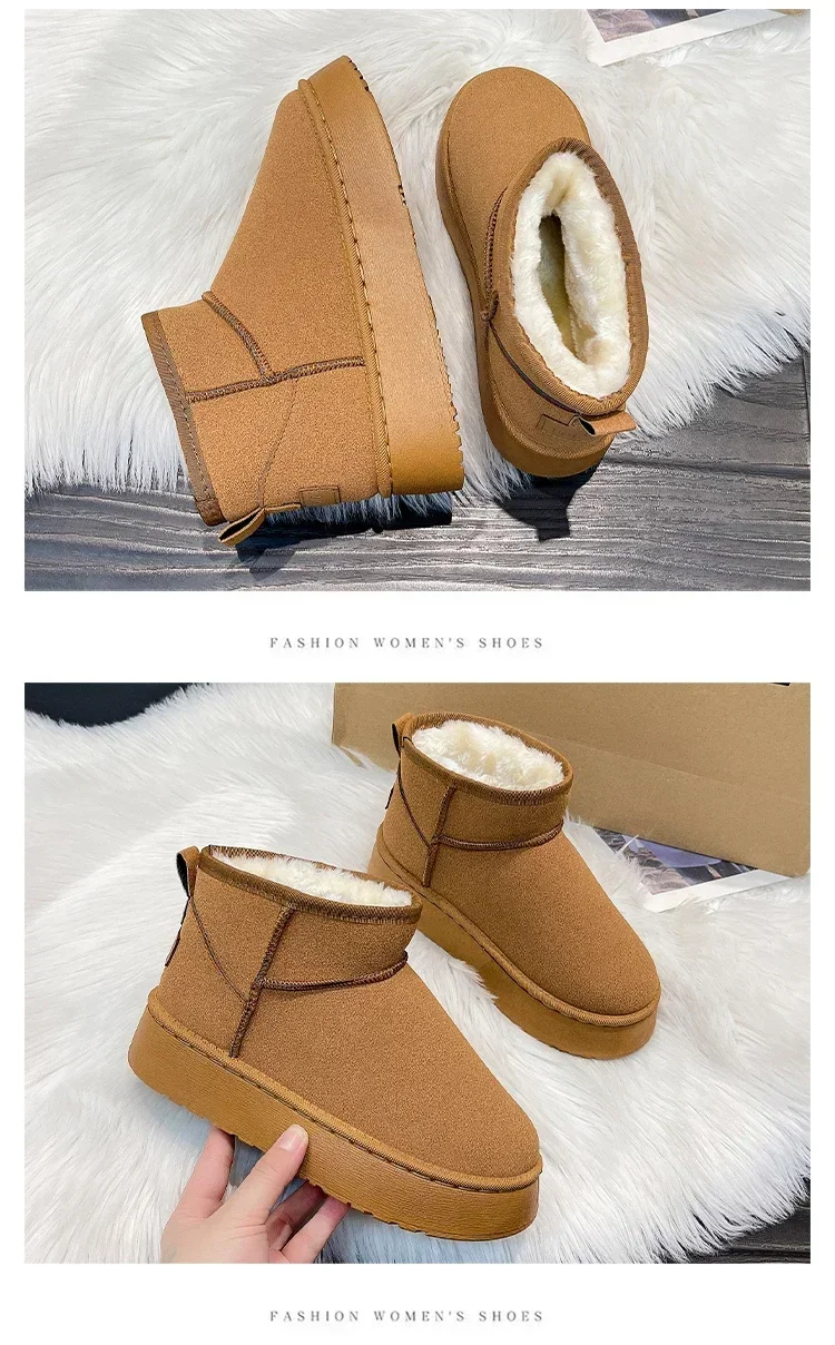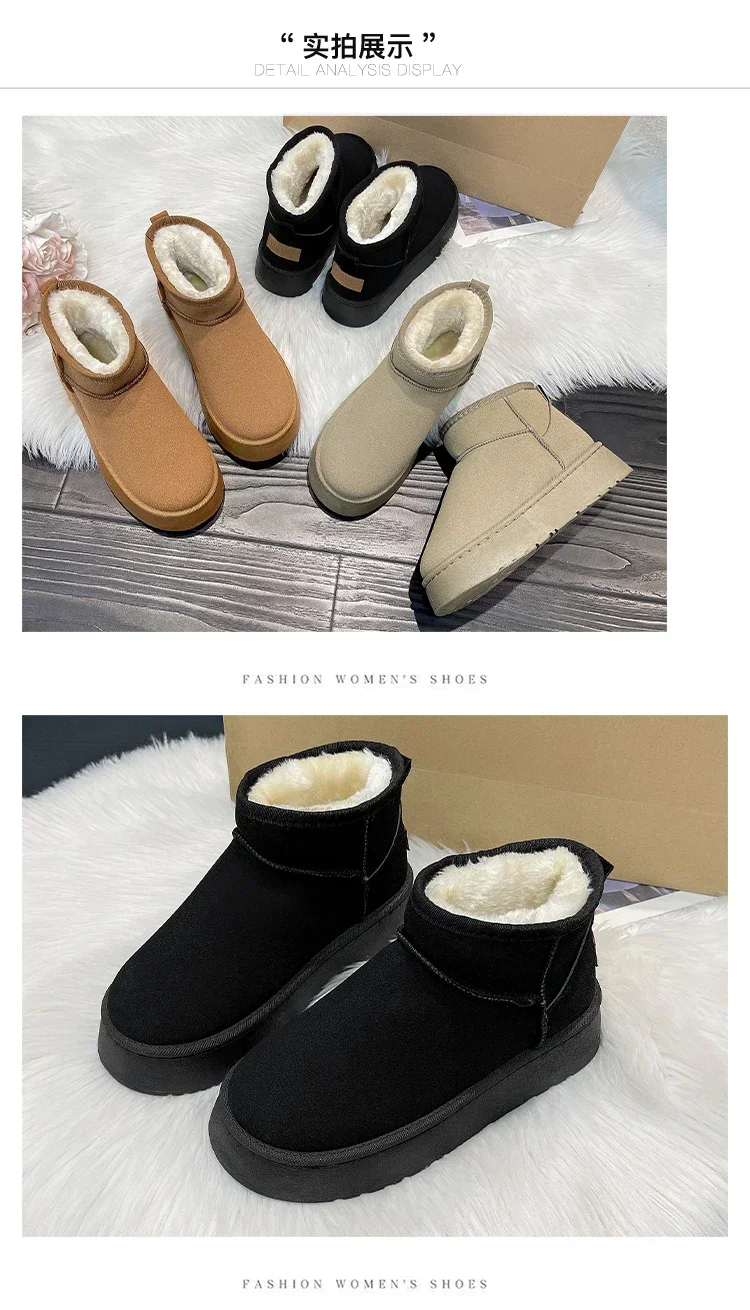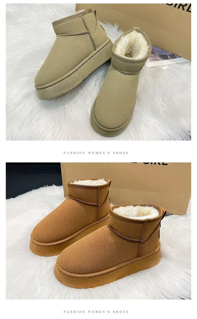 New Winter Women Short Plush Warm Snow Boots Flats Casual Shoes Suede Fur Chelsea Ankle Boots Platform Ladies Shoes Botas Mujer