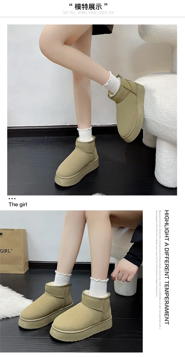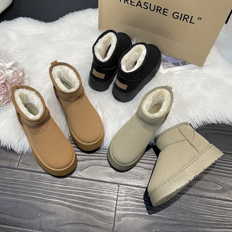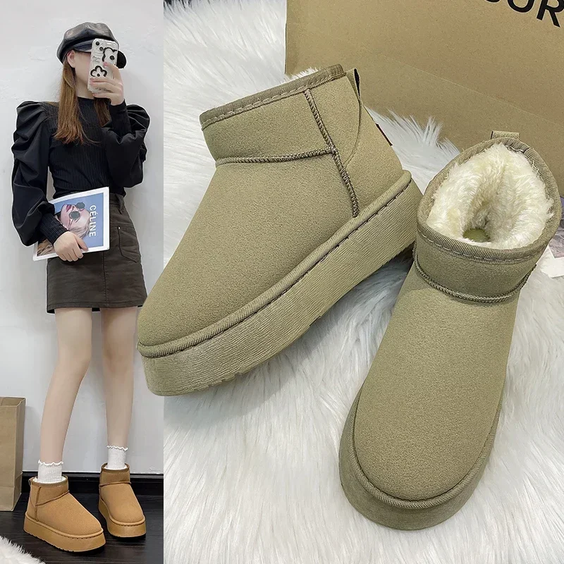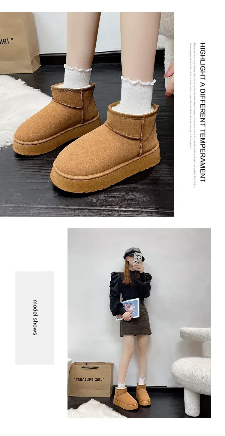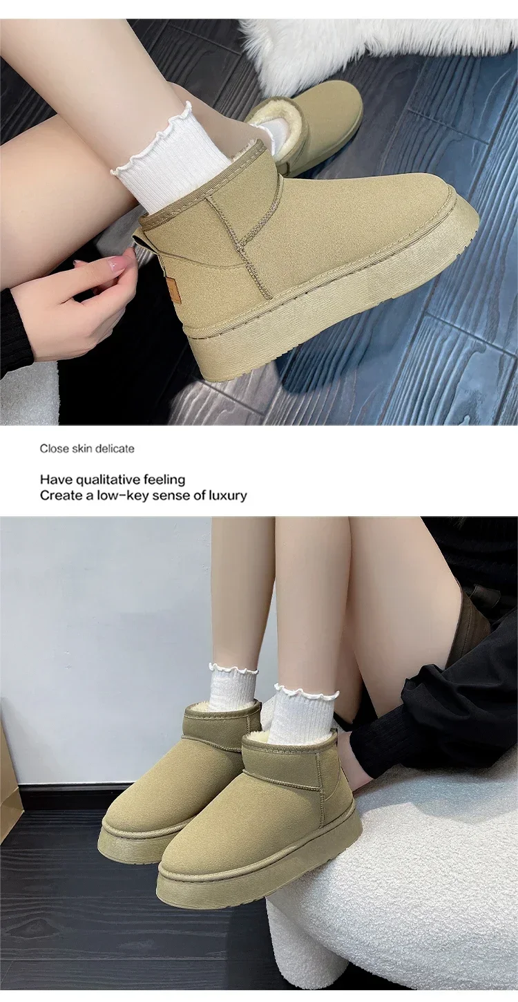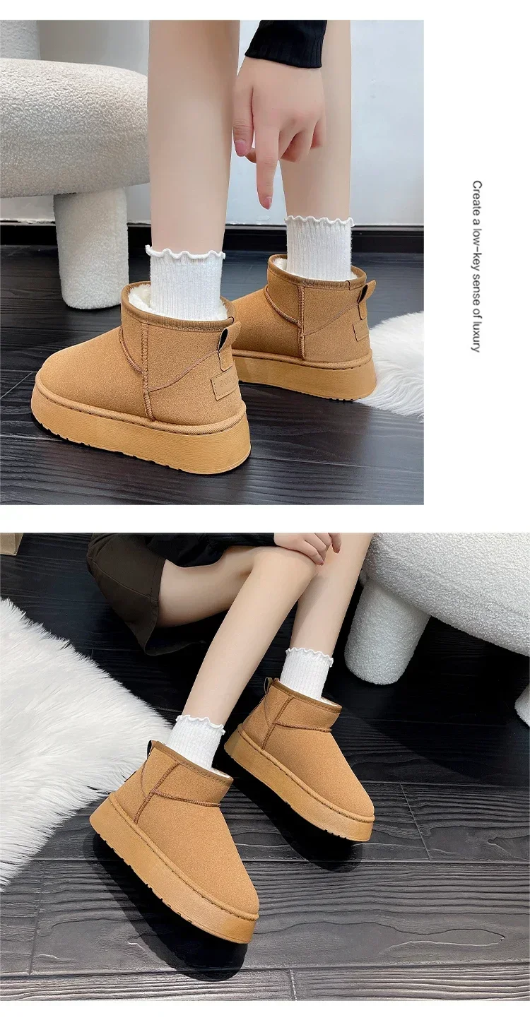 New Winter Women Short Plush Warm Snow Boots Flats Casual Shoes Suede Fur Chelsea Ankle Boots Platform Ladies Shoes Botas Mujer