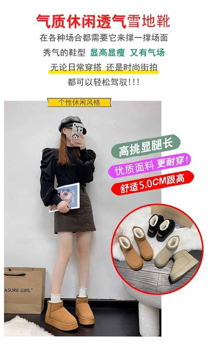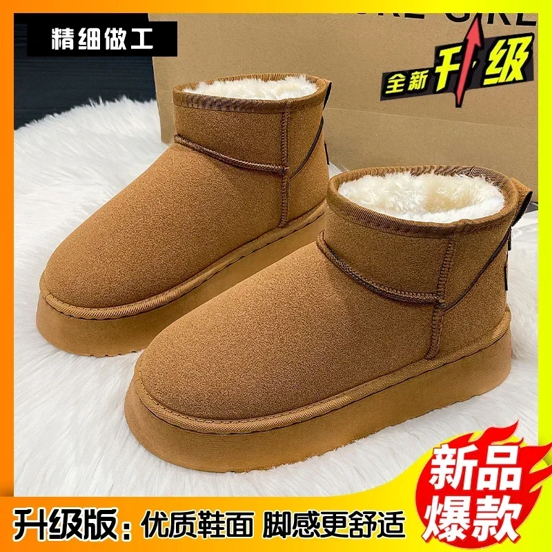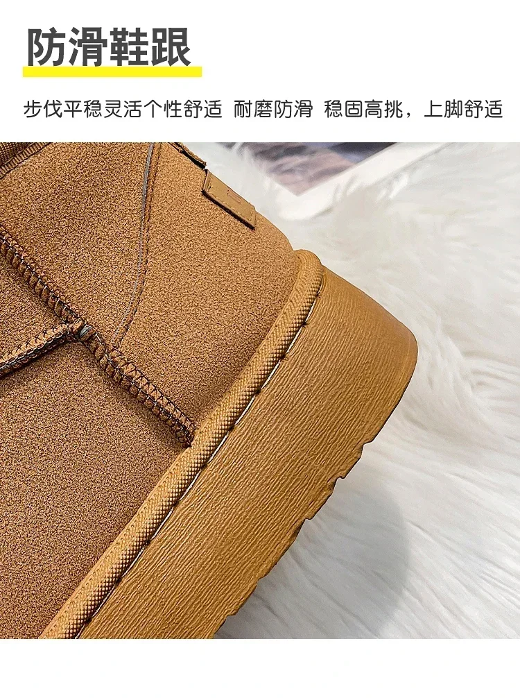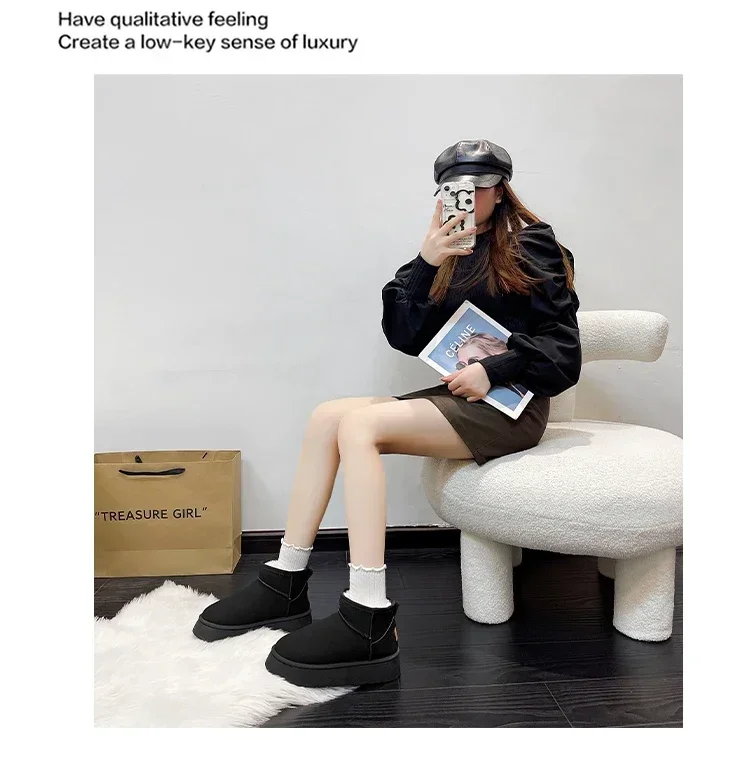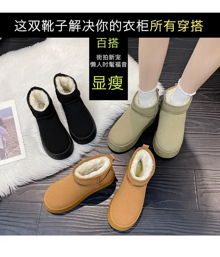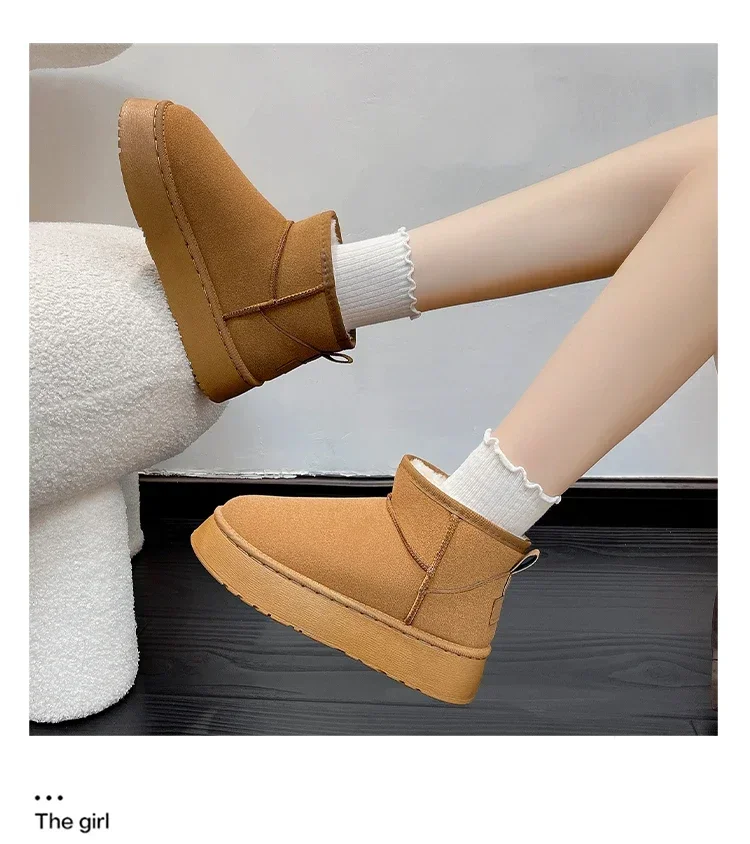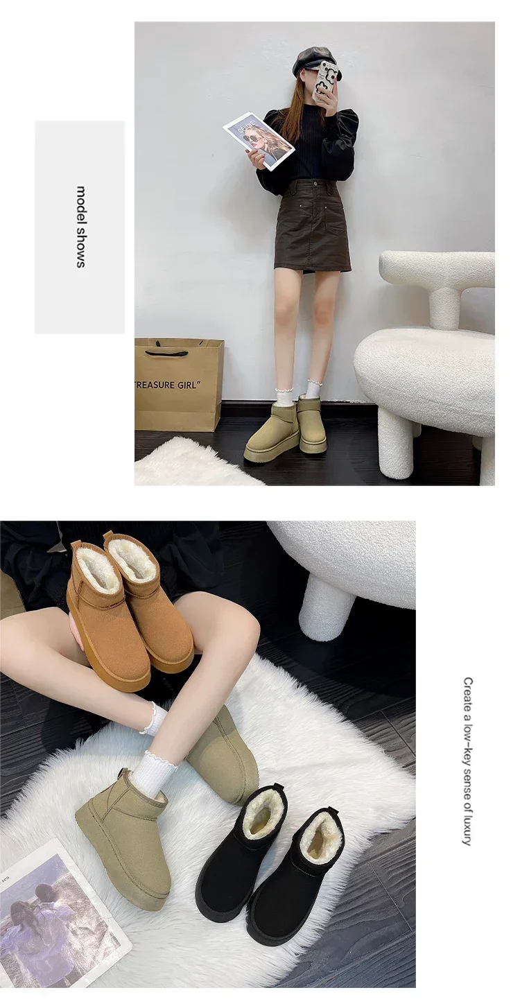 New Winter Women Short Plush Warm Snow Boots Flats Casual Shoes Suede Fur Chelsea Ankle Boots Platform Ladies Shoes Botas Mujer