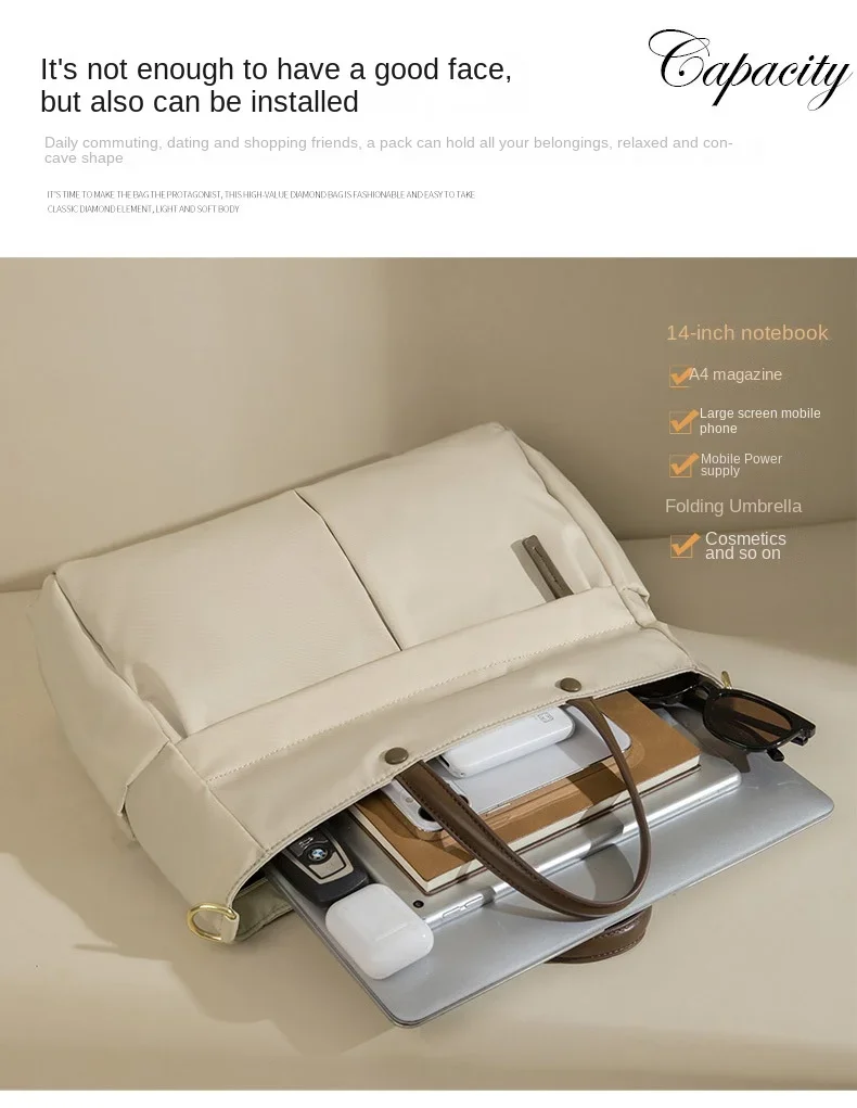 New Women Handbag Business Briefcase Fashion Waterproof Wear-resistant Shoulder Bags Accommodates 15 inch Laptops Female Tote