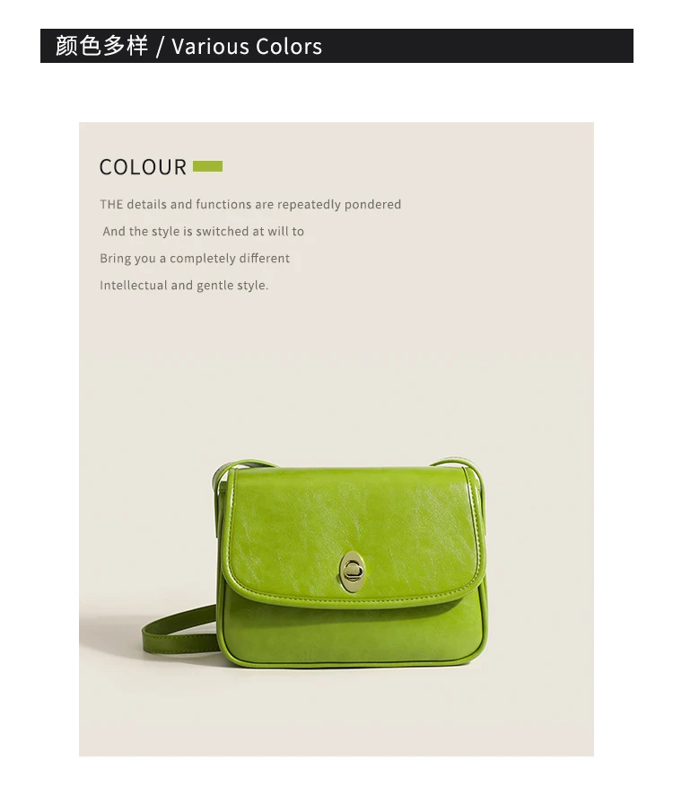 PVC upper material Polyester cotton lining materialButton closure Length: 25cmWidth: 8cmHeight: 19cmColor: Black, Brown, Green
