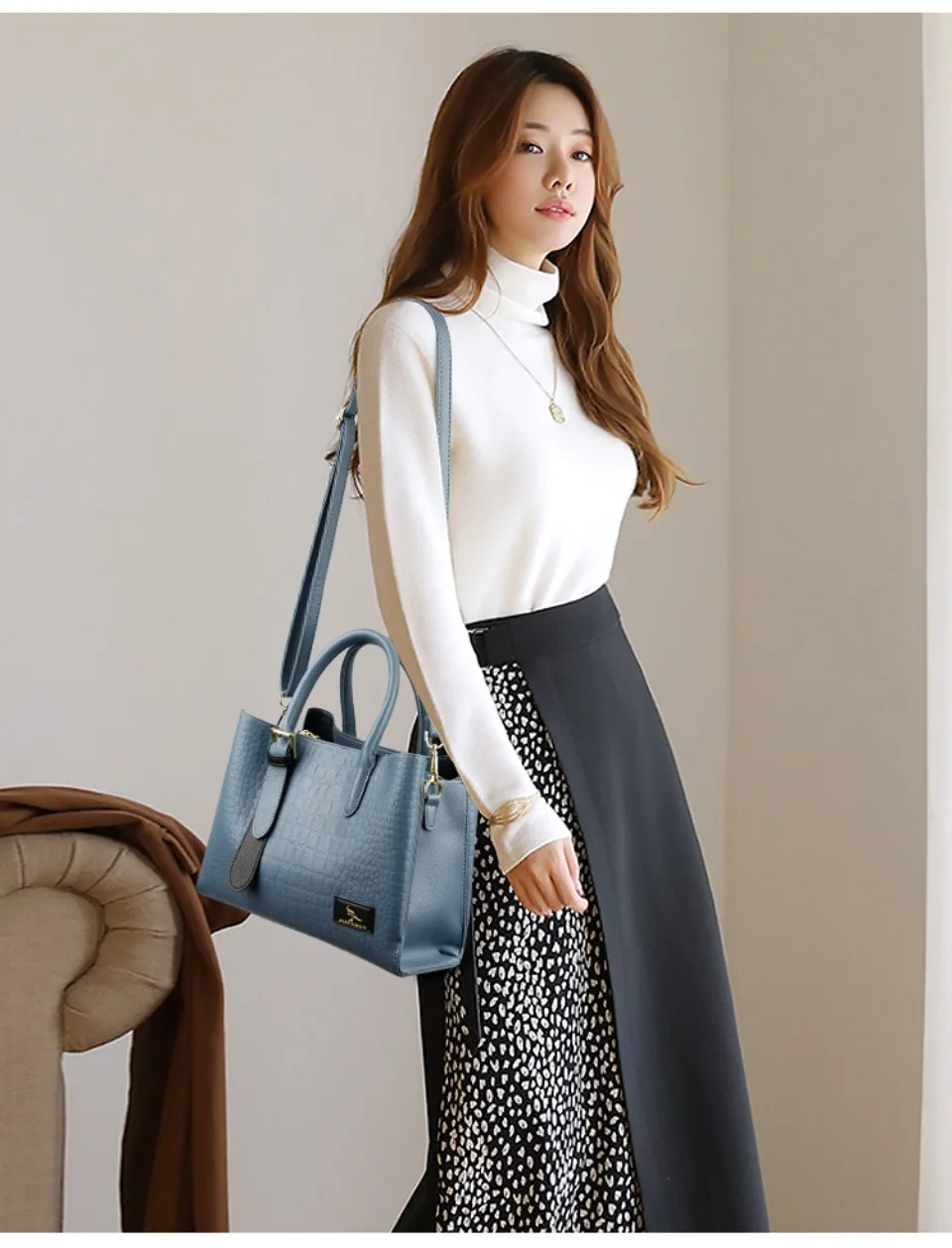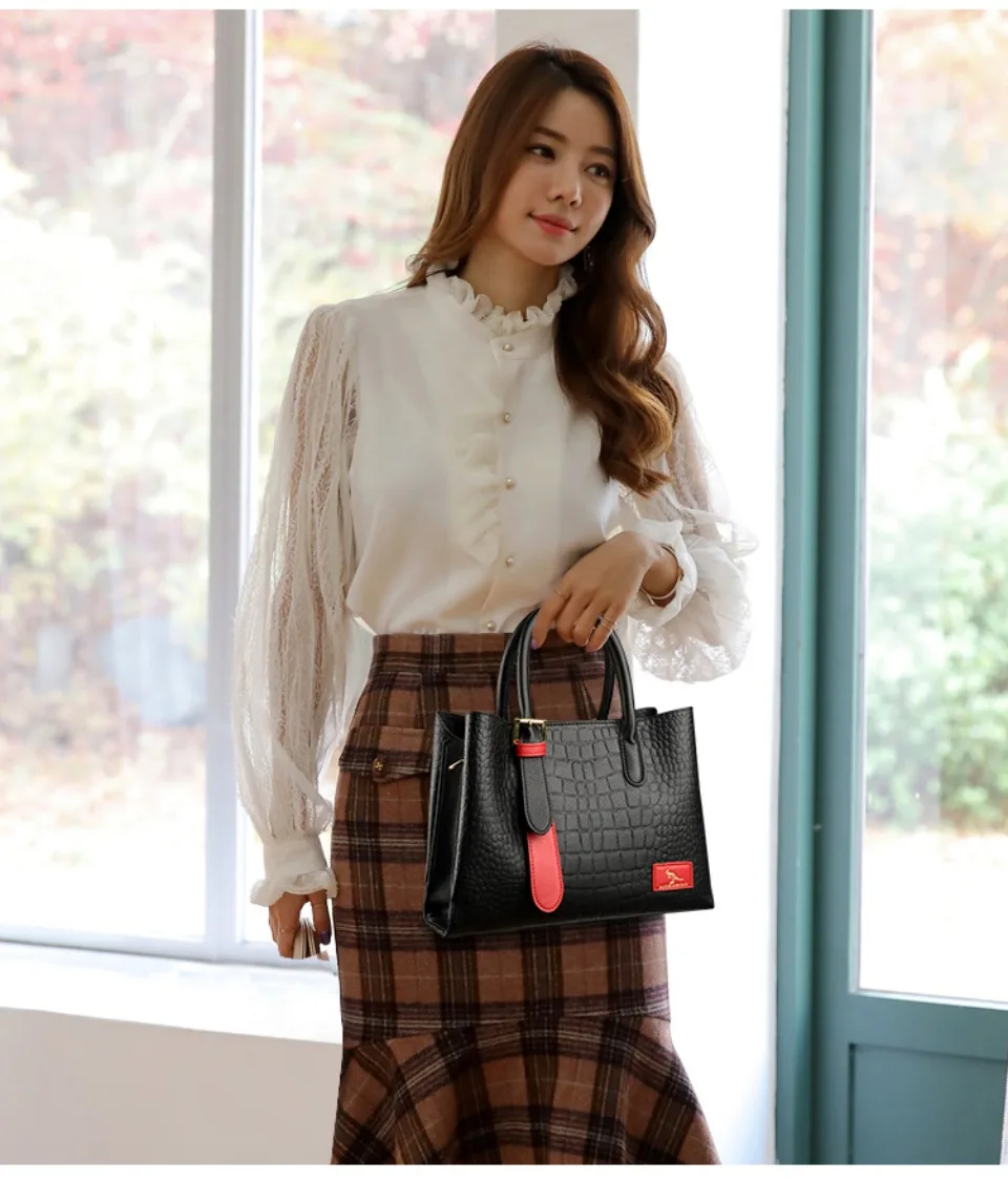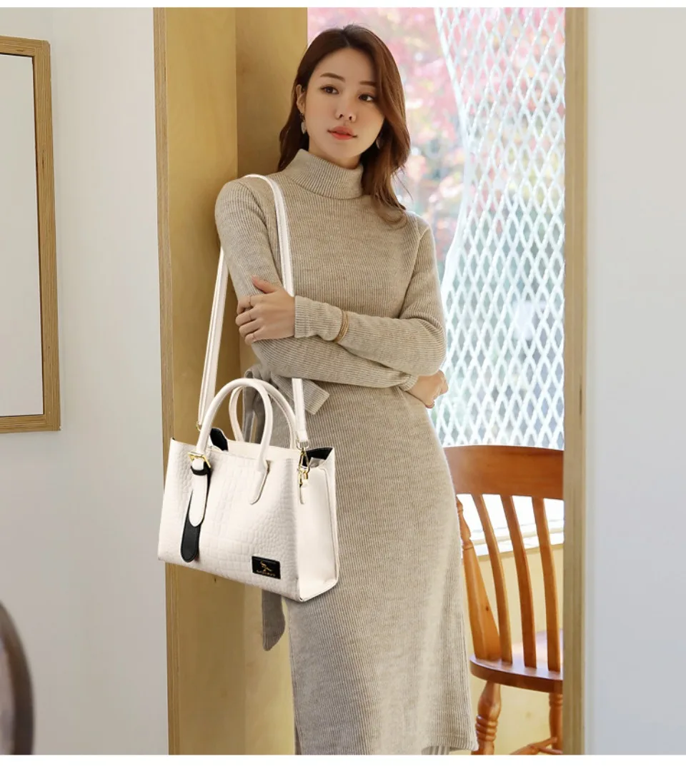 New Women's Leather Bag Designer Genuine Women Tote Bags Luxury Shoulder Crocodile Purses Handbags Retro Bag Large Capacity