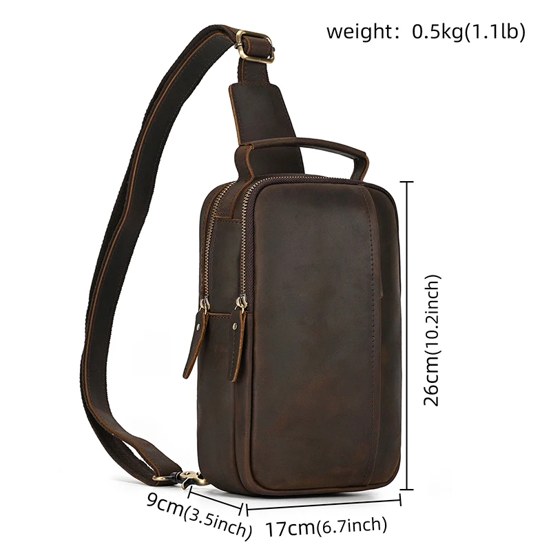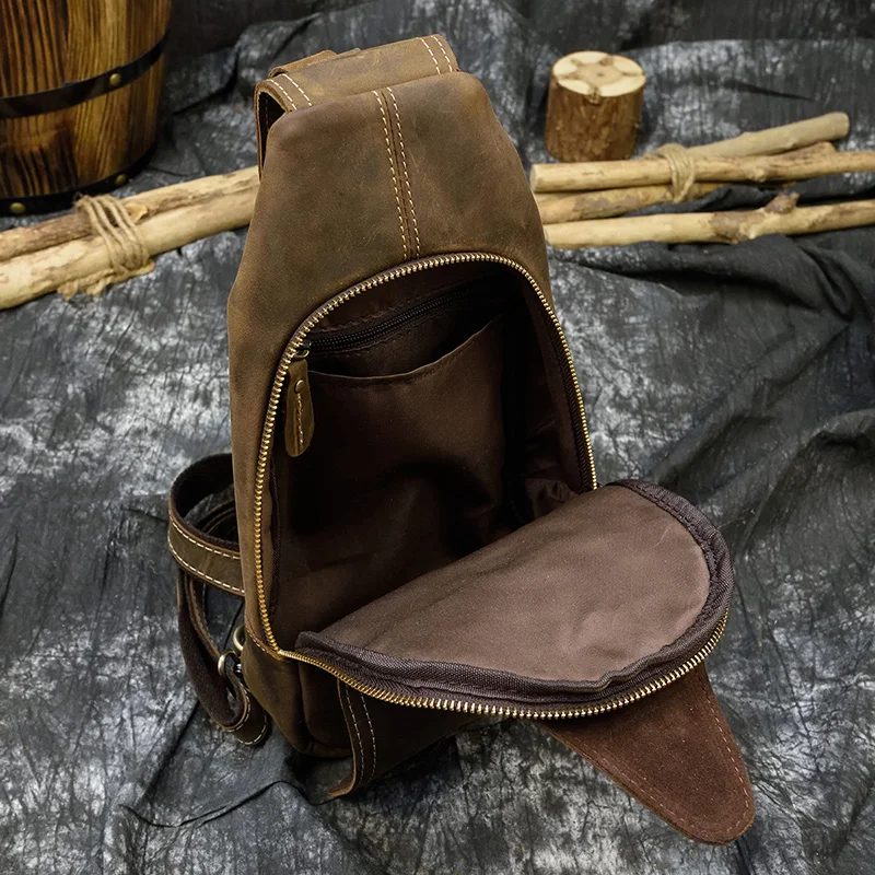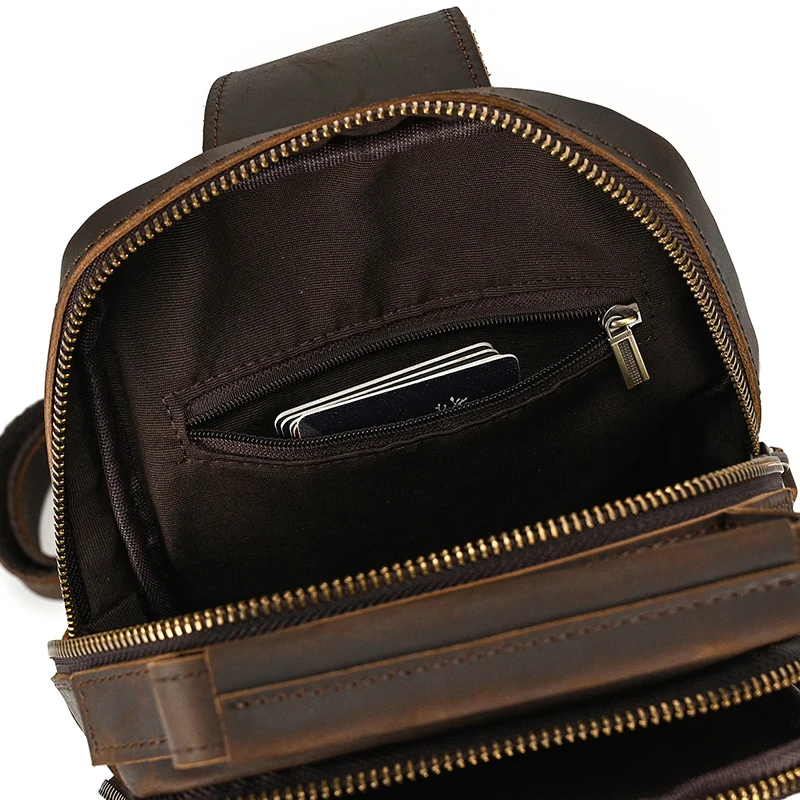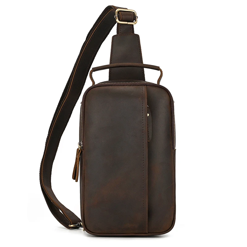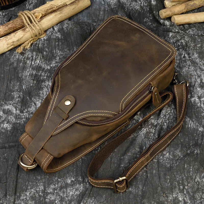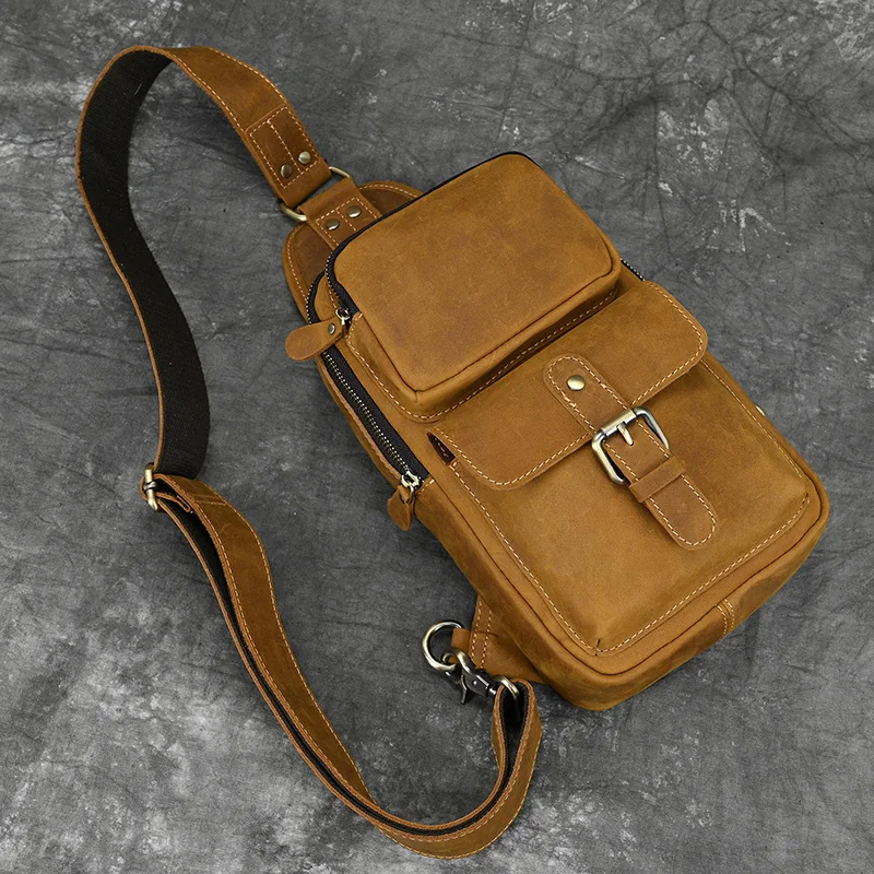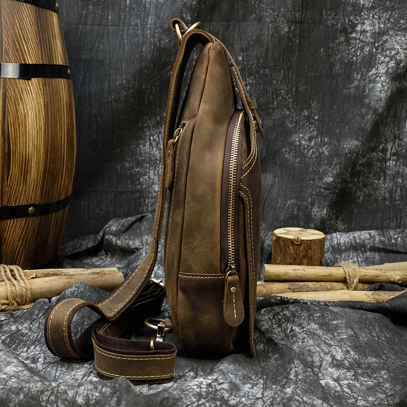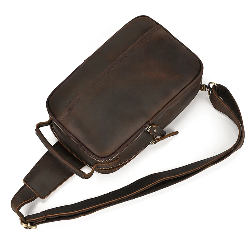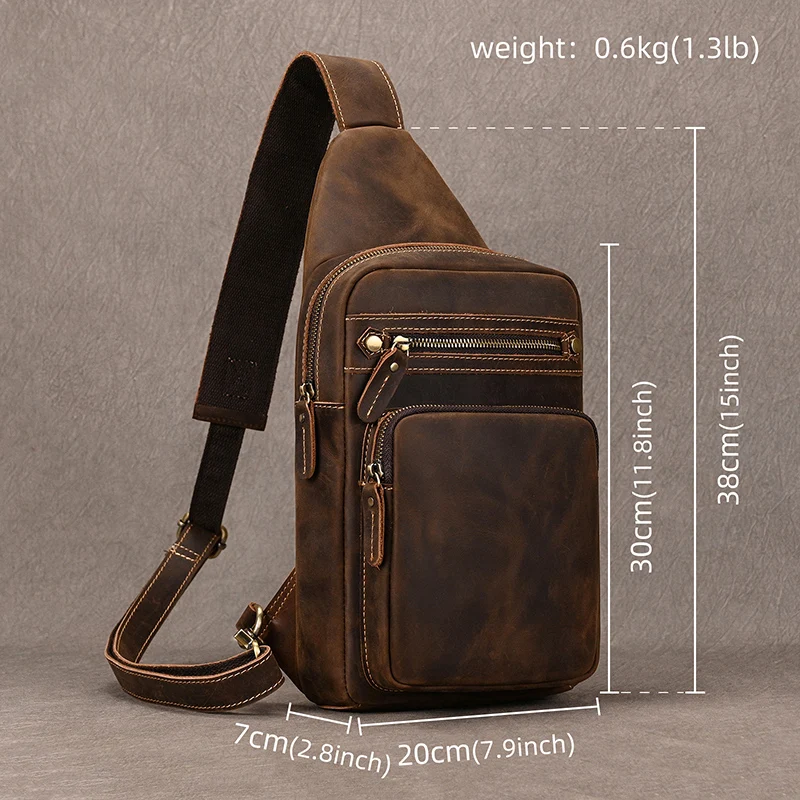Newsbirds High Quality Big Chest Bag Real Cowhide Leather Chest Bags Crazy Horse Leather Men's Sling Bag Chest Pack For Man Male