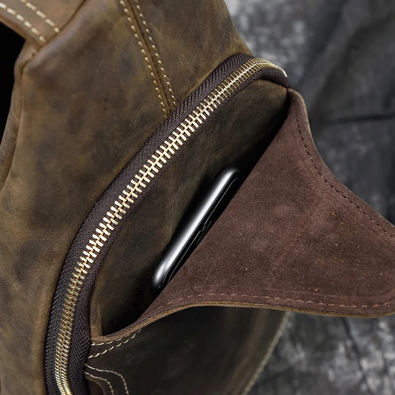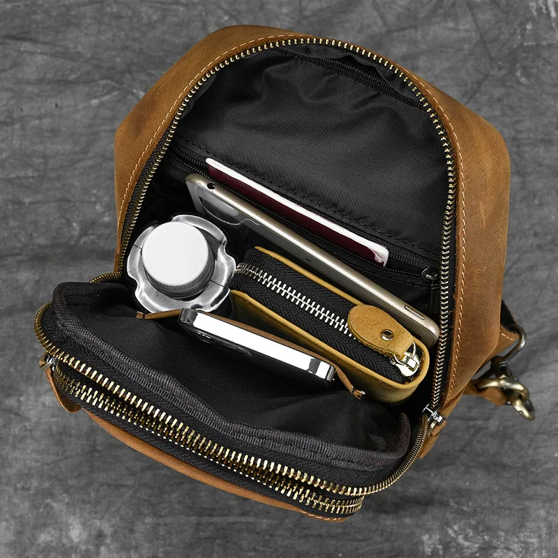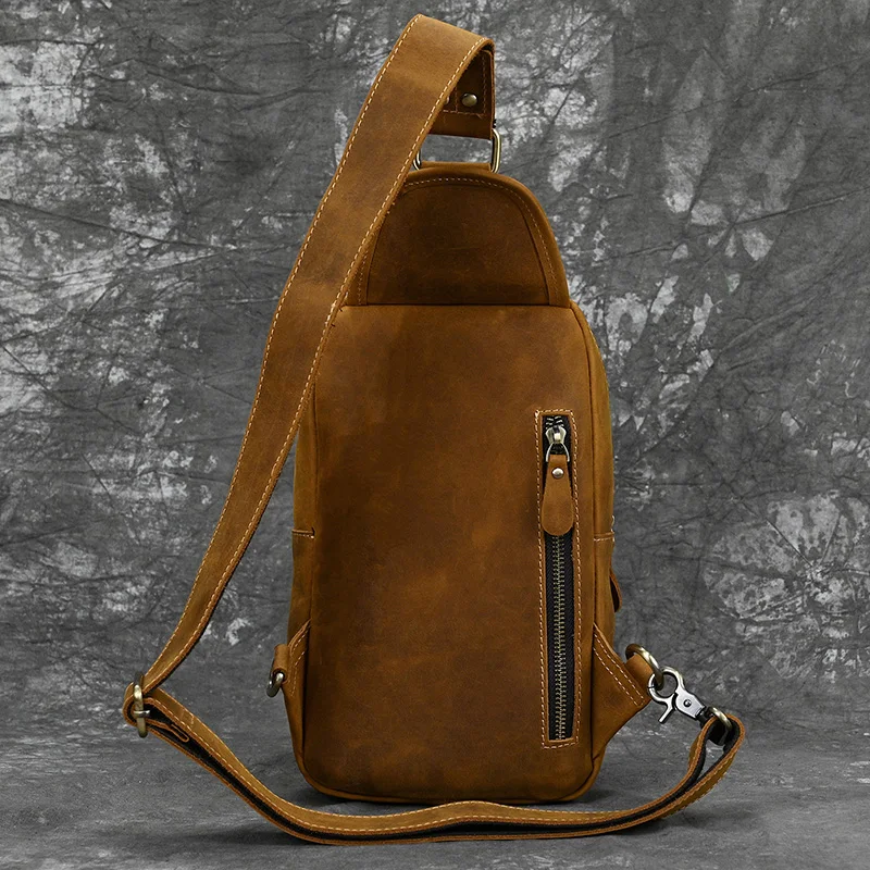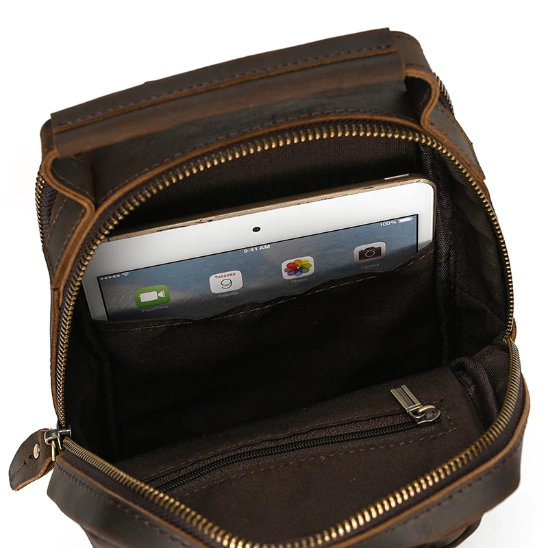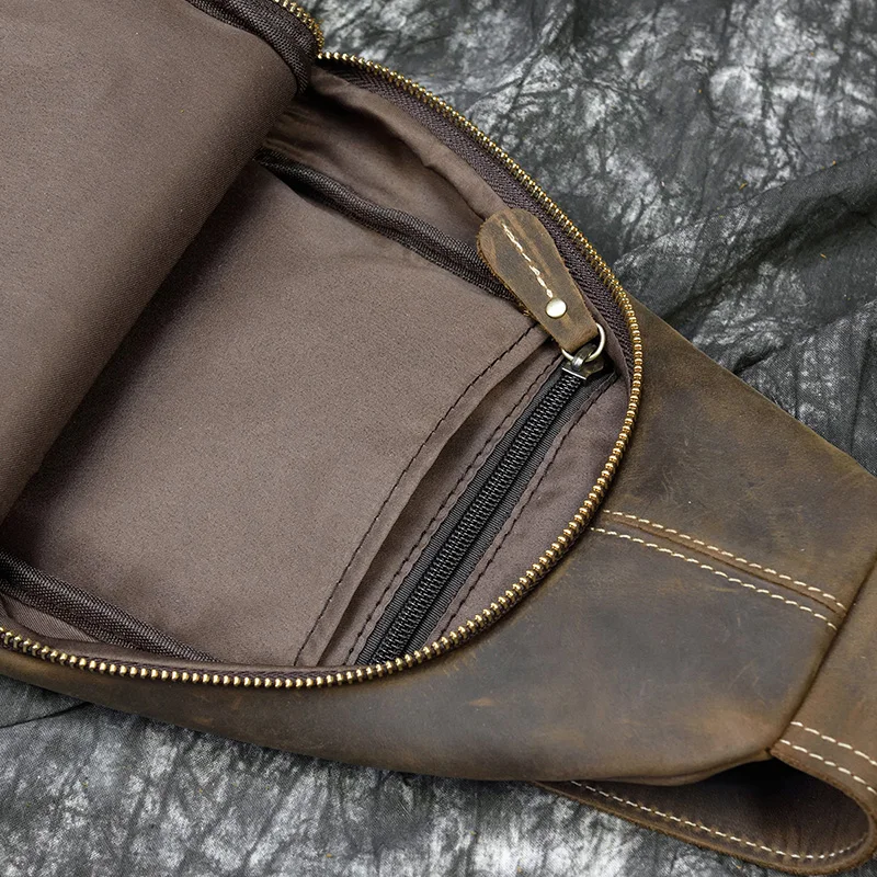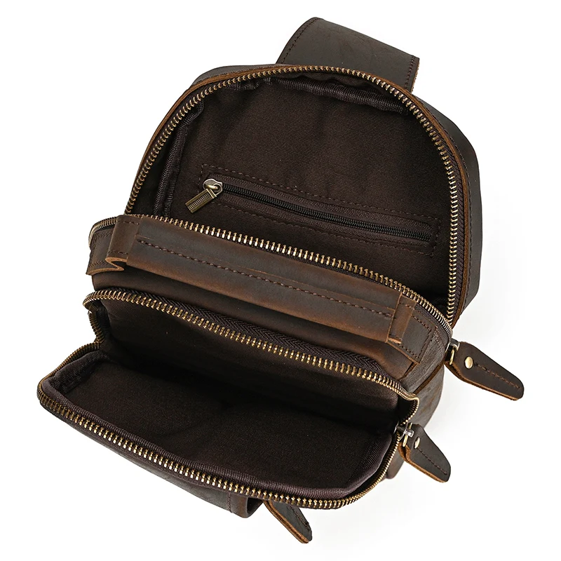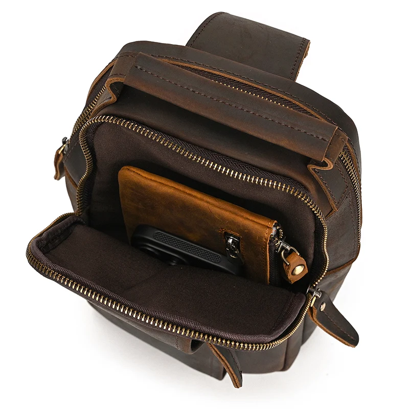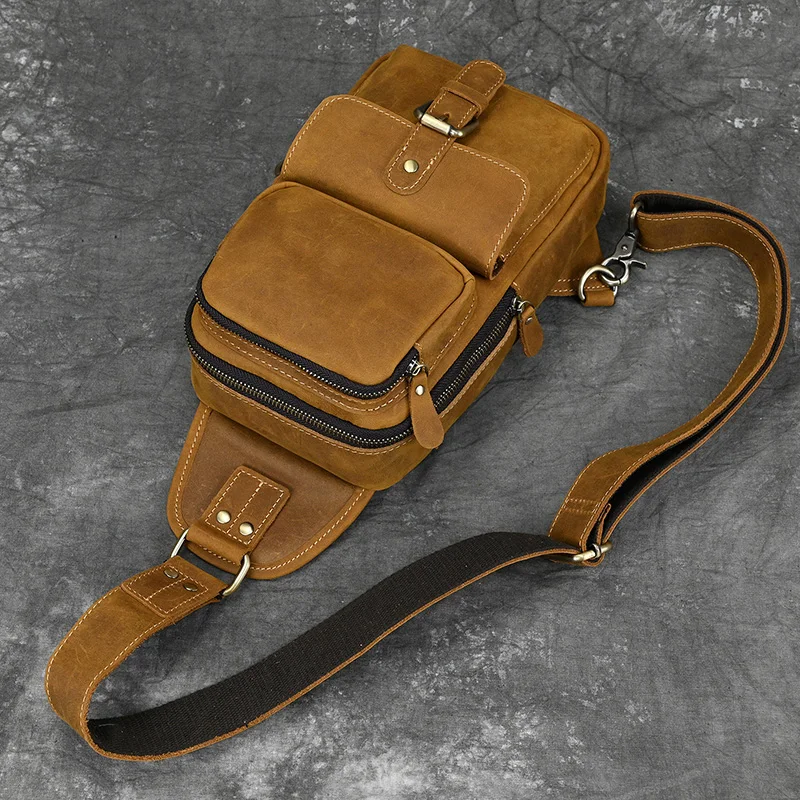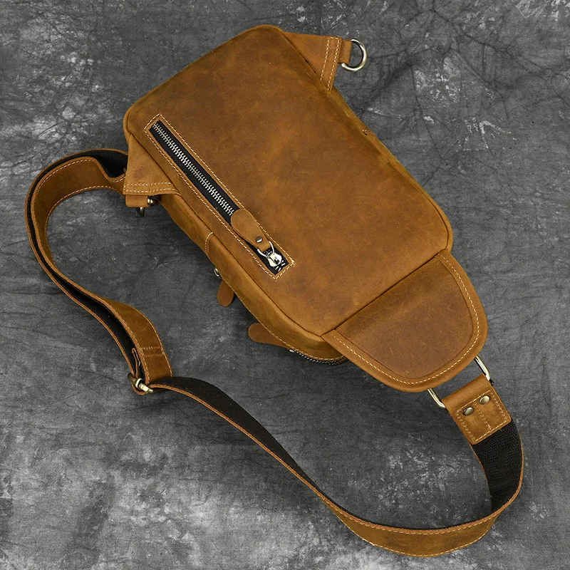 Newsbirds High Quality Big Chest Bag Real Cowhide Leather Chest Bags Crazy Horse Leather Men's Sling Bag Chest Pack For Man Male