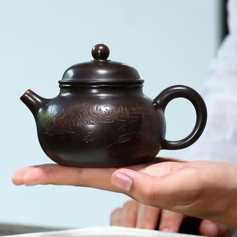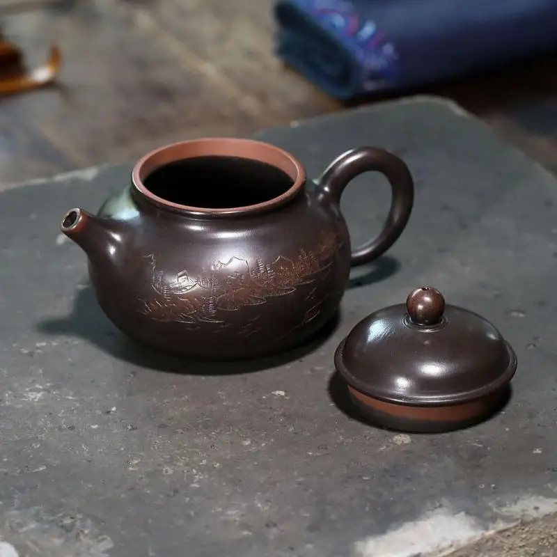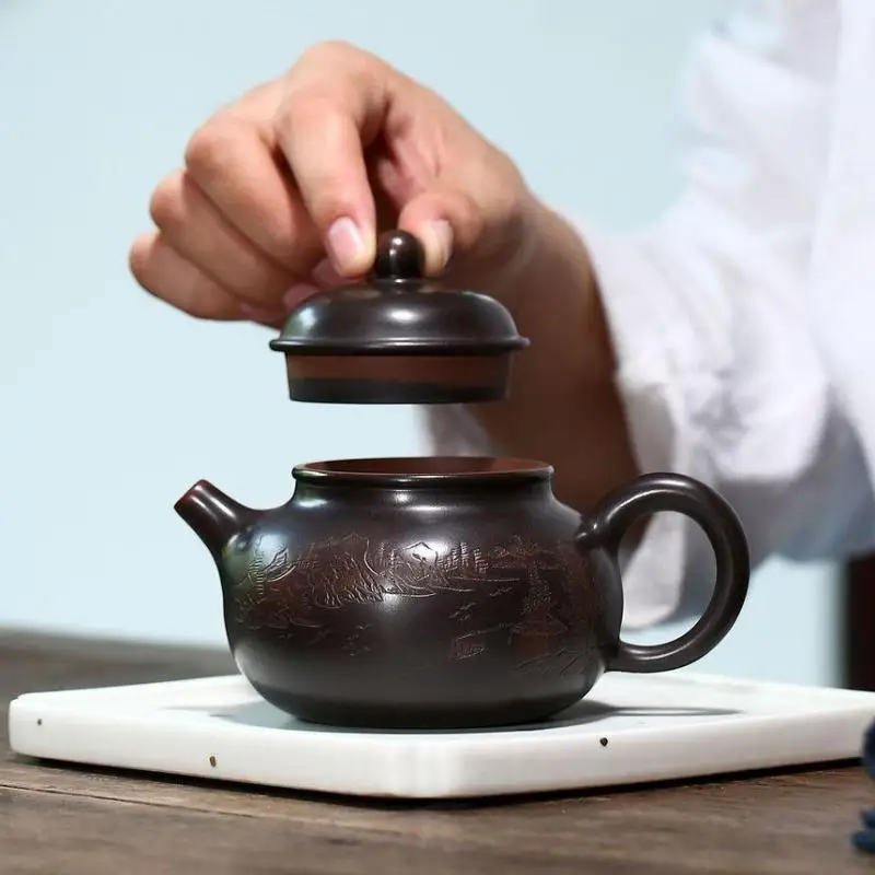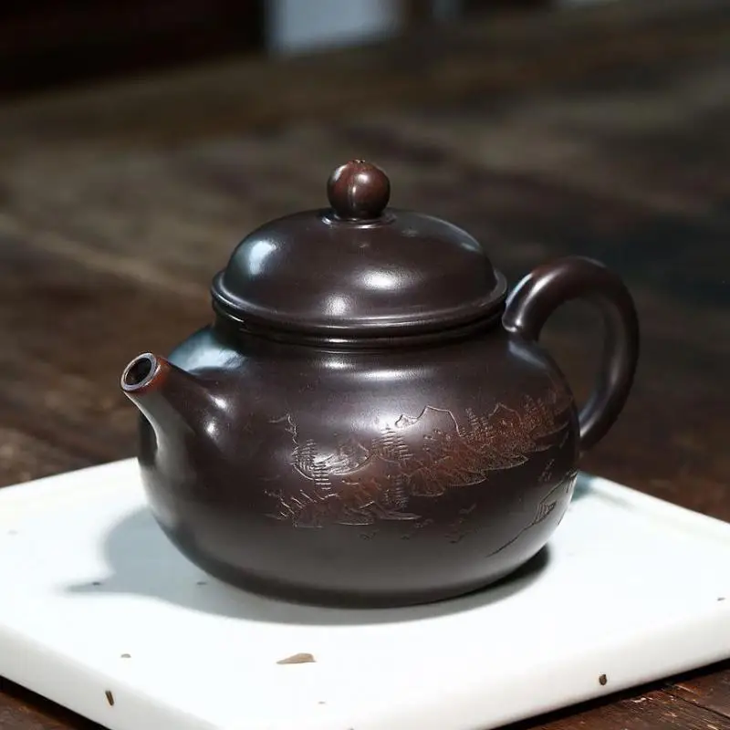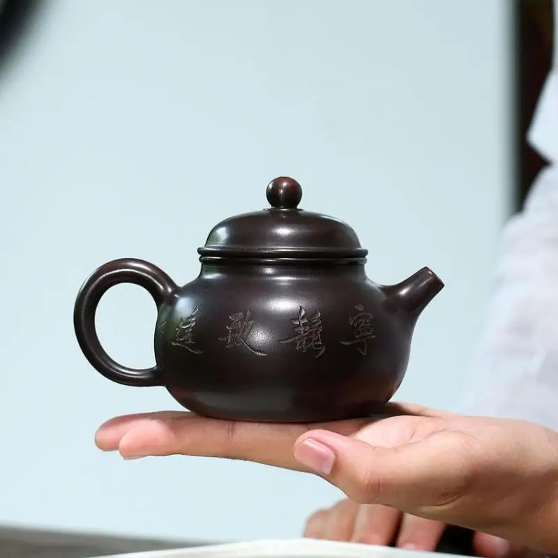 Nixing Taorong Tianhu Zisha Teapot, Yixing Handmade Pot, Kung-Fu Teaware, Purple Clay Drinkware for Puer Black Chinese Tea
