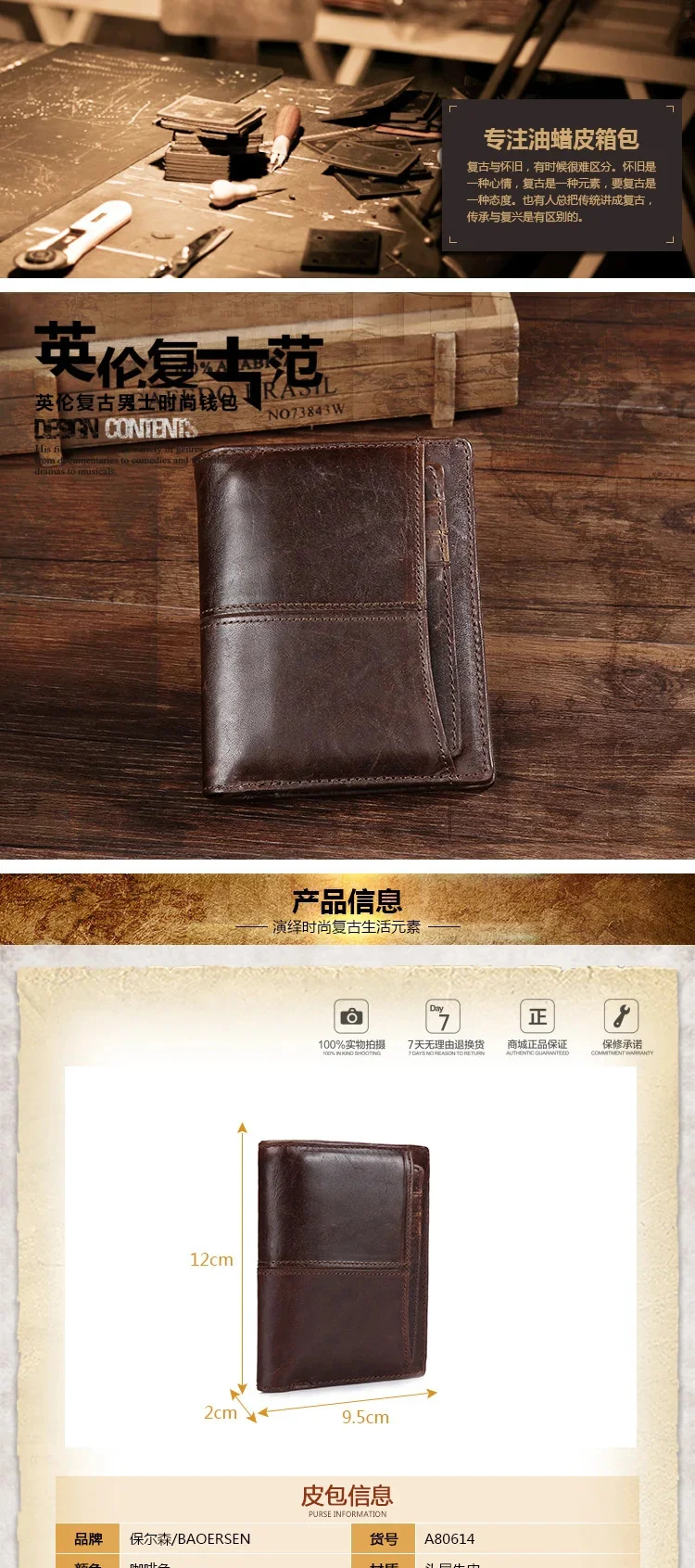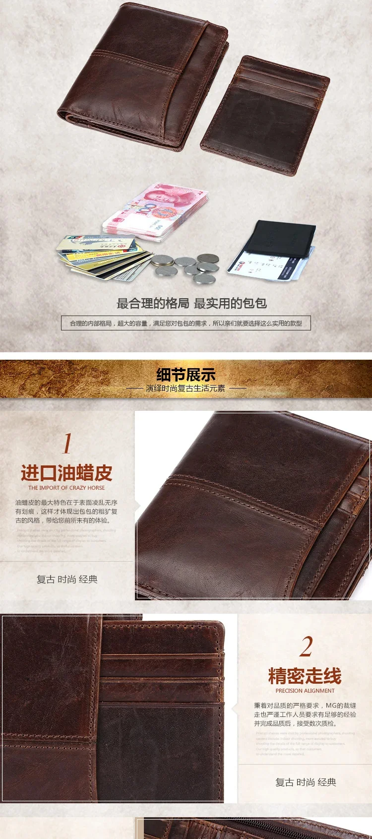 Color : Coffee, Black, Brwon, Yellow, Deep Coffee(only black, coffee and brown color are made of oil wax cowhide, other colors are made of crazy horse cowhide);