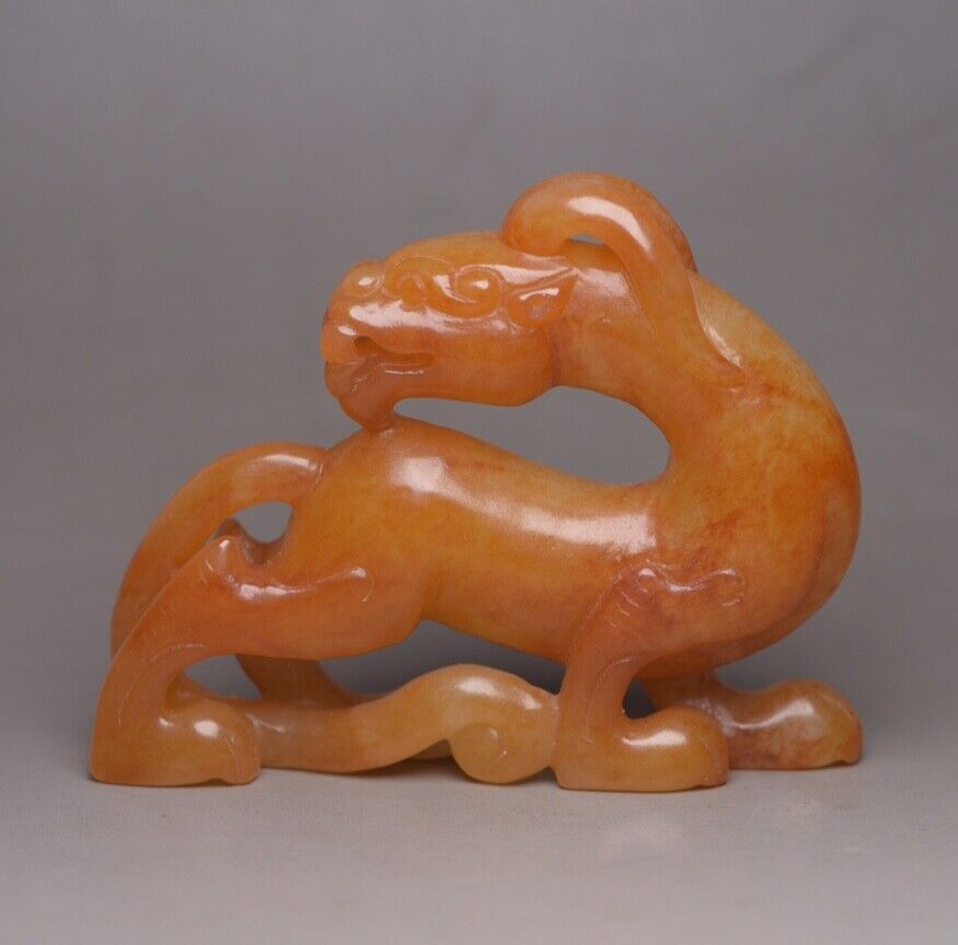 Old Chinese Natural Hetian Jade Carving Exquisite Beast Statues Animal Figurine Size:(2.87x2.20x0.66) "inch = (7.3×5.6×1.7) cm Weight:(80)g
