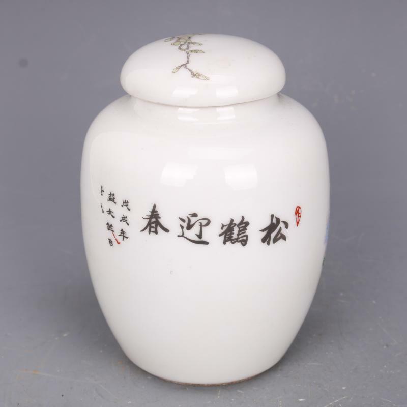 Old Chinese porcelain color Hand Painted Flower bird jar pots Tea caddy 84102