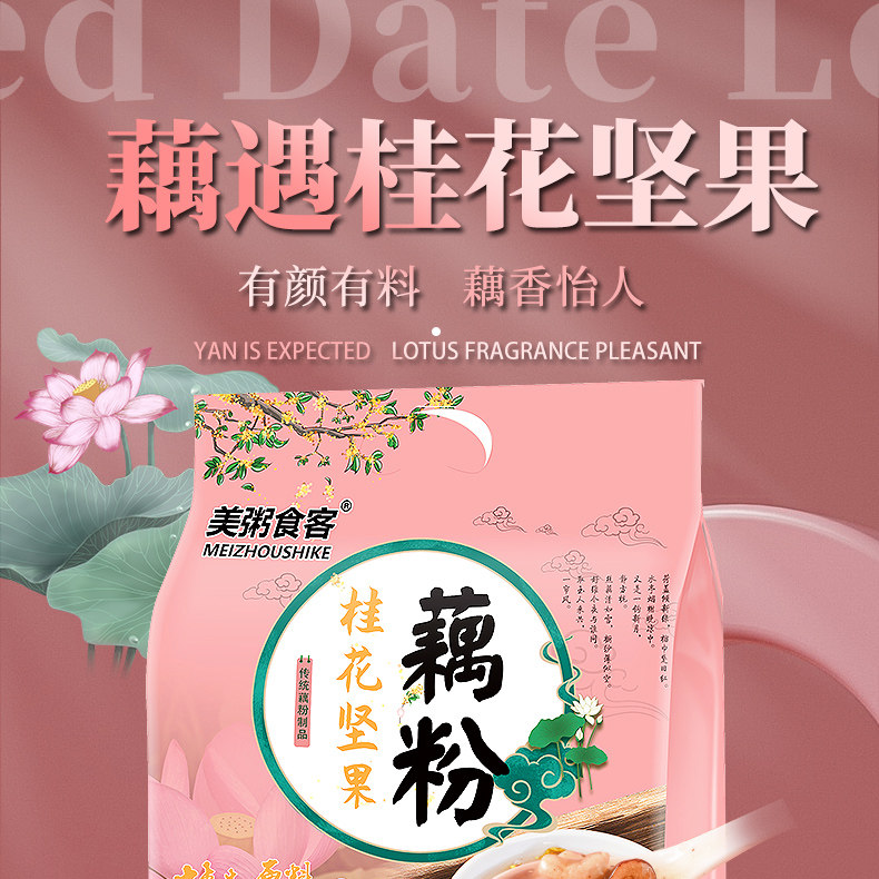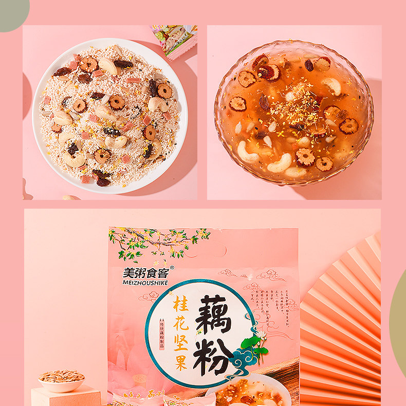 Osmanthus Fruit and Nut Lotus Root Starch Soup,Instant Brewed Meal Porridge 500g