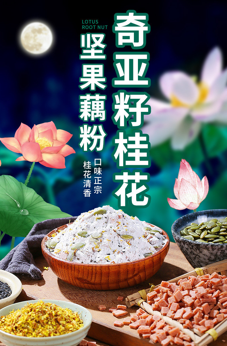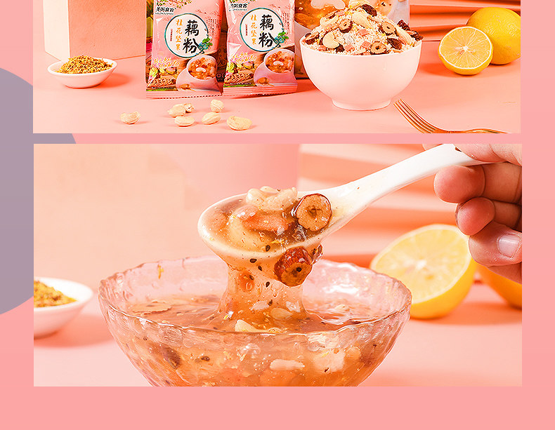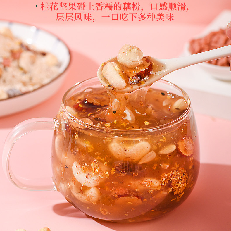 Osmanthus fruit, nut and lotus root starch soup, fruit meal replacement breakfast, brewed nuts and lotus root starch soup, instant brew, satiety, meal replacement porridge, nutritious and healthy breakfast