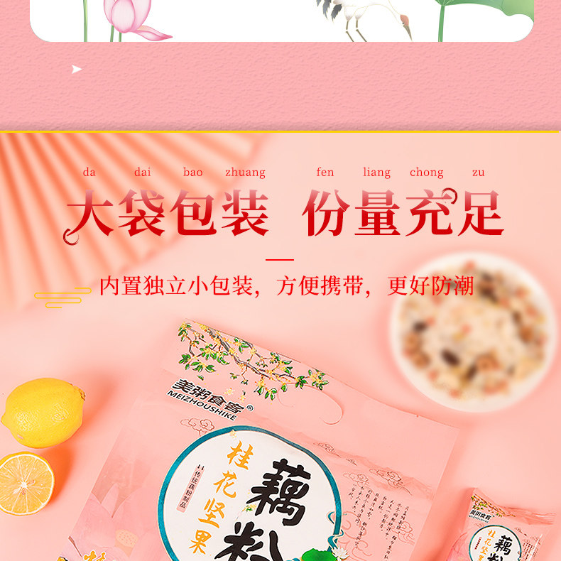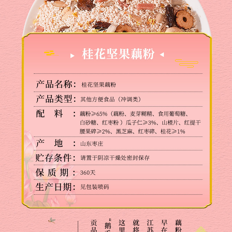 Packing specification: sweet-scented osmanthus fruit and nut lotus root starch soup 500g/can.