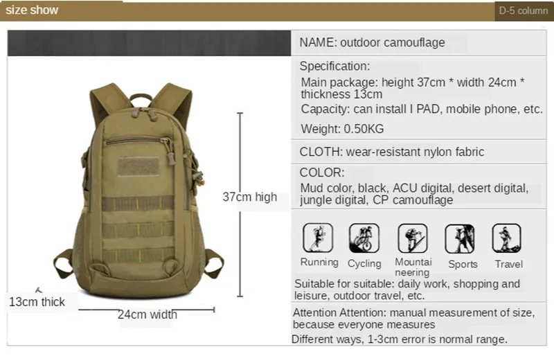 Outdoor Backpack Rucksacks Men Sport Travel Backpacks Camping Hunting Bags