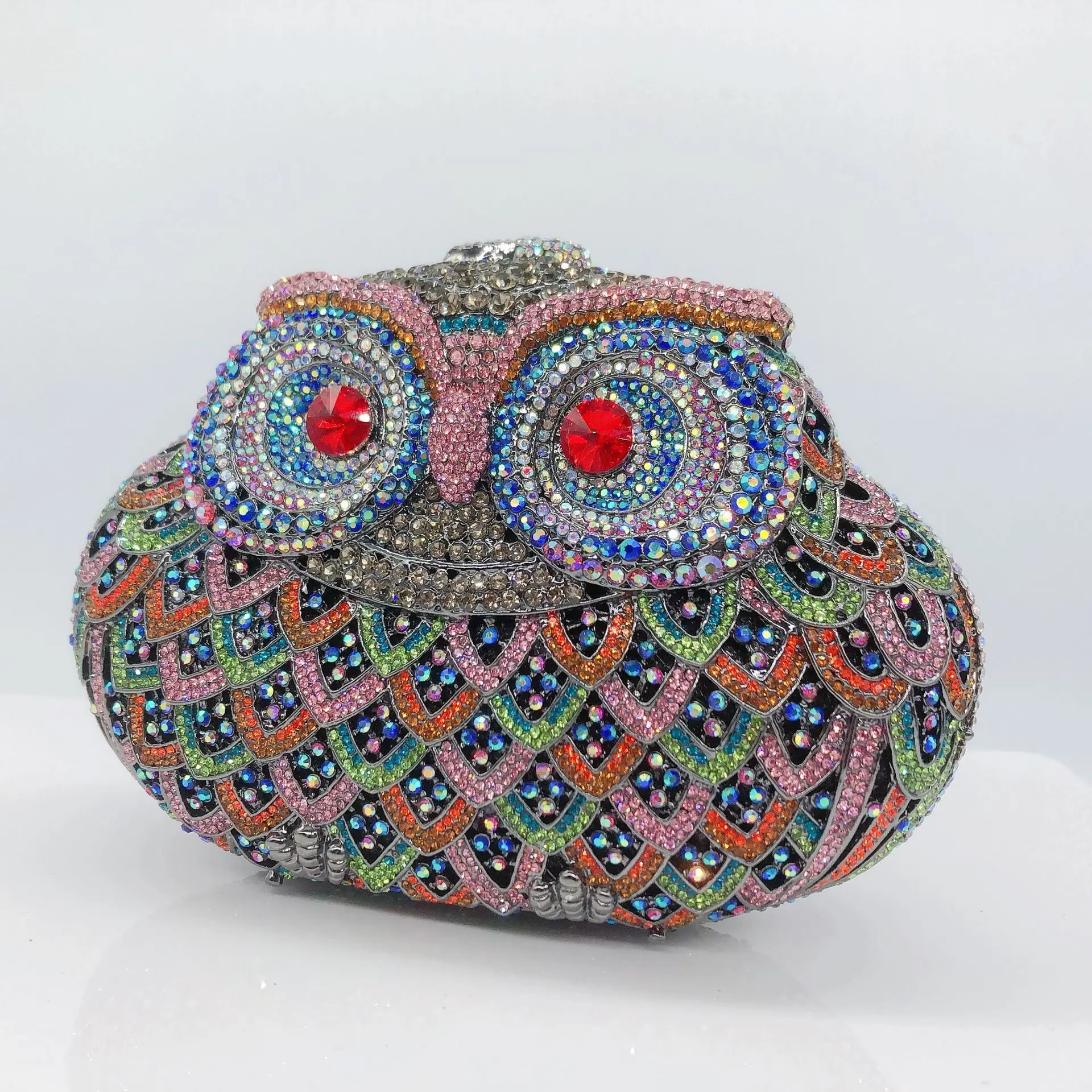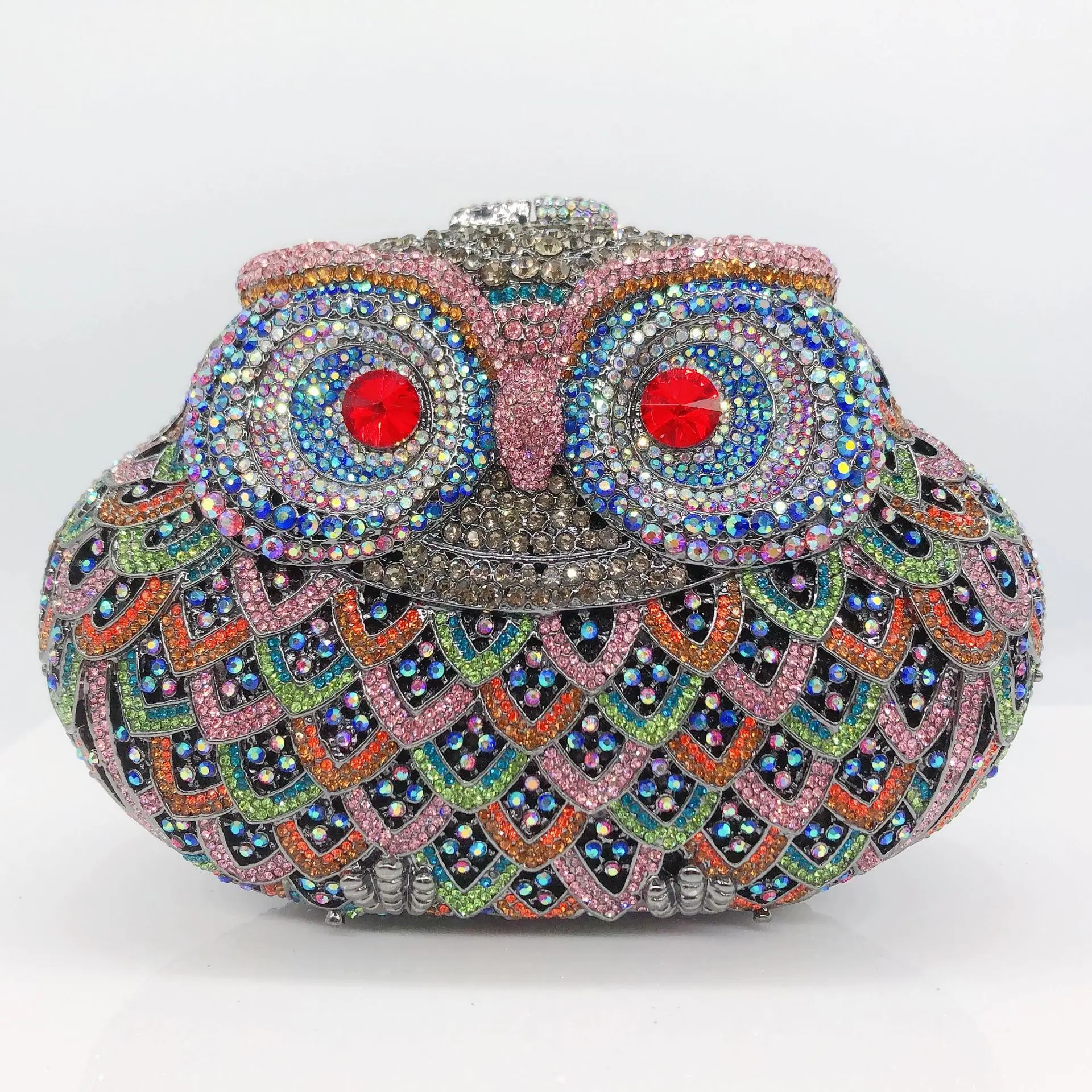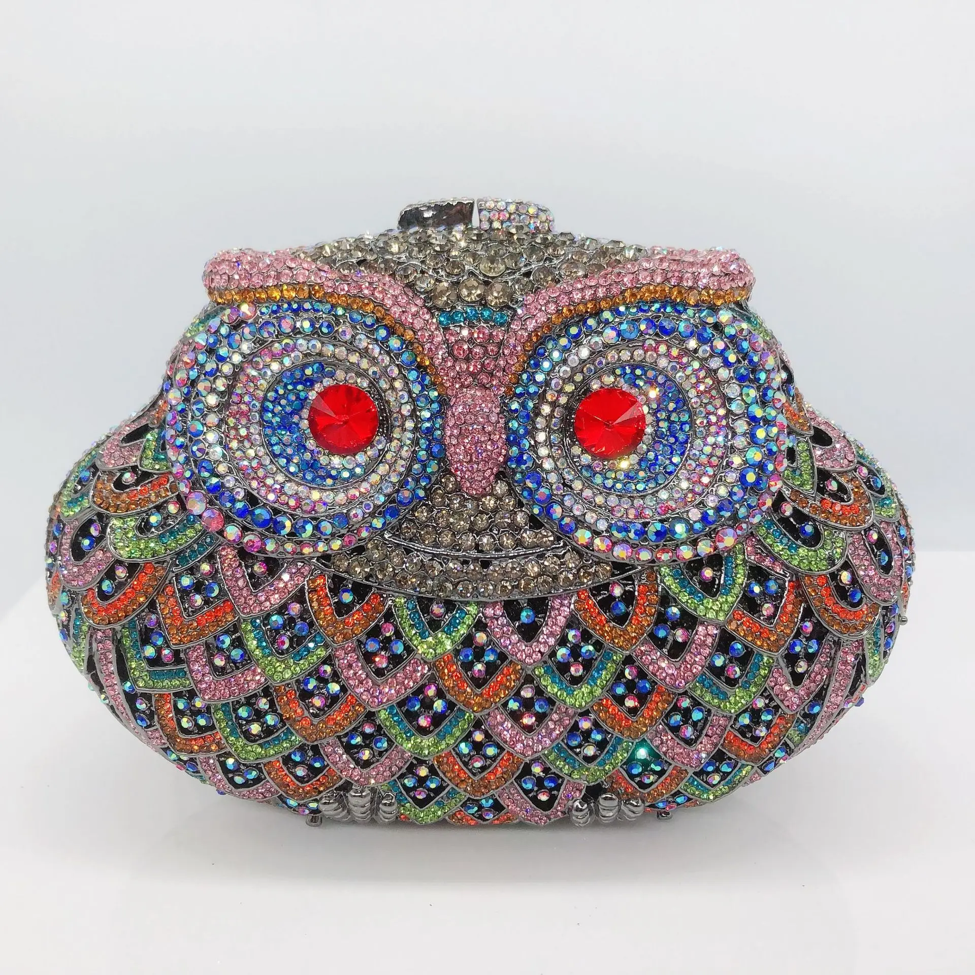 Owl Diamond Luxury Evening Purse For Women Boutique Novelty Crystal Metallic Clutch Bags Party Wedding Ladies Chain Handbag Chic