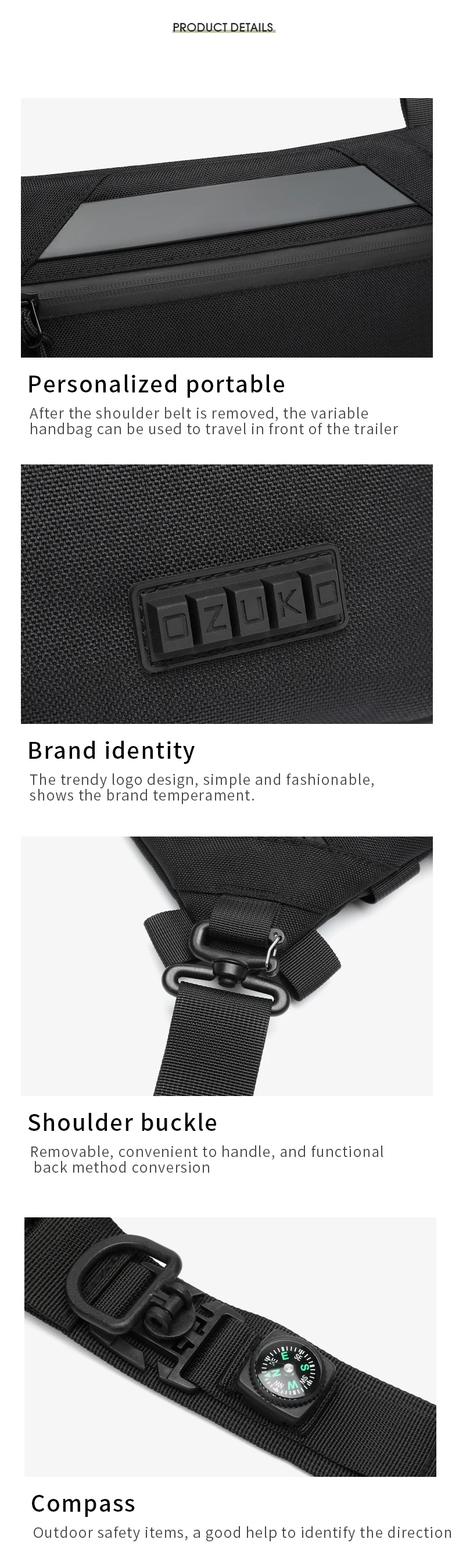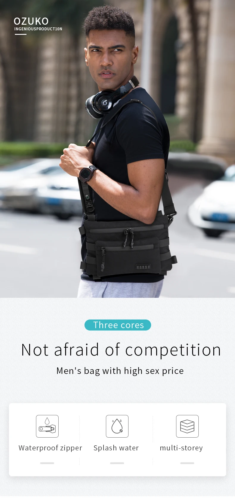 OZUKO New Men Fashion Crossbody Bag Outdoor Sports Sling Shoulder Bags Waterproof Travel Messenger Bag Man Light Weight Handbag