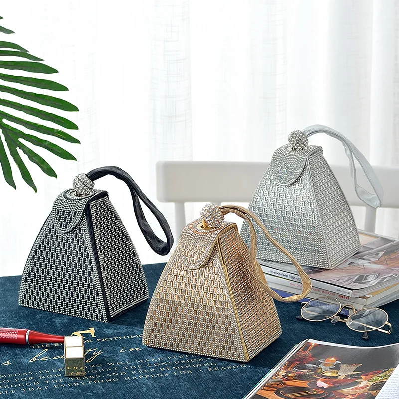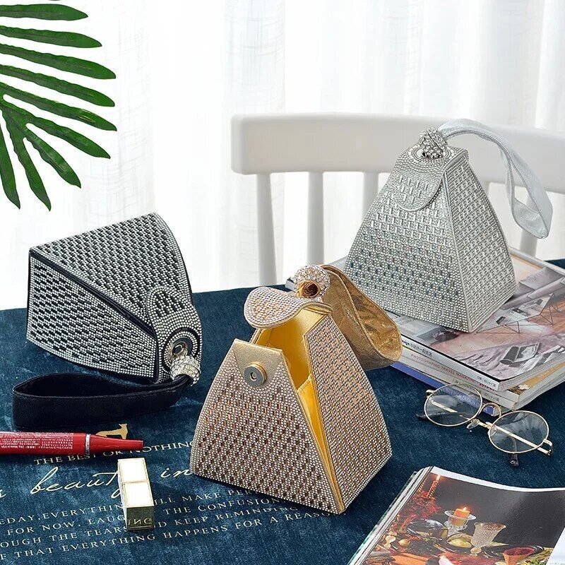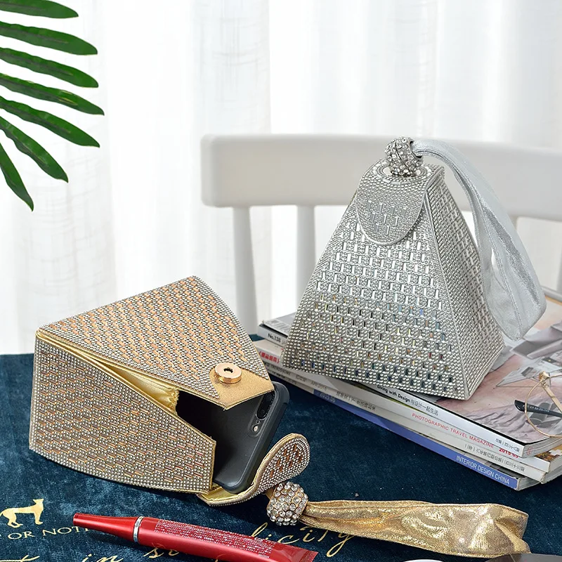 2021 Summer Diamond Clutch Bag Ladies Luxury Party Evening Bag Fashion Triangle Wedding Bridal Bag Mini Mobile Coin Purse