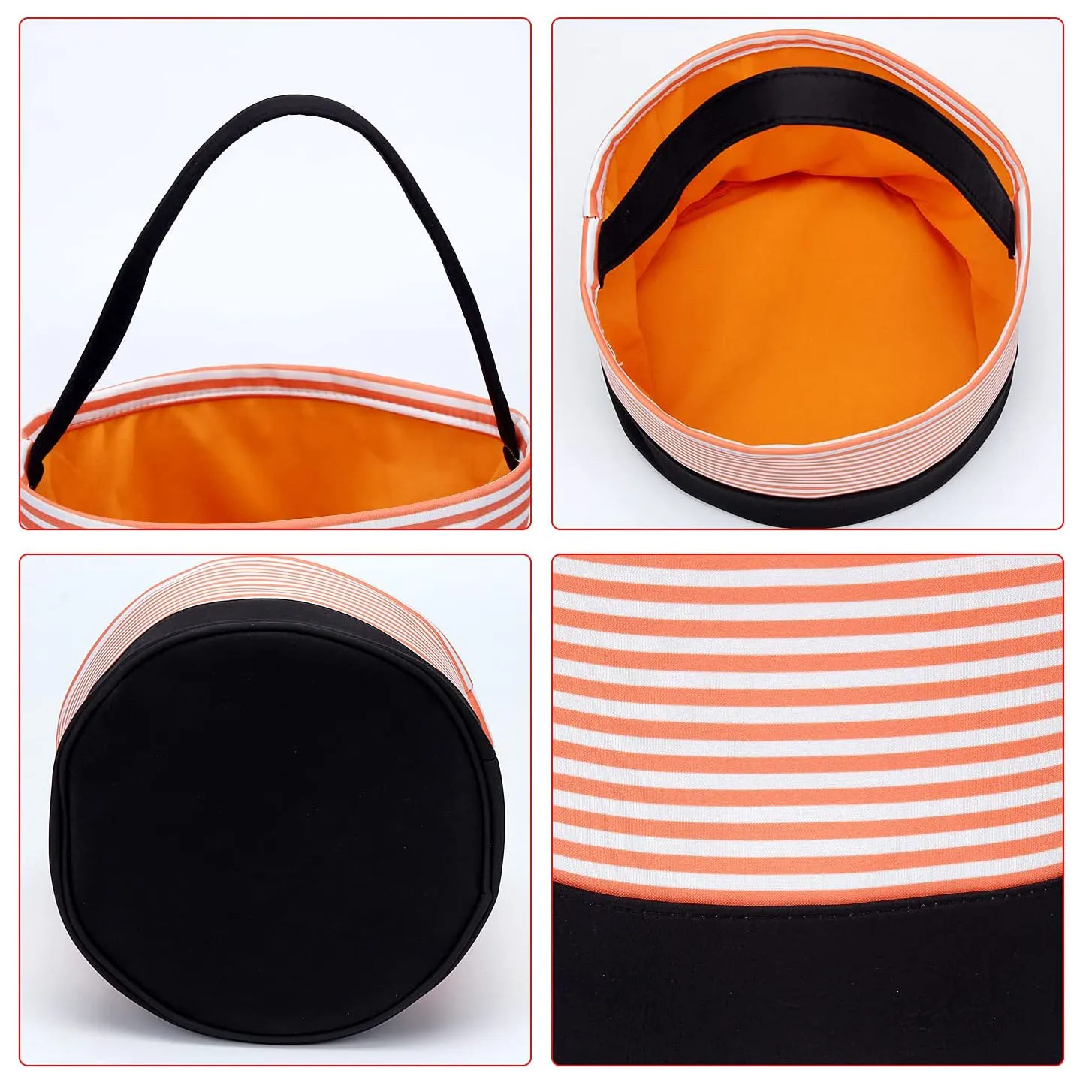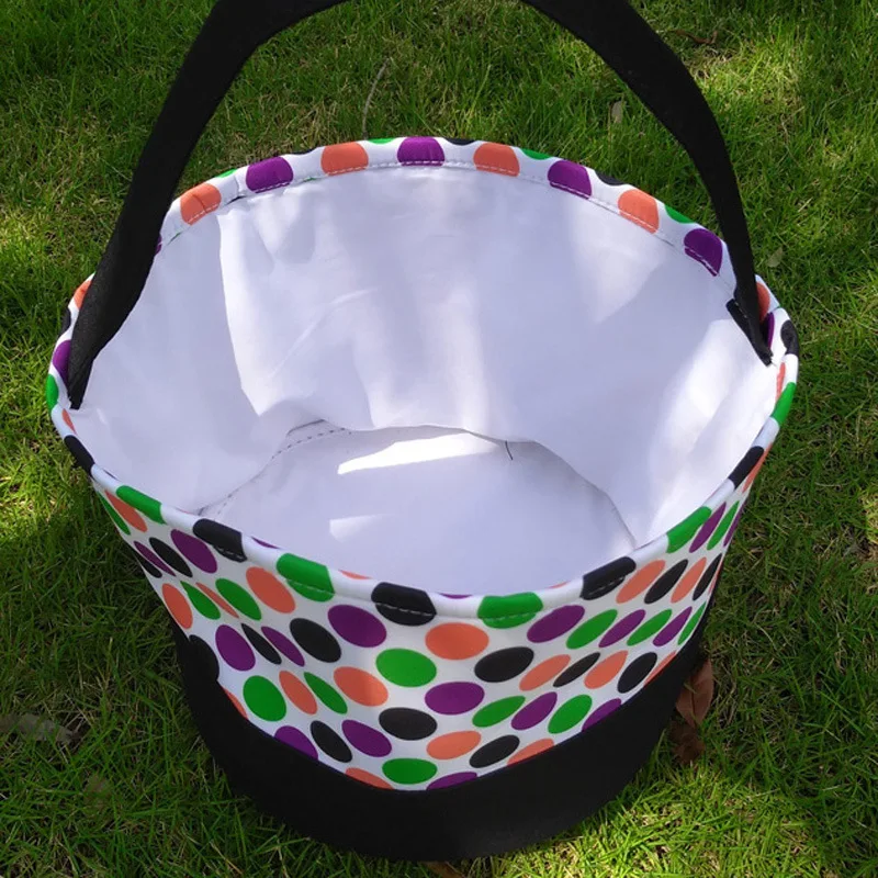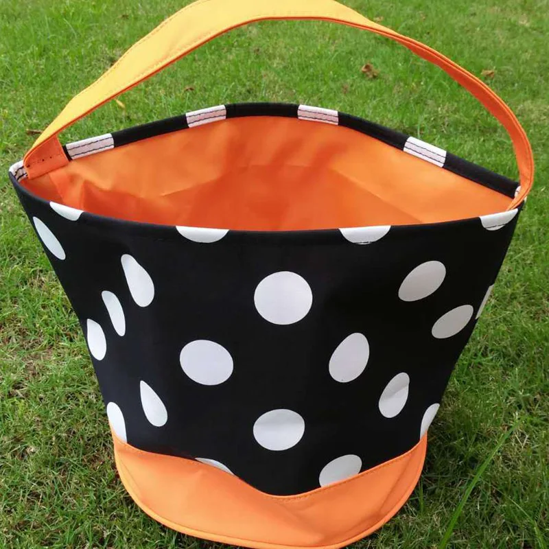 • 3.Durable material: This halloween trick or treat bag is made of polyester material, lightweight yet durable, strong enough to hold various items like candies, chocolates, festival gifts and more, it can provide long-time service.Size is 6.75" Tall x 9"Diameter.