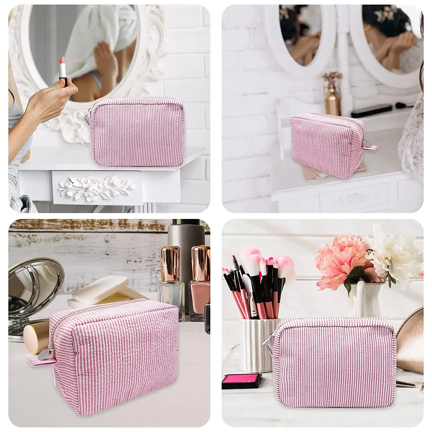 Perfect for women. When you go out for travel, party, camping, beach, gym, etc., you need a bag to hold your cosmetics so that you can keep your makeup charming all the time.