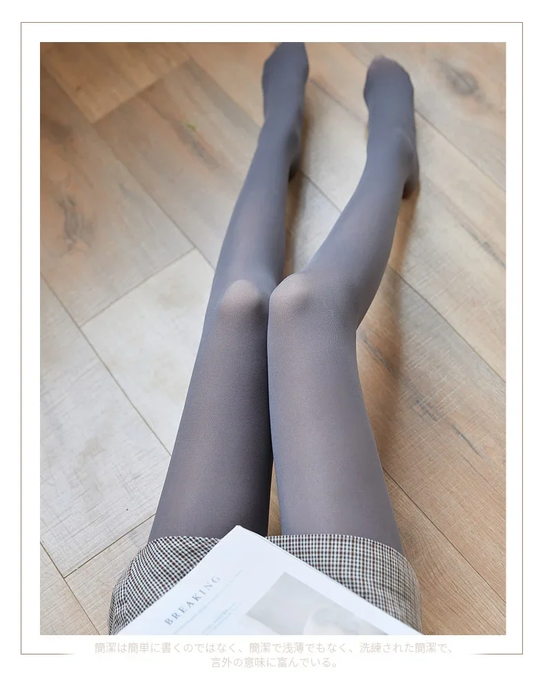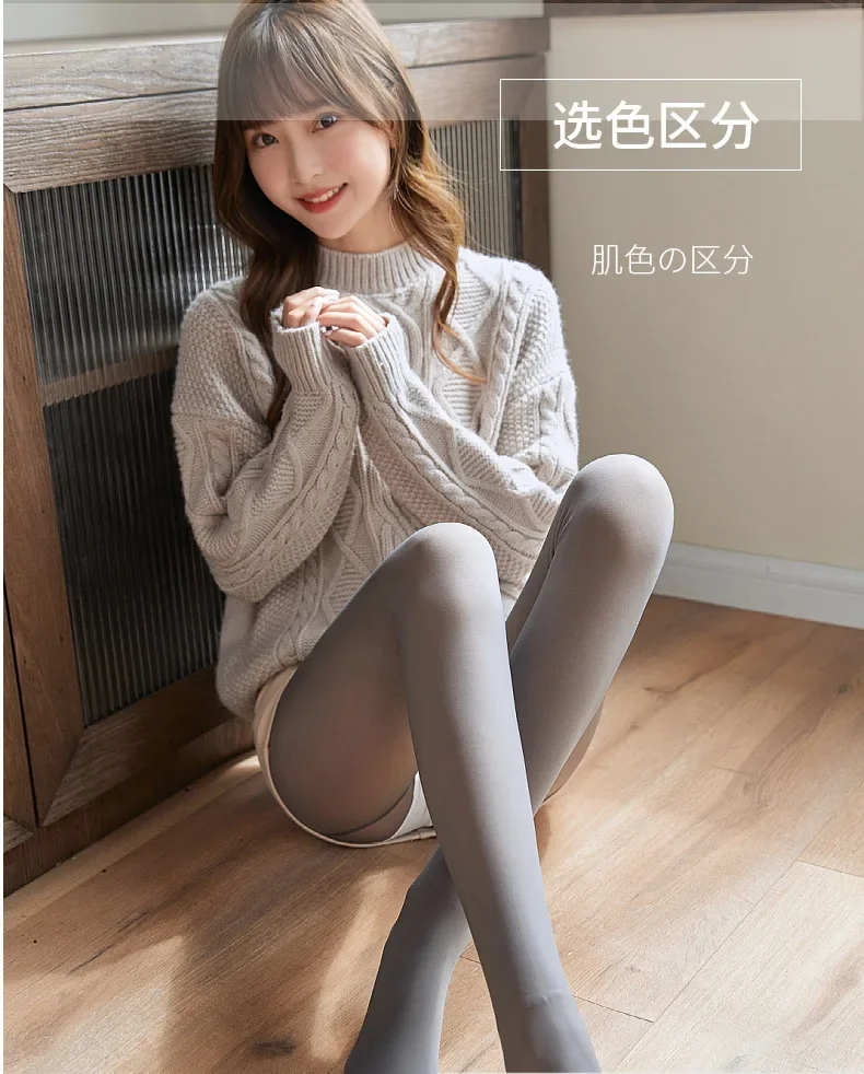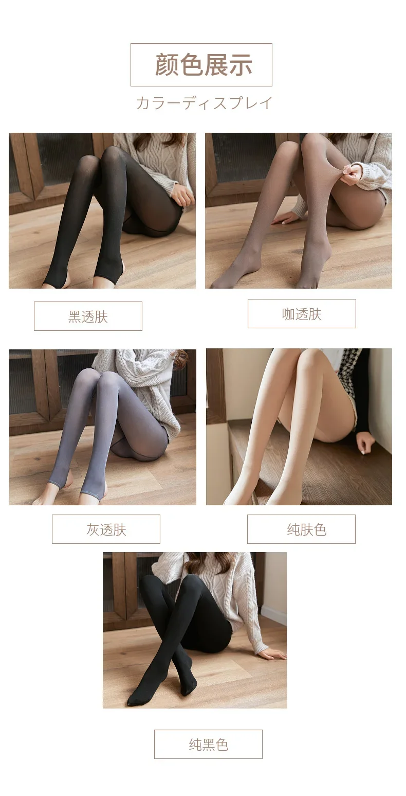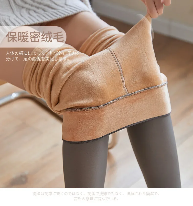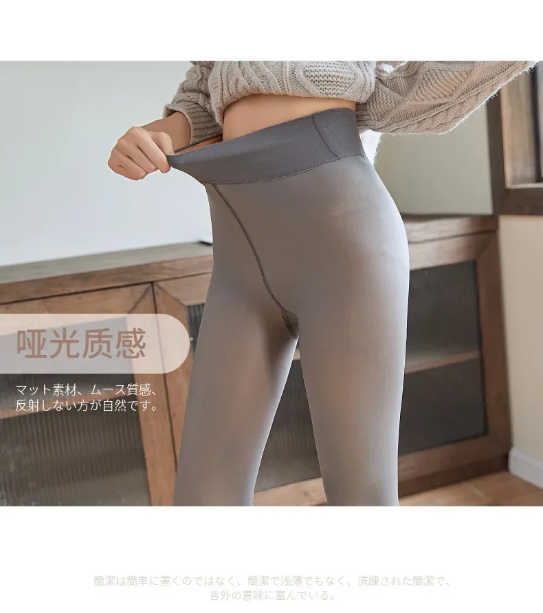 Plus Size Lined Tights Flawless Fake Translucent Warm Plush Elastic Winter Pantyhose Wool Pants Stocking Fleece Thermal Legging