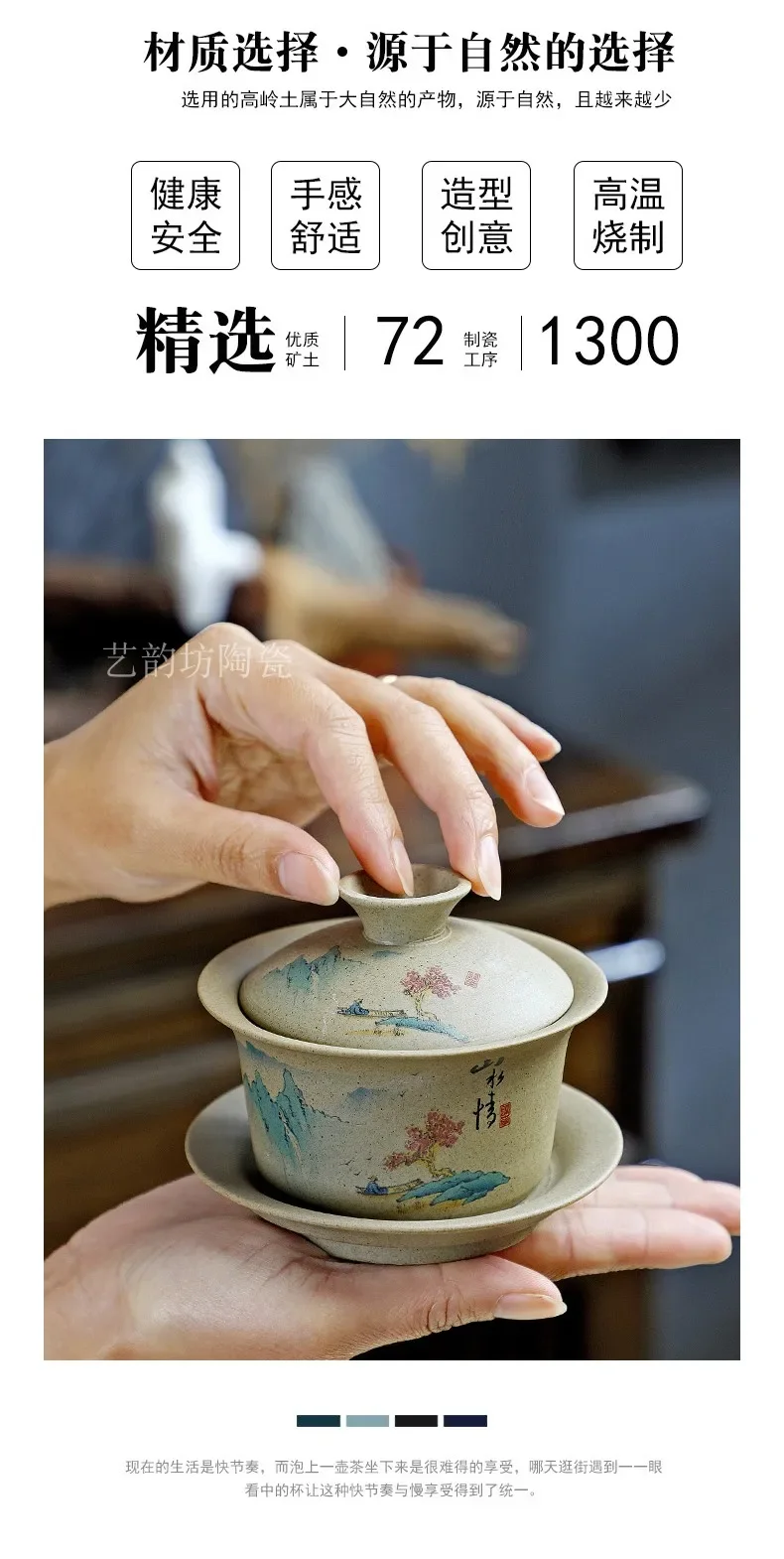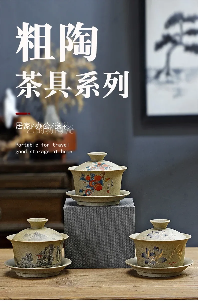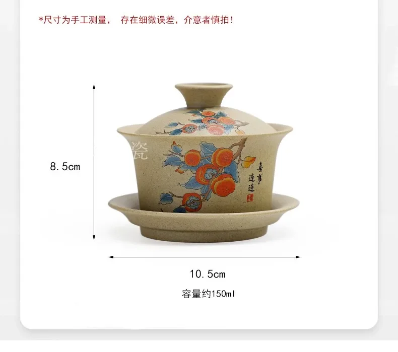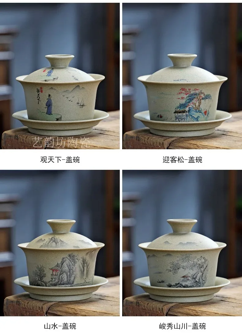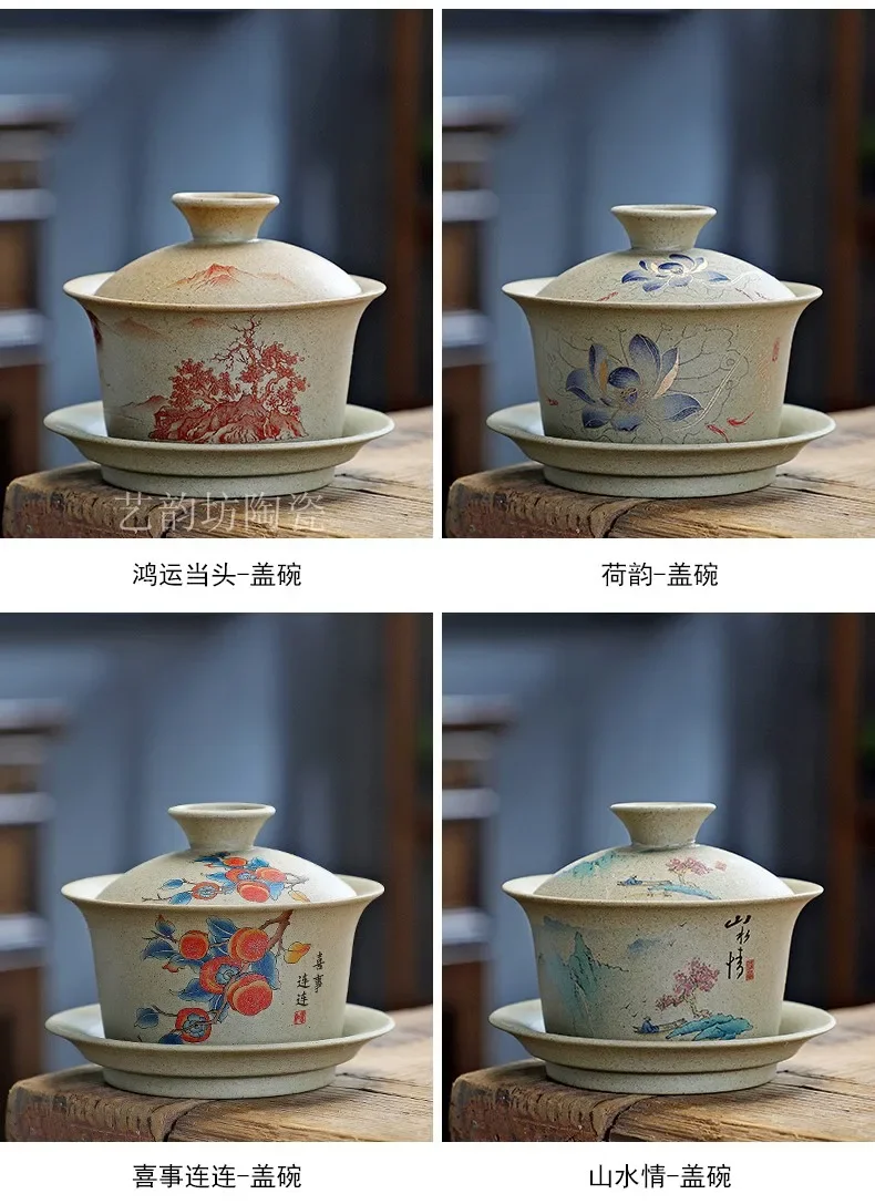 Pottery Sancai Gaiwan Chinese Purple Clay Teacups Handpainted Kung Fu Teaware Tea Bowls Ceramic Tea Tureen Set Tea Cups