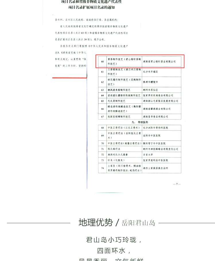 Jun Shan Huang Cha tea is a yellow tea from Junshan Island of the Hunan Province in China. It is one of Chinese Famous Teas. Junshan yellow tea is only produce using the tea leaves from the tea garden at the Junshan Island, which is located in the middle of Dong Ting Lake of Hunan Province. The best quality Jun Shan tea is called as Jun Shan Yin Zhen. The production of Jun Shan Yin Zhen demands that tea pickers pluck only buds while the golden brick is made with the material picked as one bud and one leaf system.