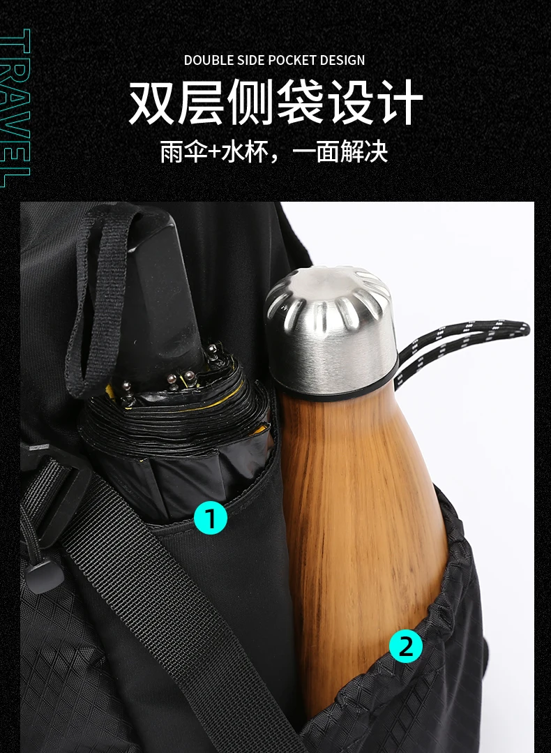 3. Large-capacity adjustable side pockets can hold water cups and umbrellas