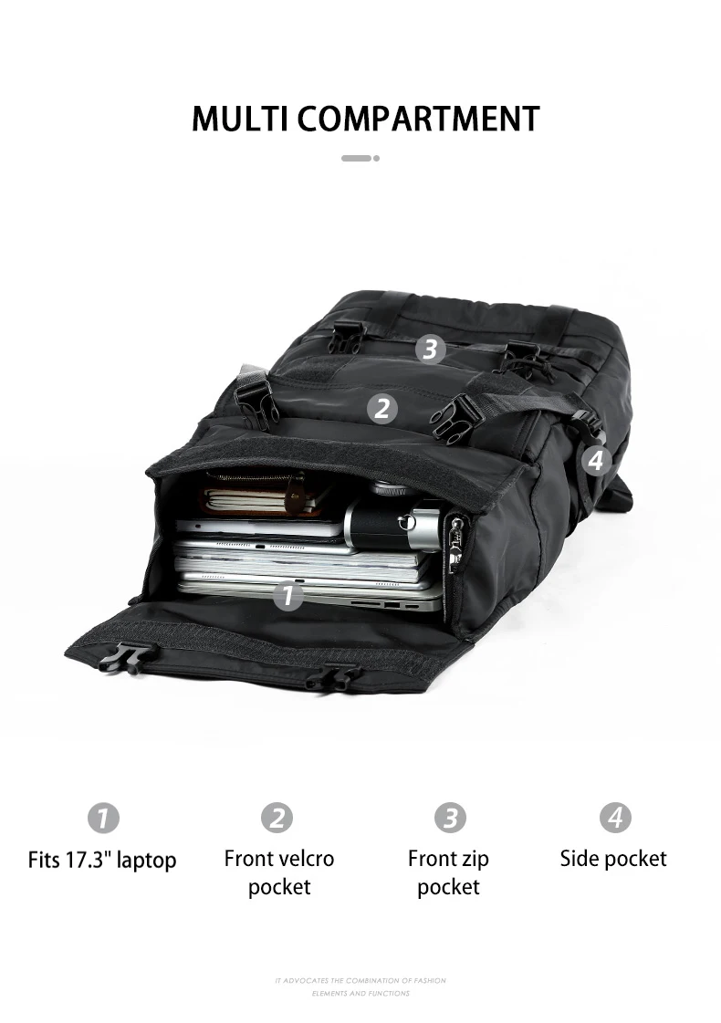 2. Large-capacity main pocket, 15.6-inch computer compartment