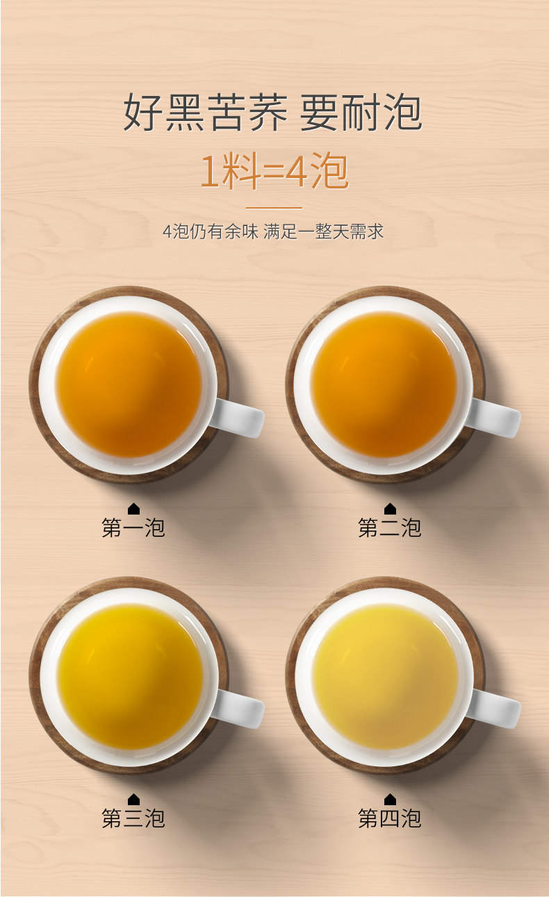 Using more than 2500 meters above sea level, pure natural, non-polluting, non-GMO, black tartary buckwheat as raw materials, through a number of delicate processes. The who le germ roasted buckwheat is rich in nutrients, which is beneficial to digestion and absorption of human body. Yellow bright soup, roasted with special technology, smooth taste, strong baking fragrance, warm and soft.
