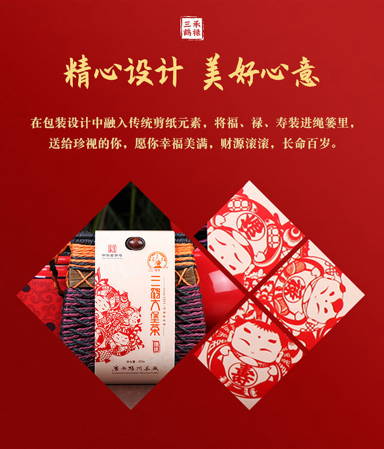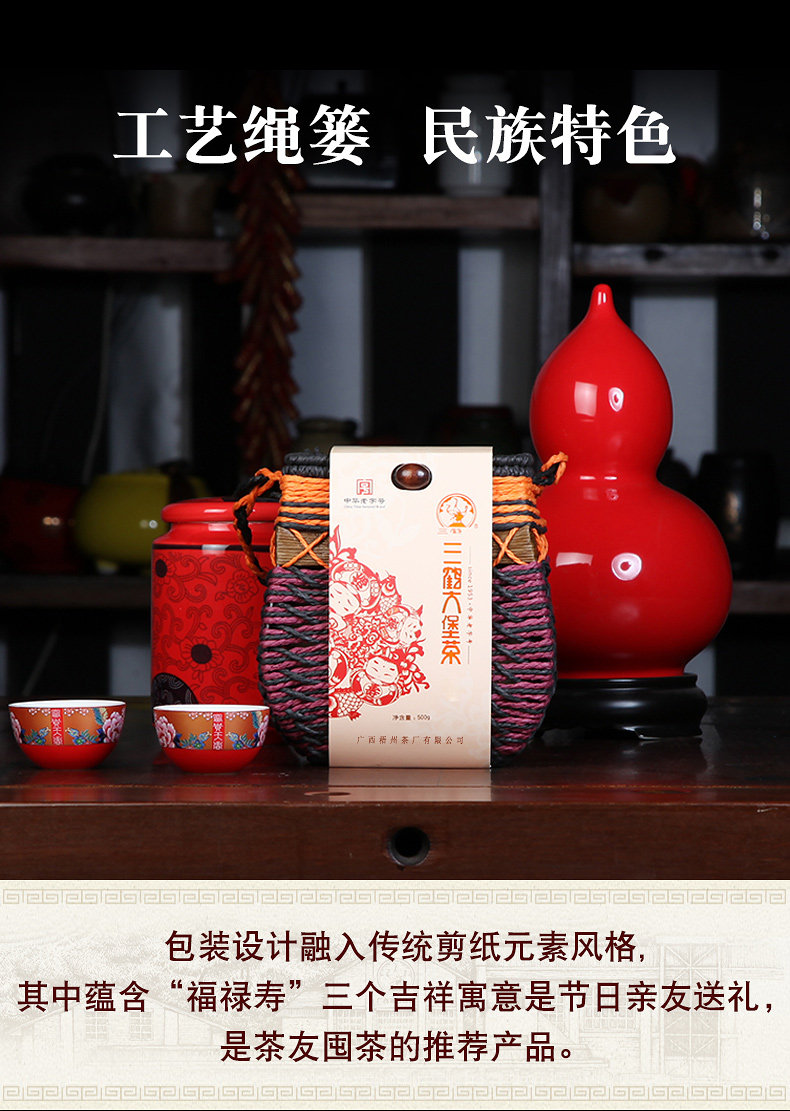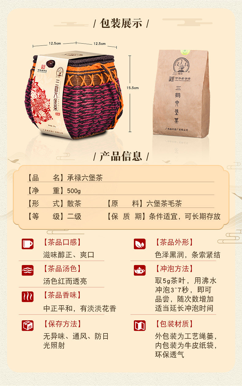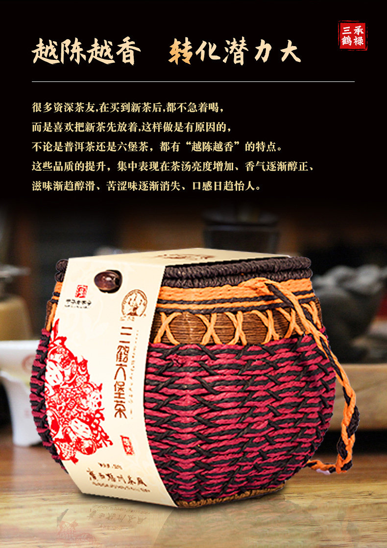 Premium Three Cranes Liu Pao Hei Cha Liu Bao Aged Black Dark Tea Basket 500g