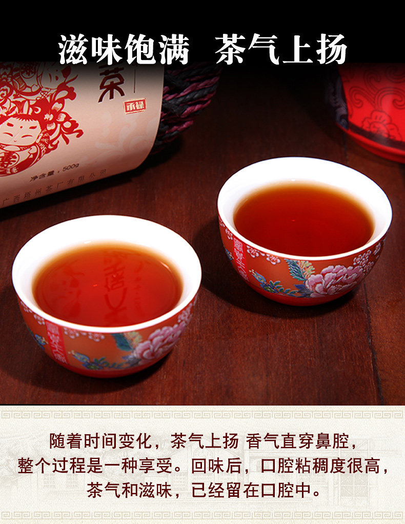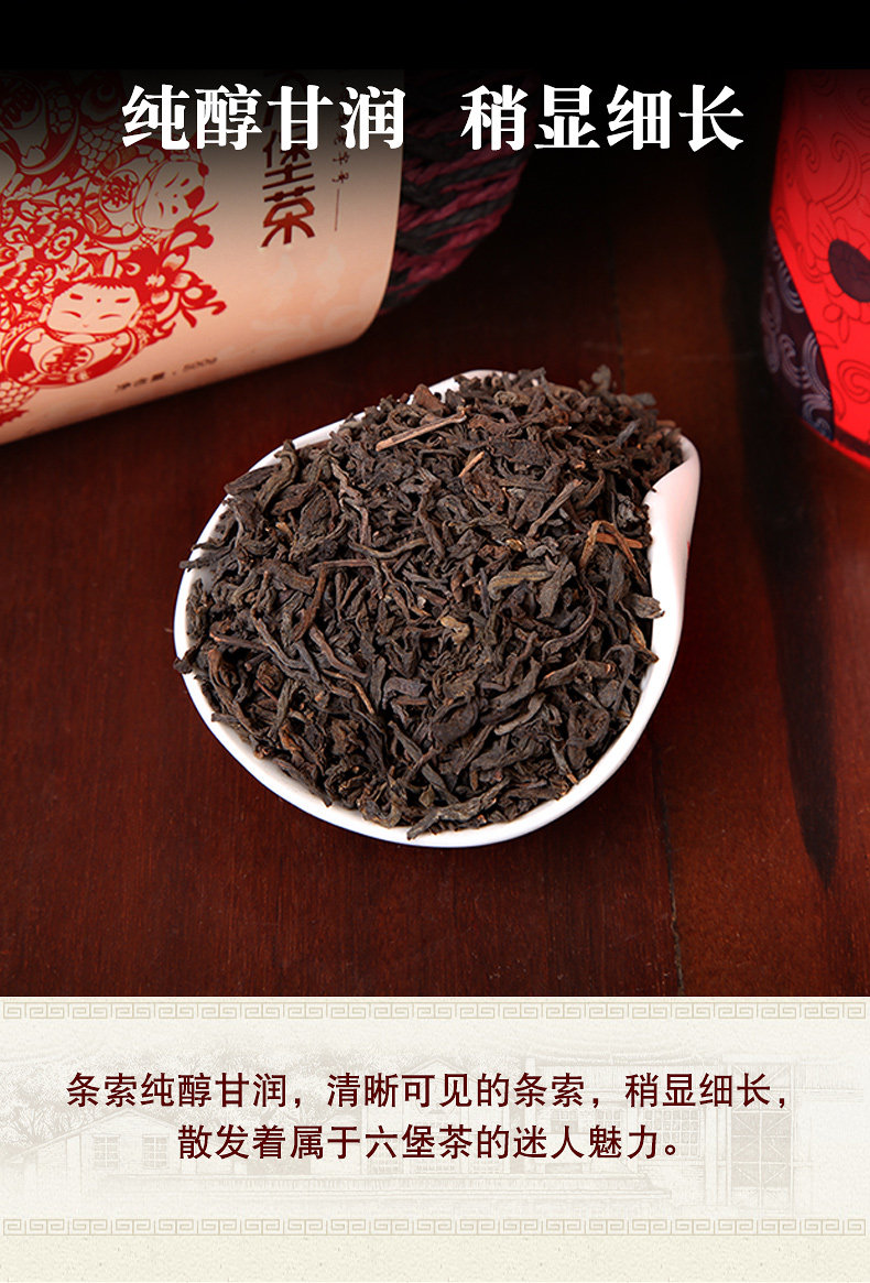 Description: Liubao tea production in the Guangxi Zhuang Autonomous Region in northwest Liubao Cangwu County mountains. Cangwu County, situated between the Tropic of Cancer (latitude 23 ° 27 '), strong solar radiation, high temperature, rainfall Fung, average temperature 21.2 ° C with an average annual precipitation of 1500.7 mm. It is produced into withering leaves, rolled, chopped, moisten pile and dried. Liubao has characteristics of the "steaming", put into big barrels and steamed soft. It has to be stored for two months before it is finished. Its red color of thick, the aroma contains unique betelnut flavor.