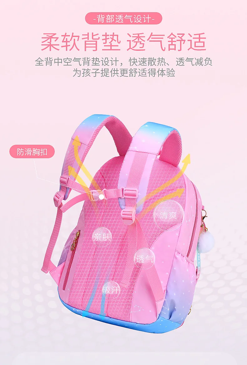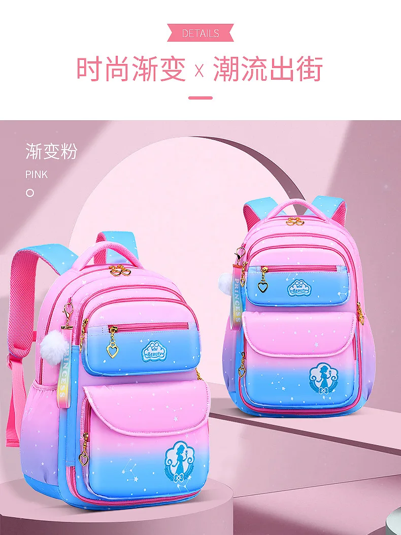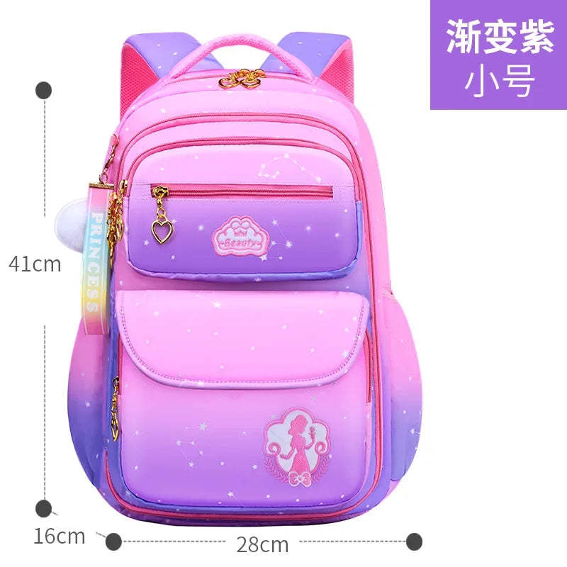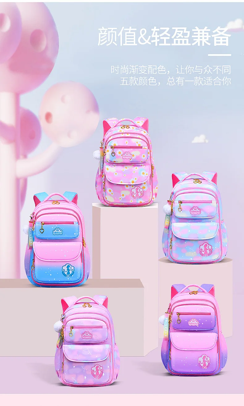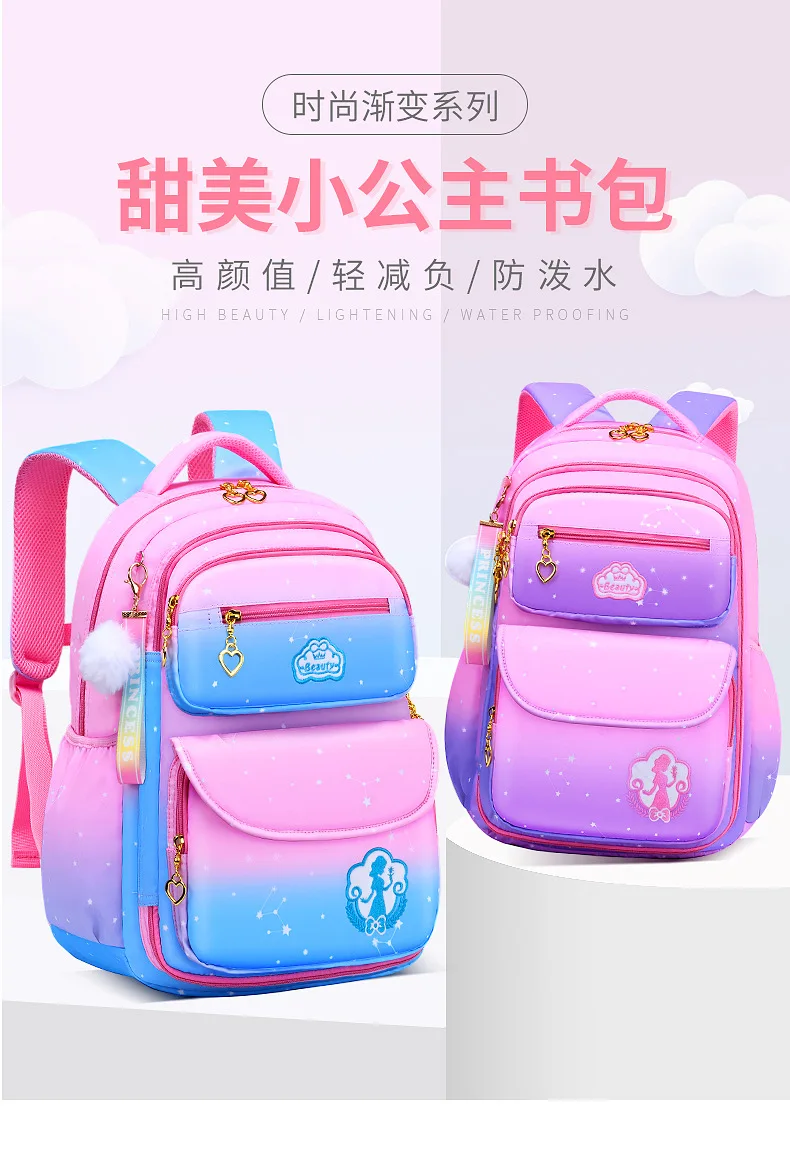 Primary School School Bag Gradient Rainbow Color Kids Backpack Lightweight Waterproof Backpack for Girls 6-12 Years Old