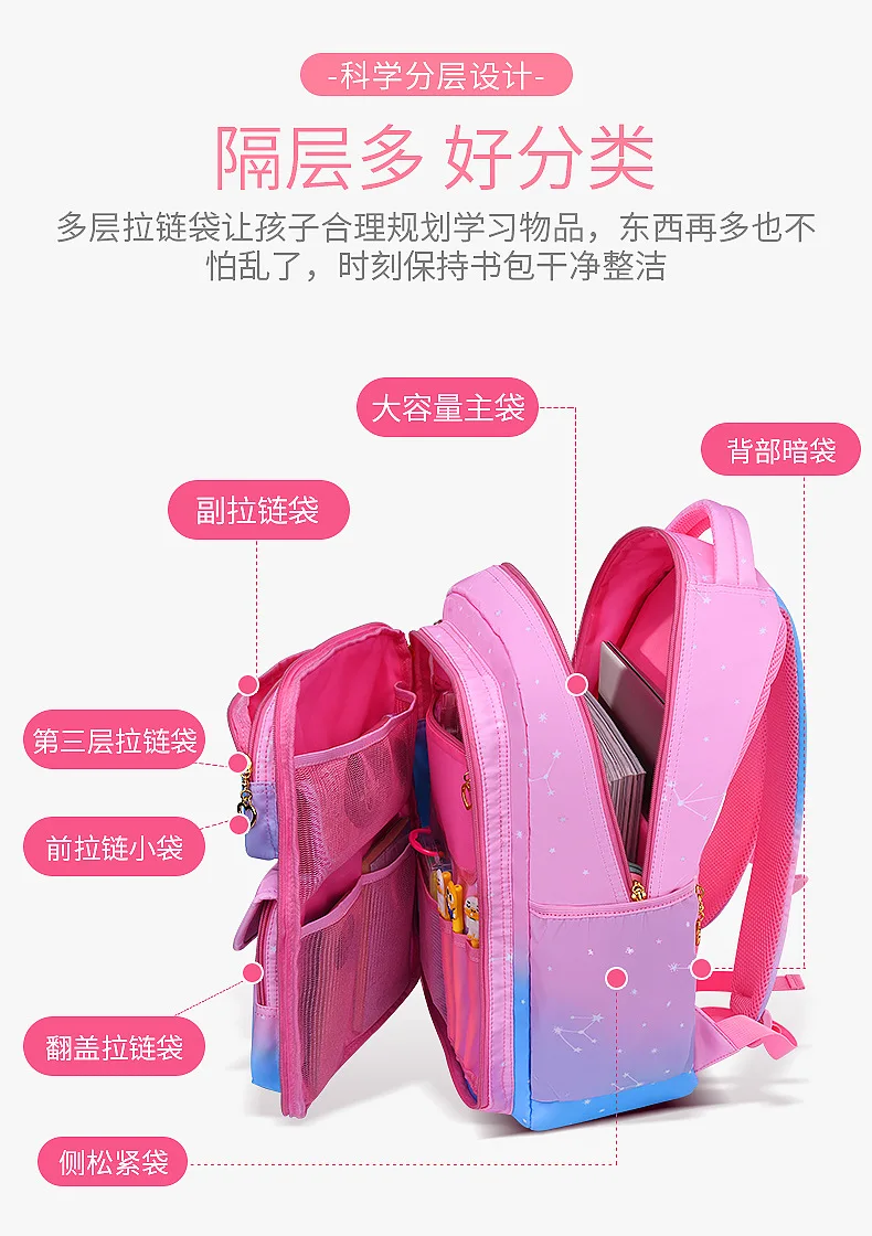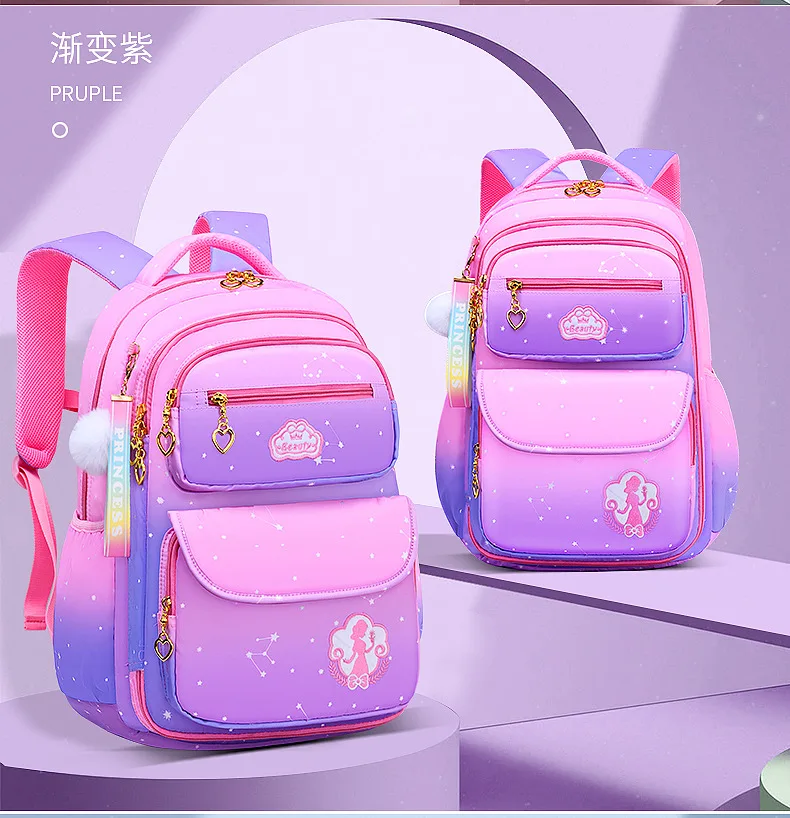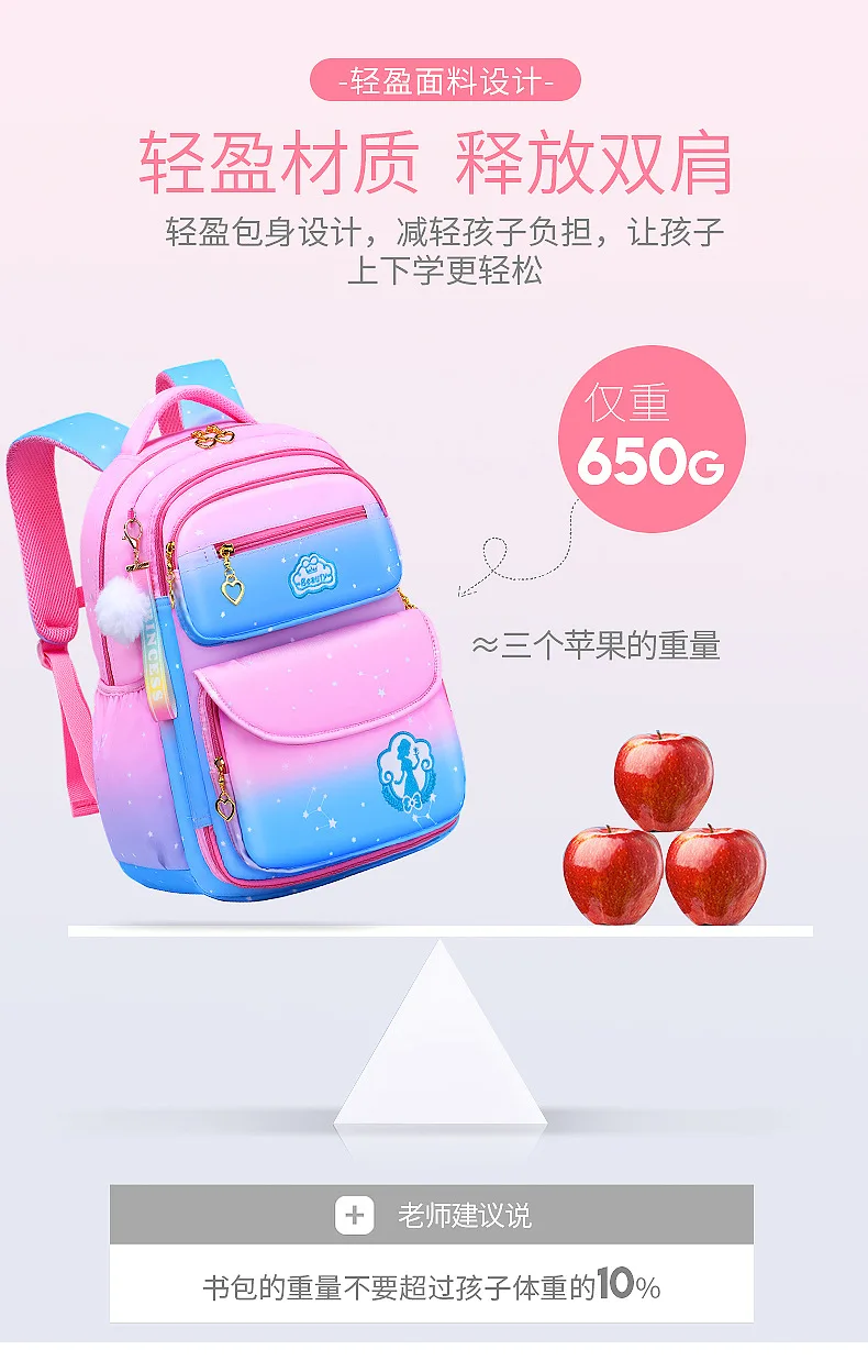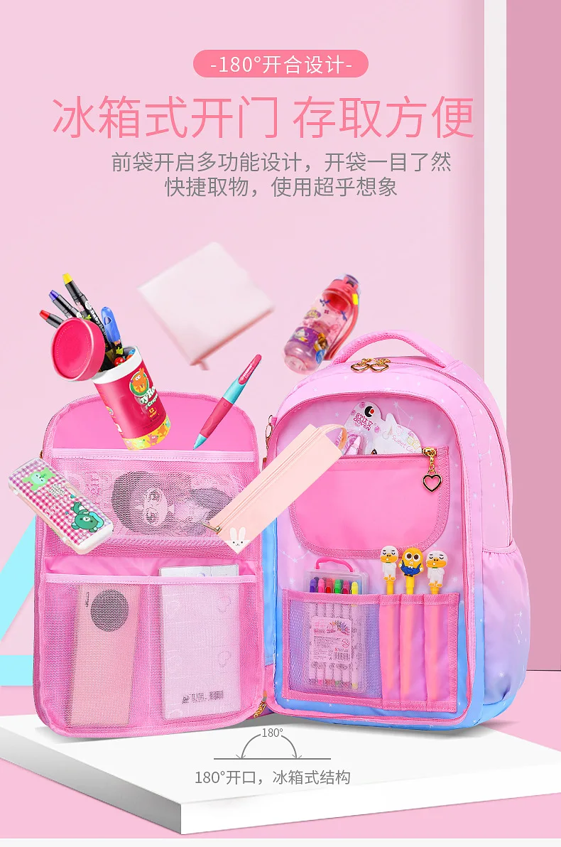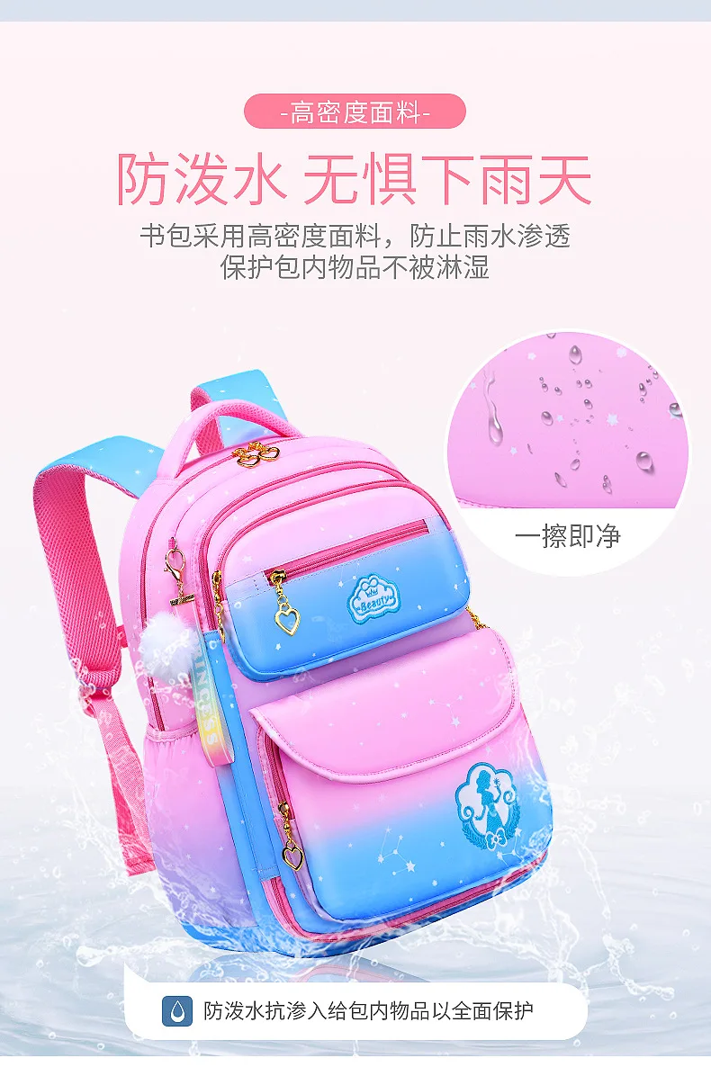 Primary School School Bag Gradient Rainbow Color Kids Backpack Lightweight Waterproof Backpack for Girls 6-12 Years Old