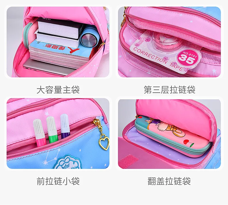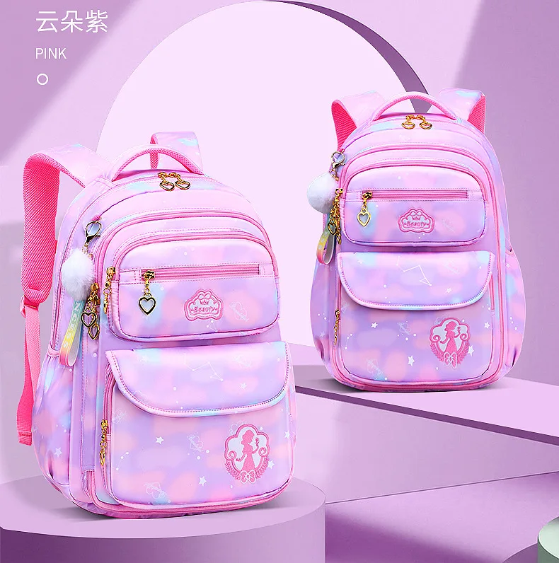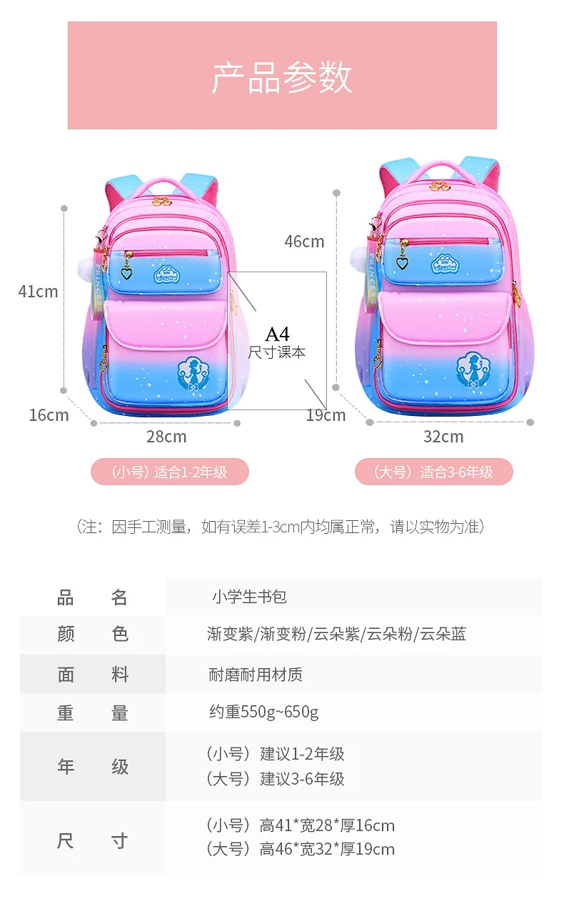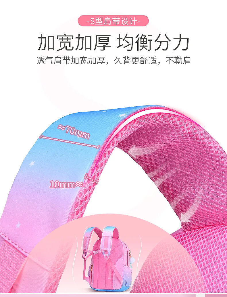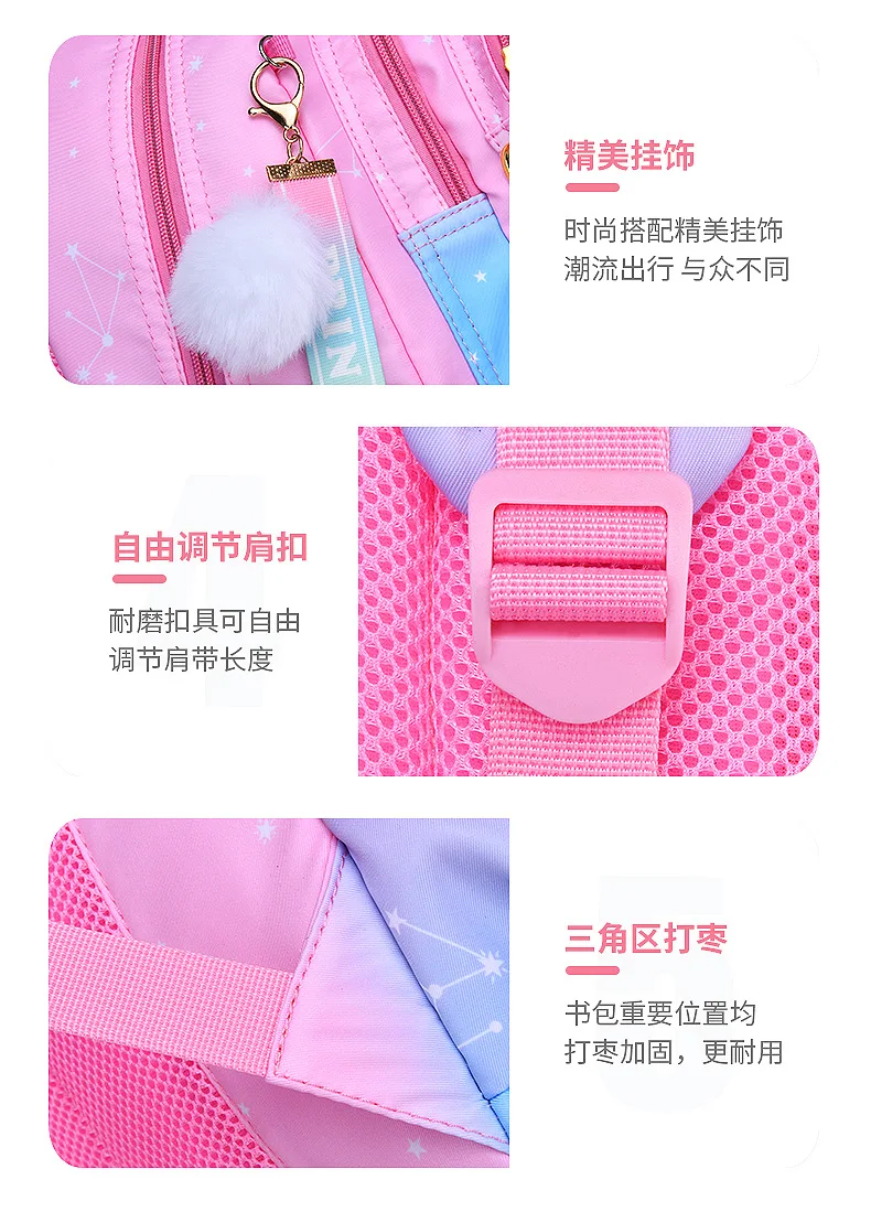 Primary School School Bag Gradient Rainbow Color Kids Backpack Lightweight Waterproof Backpack for Girls 6-12 Years Old