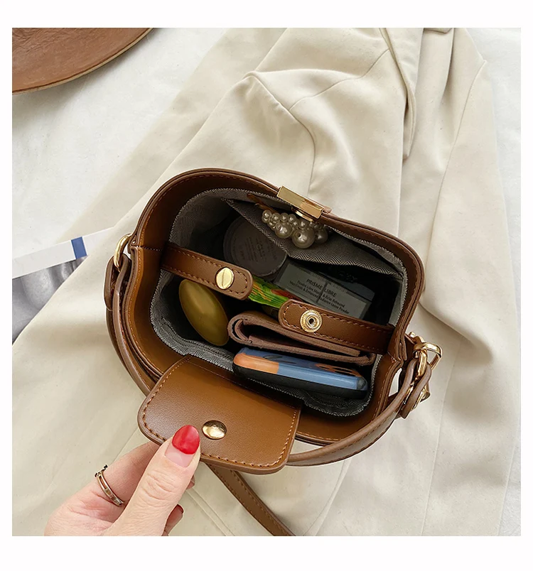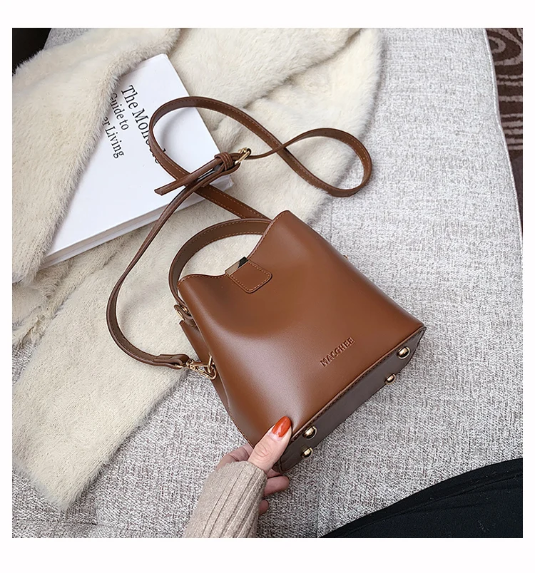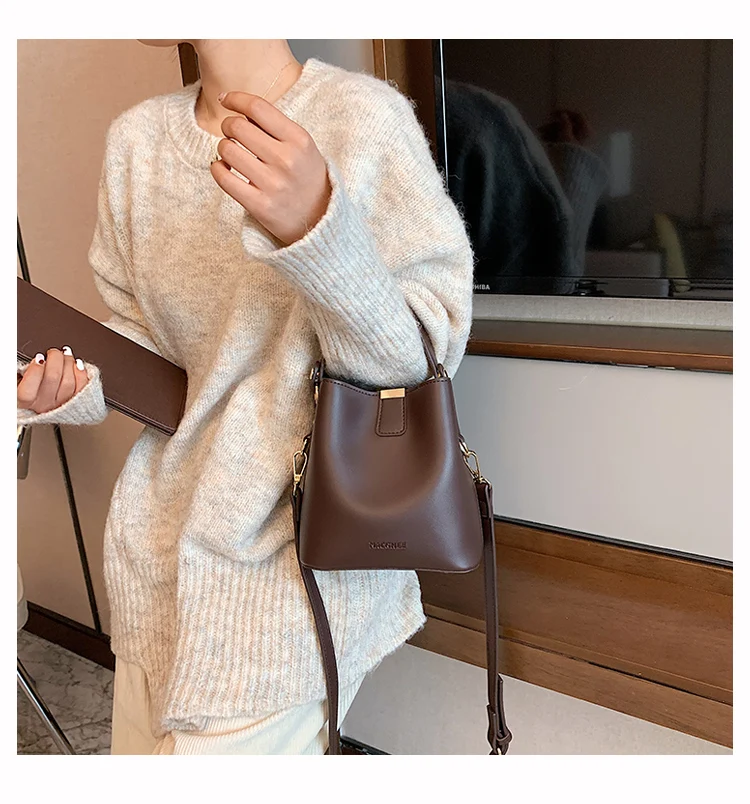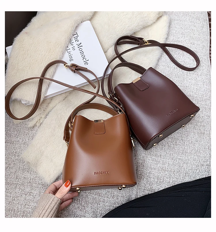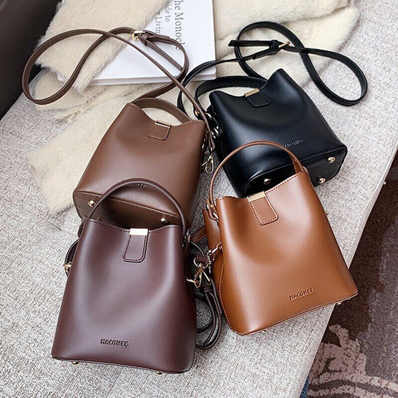 PU Leather Bucket Crossbody Bags Women Handbags Ladies Shoulder Purses