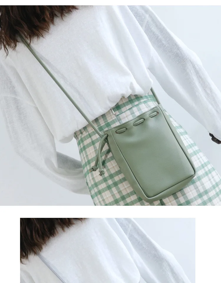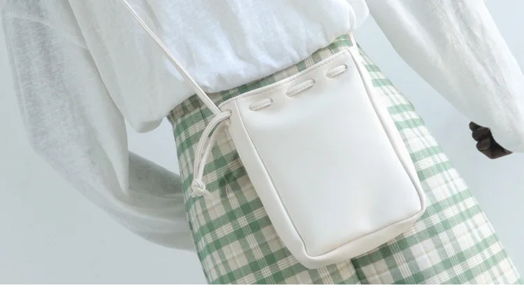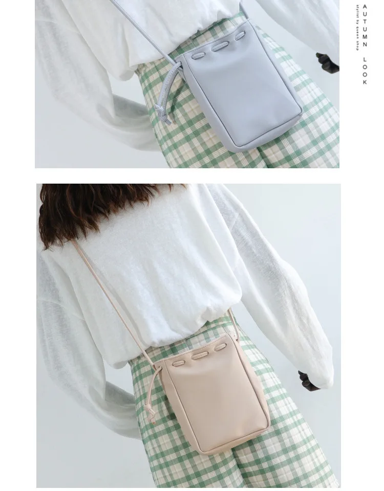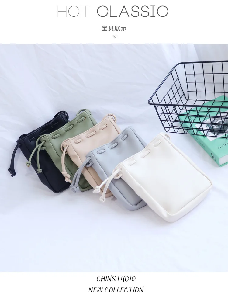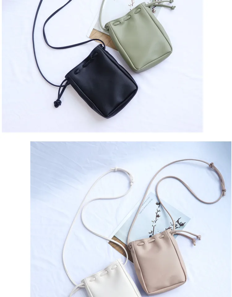 PU Leather Small Crossbody Bag Drawstring Cell Phone Purse Fashion Ladies Shoulder Messenger Bag for Women Daily Use Coin Purse